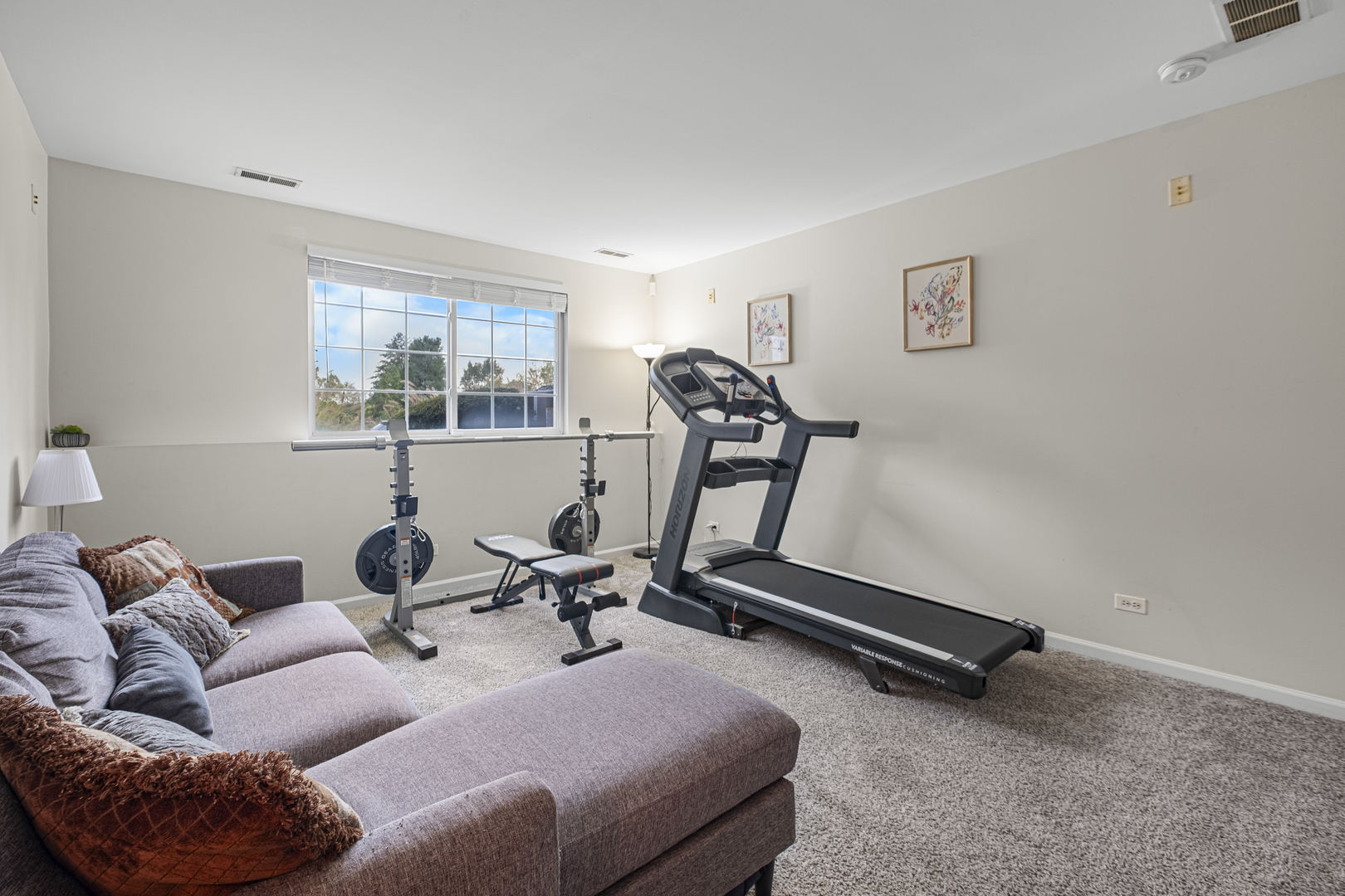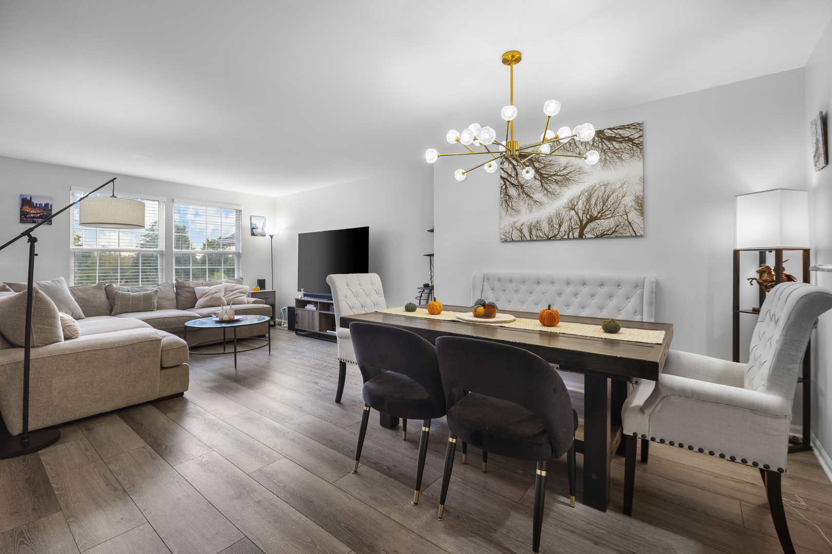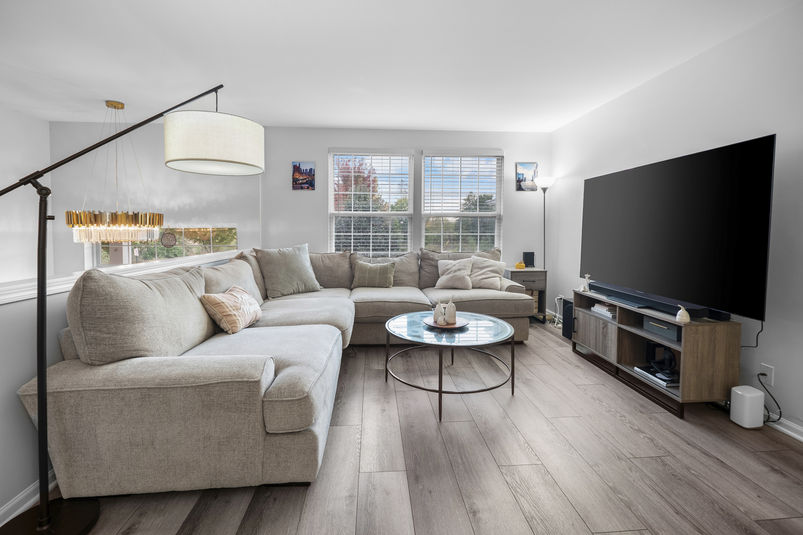 Discover the perfect balance of style, comfort, and convenience in this beautifully updated townhome, ideally situated in The Reserve at Elgin with peaceful views of the surrounding nature area and pond. Bathed in natural light, the open-concept living and dining area showcases coveted southern exposure, engineered hardwood flooring, and plenty of space for both relaxation and dining. The showstopping kitchen serves as the heart of the home, featuring 42″ white cabinetry with elegant gold hardware, luxurious granite countertops with a waterfall island, and generous space for cooking and entertaining. Enjoy the ease of main-level laundry and a private balcony overlooking the tranquil landscape. Upstairs, the expansive primary suite impresses with a vaulted ceiling, oversized walk-in closet, and a spa-inspired bath complete with a large modern vanity and walk-in shower. Two additional spacious bedrooms share a beautifully updated bath with a sleek stand-up shower. The versatile lower level is ideal for a family room, home office, or fitness space. Recent updates include a new AC unit in 2024, a 2023 water heater, 2022 washer, dryer, and dishwasher, plus an ADT security system for added peace of mind. 2 car attached garage. Perfectly located just minutes from shopping, dining, expressways, and scenic nature trails. HOA $240/month.