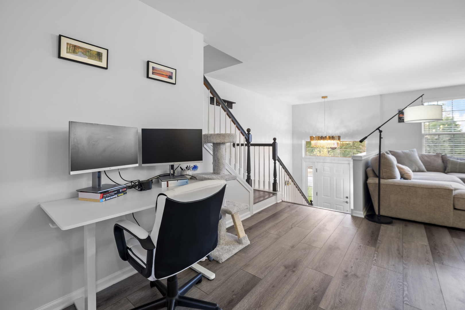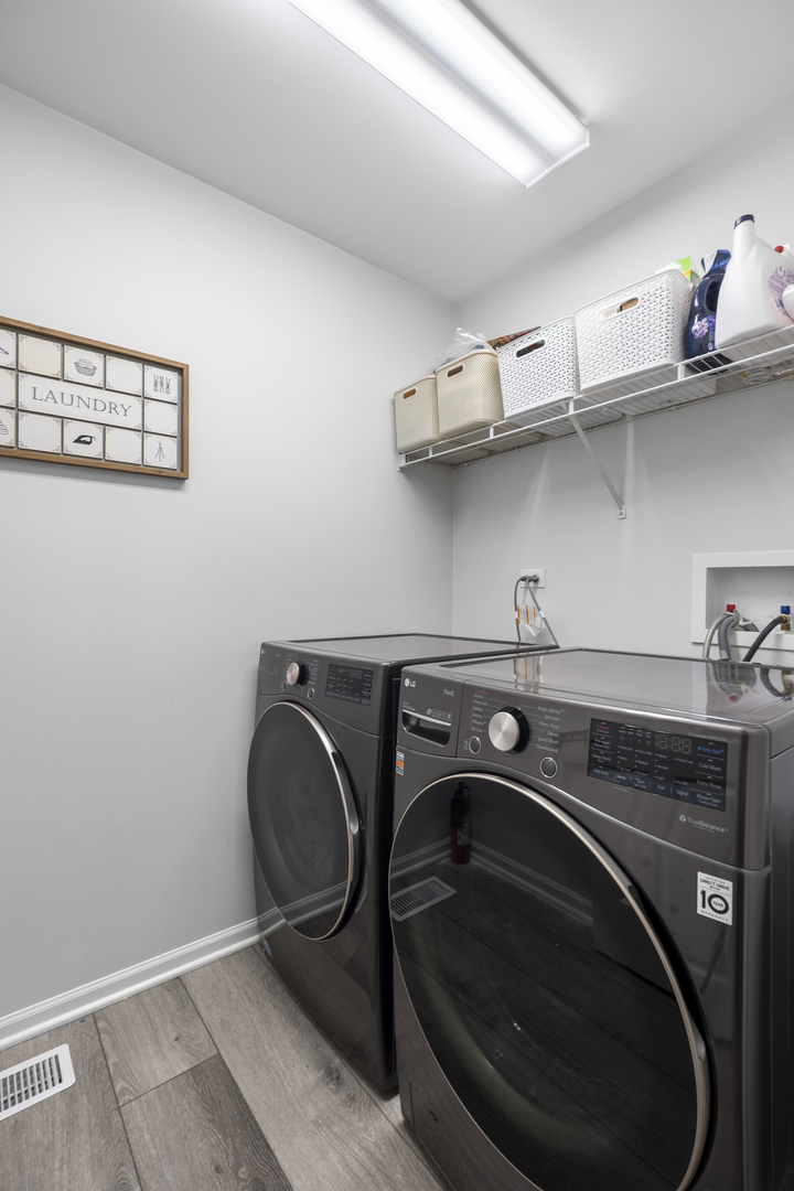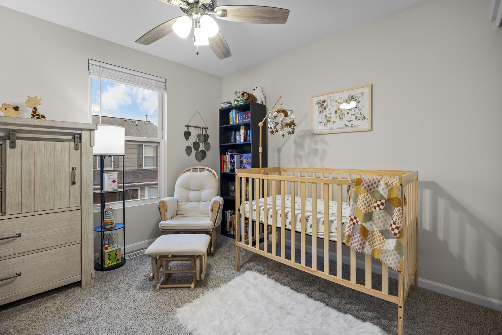 Discover the perfect balance of style, comfort, and convenience in this beautifully updated townhome, ideally situated in The Reserve at Elgin with peaceful views of the surrounding nature area and pond. Bathed in natural light, the open-concept living and dining area showcases coveted southern exposure, engineered hardwood flooring, and plenty of space for both relaxation and dining. The showstopping kitchen serves as the heart of the home, featuring 42″ white cabinetry with elegant gold hardware, luxurious granite countertops with a waterfall island, and generous space for cooking and entertaining. Enjoy the ease of main-level laundry and a private balcony overlooking the tranquil landscape. Upstairs, the expansive primary suite impresses with a vaulted ceiling, oversized walk-in closet, and a spa-inspired bath complete with a large modern vanity and walk-in shower. Two additional spacious bedrooms share a beautifully updated bath with a sleek stand-up shower. The versatile lower level is ideal for a family room, home office, or fitness space. Recent updates include a new AC unit in 2024, a 2023 water heater, 2022 washer, dryer, and dishwasher, plus an ADT security system for added peace of mind. 2 car attached garage. Perfectly located just minutes from shopping, dining, expressways, and scenic nature trails. HOA $240/month.