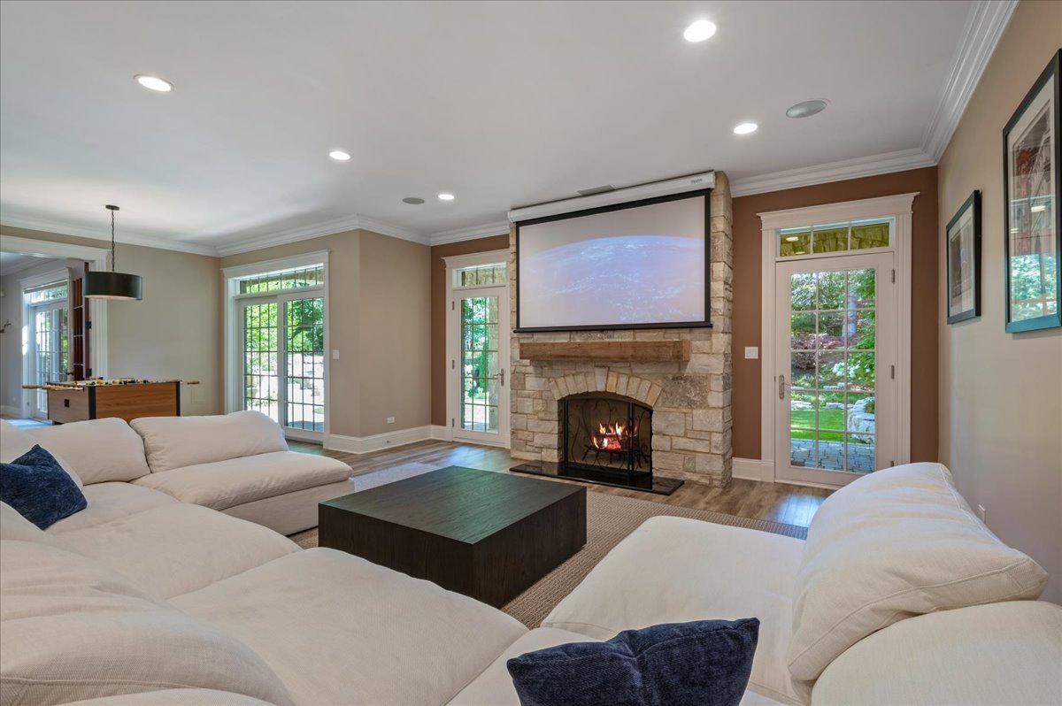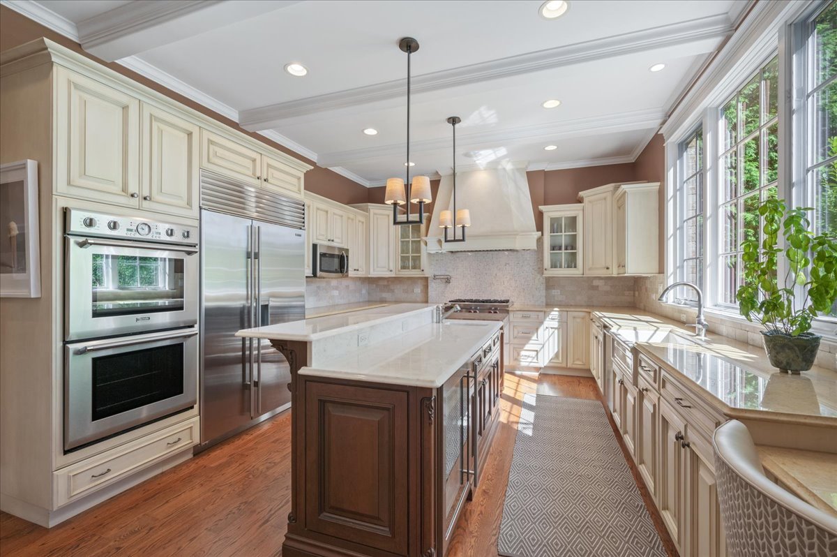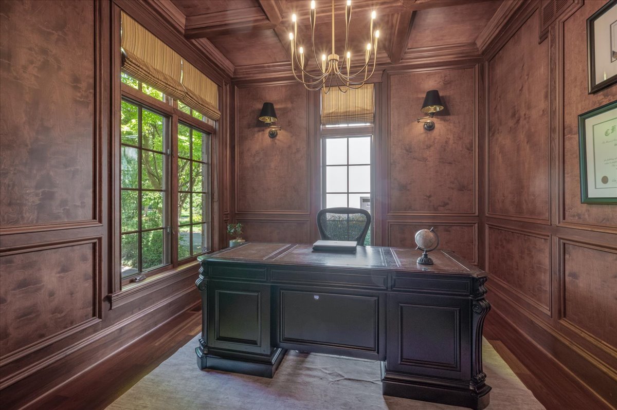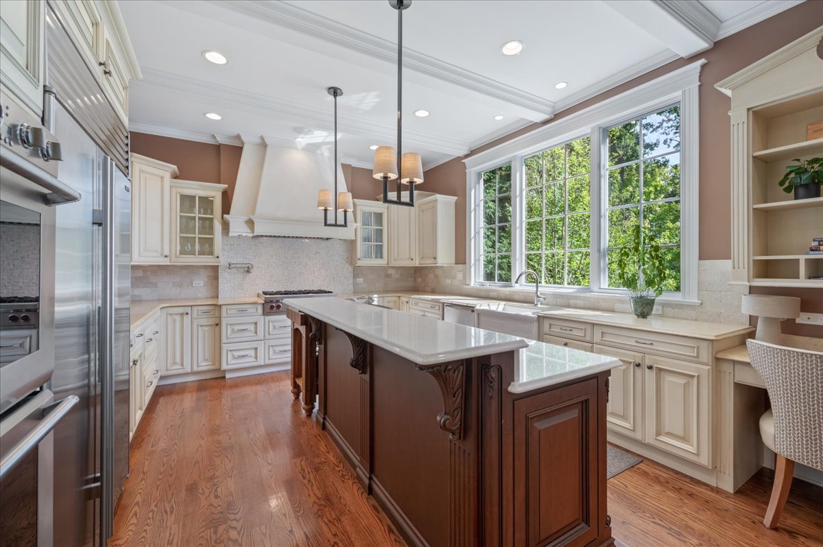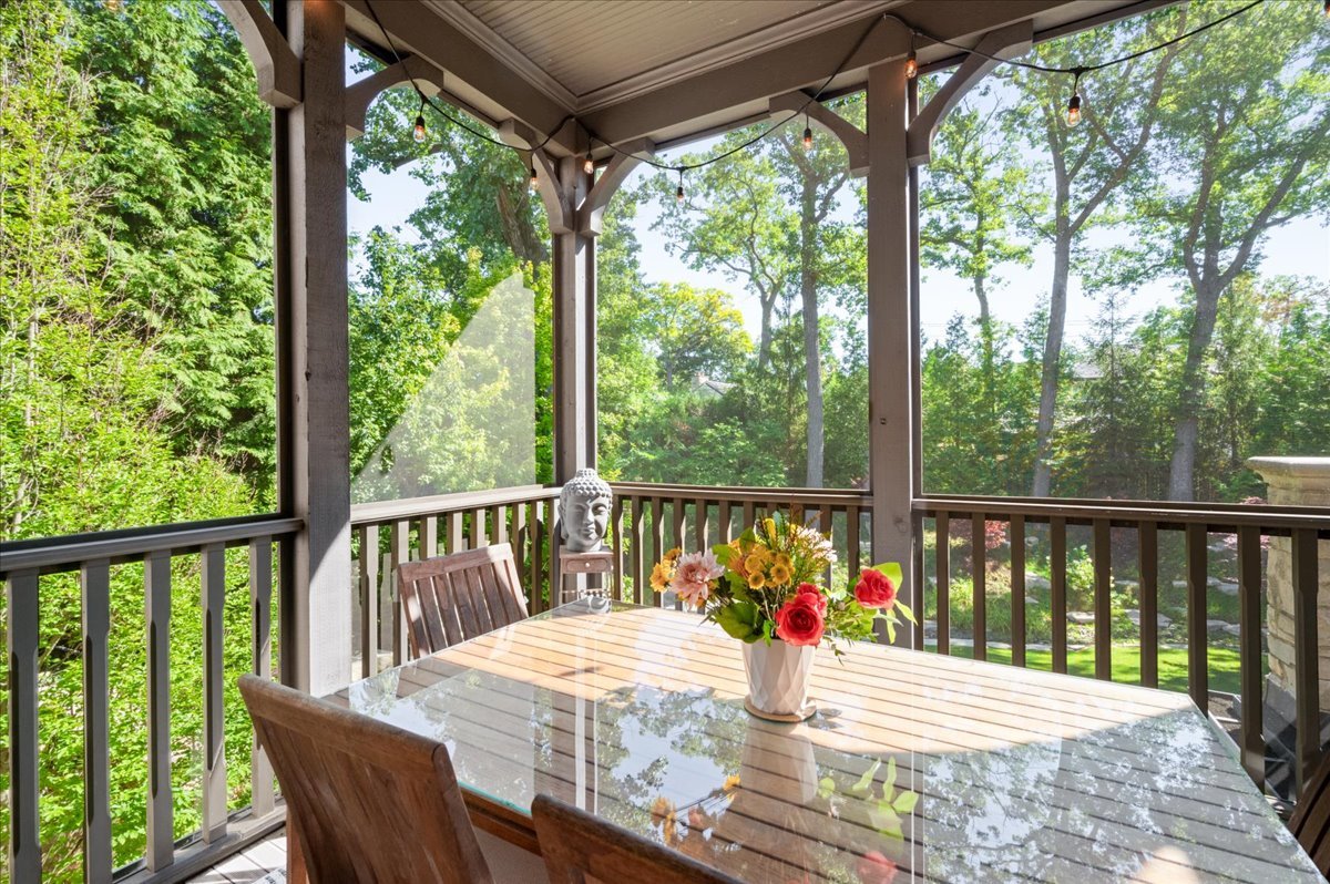 Extraordinarily special, newer construction home that was built to last the test of time! Situated on a gorgeous .36 acre private lot in East Glencoe’s Ravine Bluff’s neighborhood, this full brick & stone masterpiece is surrounded in lush mature nature and is located just blocks to Lake Michigan. Follow the paver & bluestone walkway, then step inside to a beautiful open concept living space with perfect flow! The hardwood floors, coffered ceilings and custom millwork throughout will not disappoint! Large chef’s kitchen with custom cabinetry & marble countertops is open to a warm family room with fireplace that “sees- through” to the great outdoors! Just off the breakfast room is an inviting screened in porch overlooking the gorgeous landscape. The main level also includes a sitting area or living room, separate dining room, sleek wood paneled study, and powder room. Upstairs, you’ll find 4 generously sized bedrooms and a full laundry room with sink. On this level, the laundry and all 3 bathroom floors are heated for your comfort. Enjoy the views and a morning coffee or evening tea on the deck located off the primary bedroom suite! This owner’s retreat boasts his & her closets, wet bar with beverage fridge, double sinks, steam shower, whirlpool tub, and beautiful hand carved marble surround gas fireplace. The basement won’t feel like a basement at all with 10 foot ceilings and four doors leading you outside to a patio, outdoor fireplace and serene professionally landscaped yard with front & rear sprinkler system and lighting that gives resort vibes. The lower level with radiant floor heating has something for everyone, including wet bar with mini fridge, full bath with sauna, entertainment media space, an additional room for play area, gym, or guests. A second laundry hook up, utility room, & storage space is also found on this lower level. All three floors are equipped with 5.1 surround speakers, as this home is perfect for entertaining or just enjoying a family movie night. A two car attached garage with close to 13ft ceiling height has an electric car charger, and heated floors. Exceptional quality and craftsmanship are apparent at every turn of this immaculately maintained home. All this just a short distance to town, metra, beach and trail in prestigious East Glencoe.