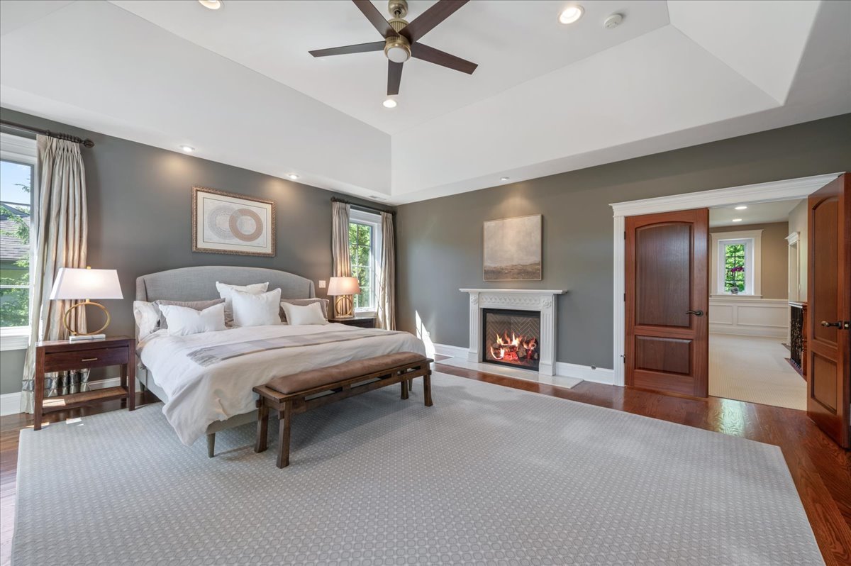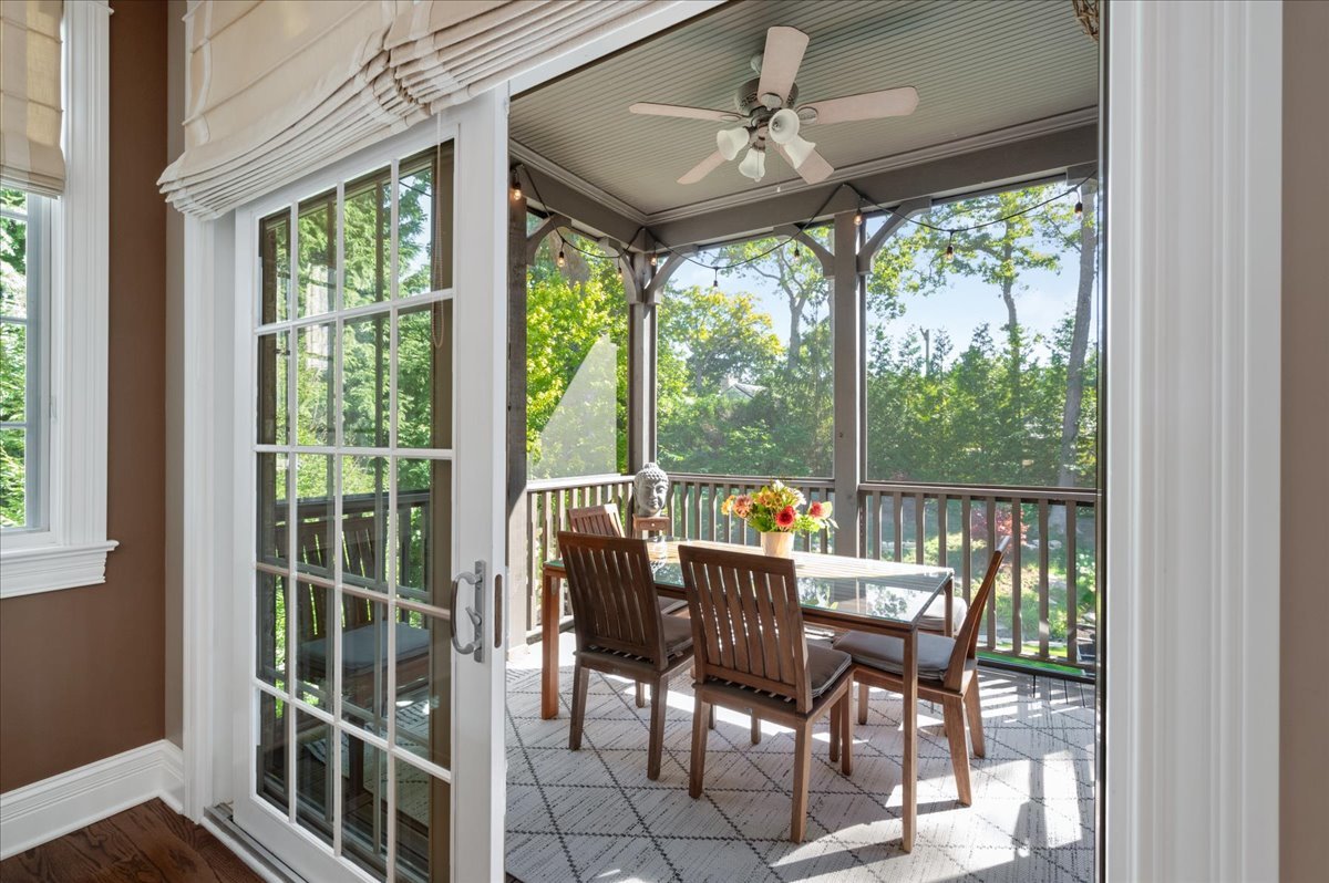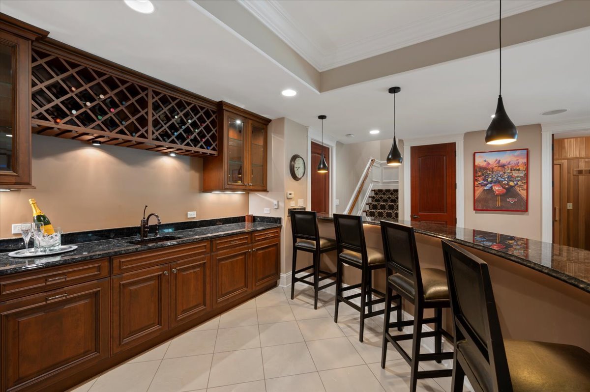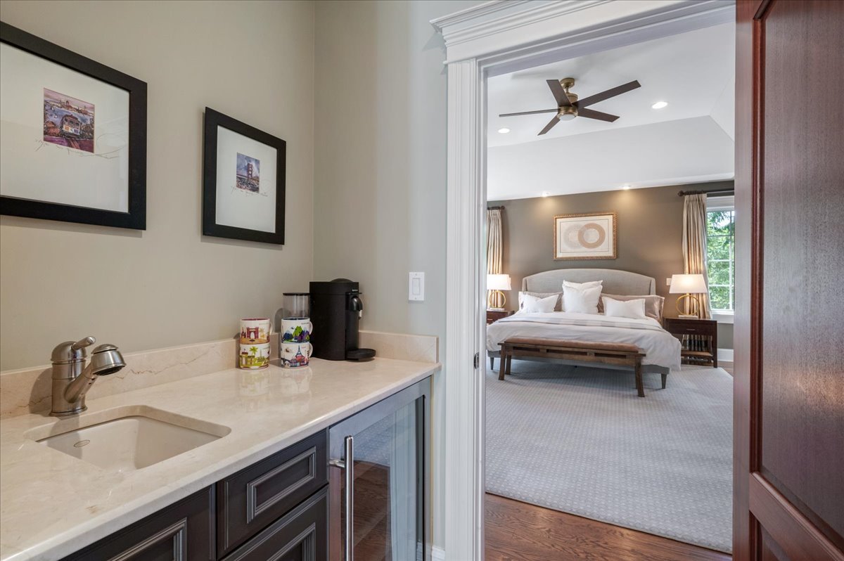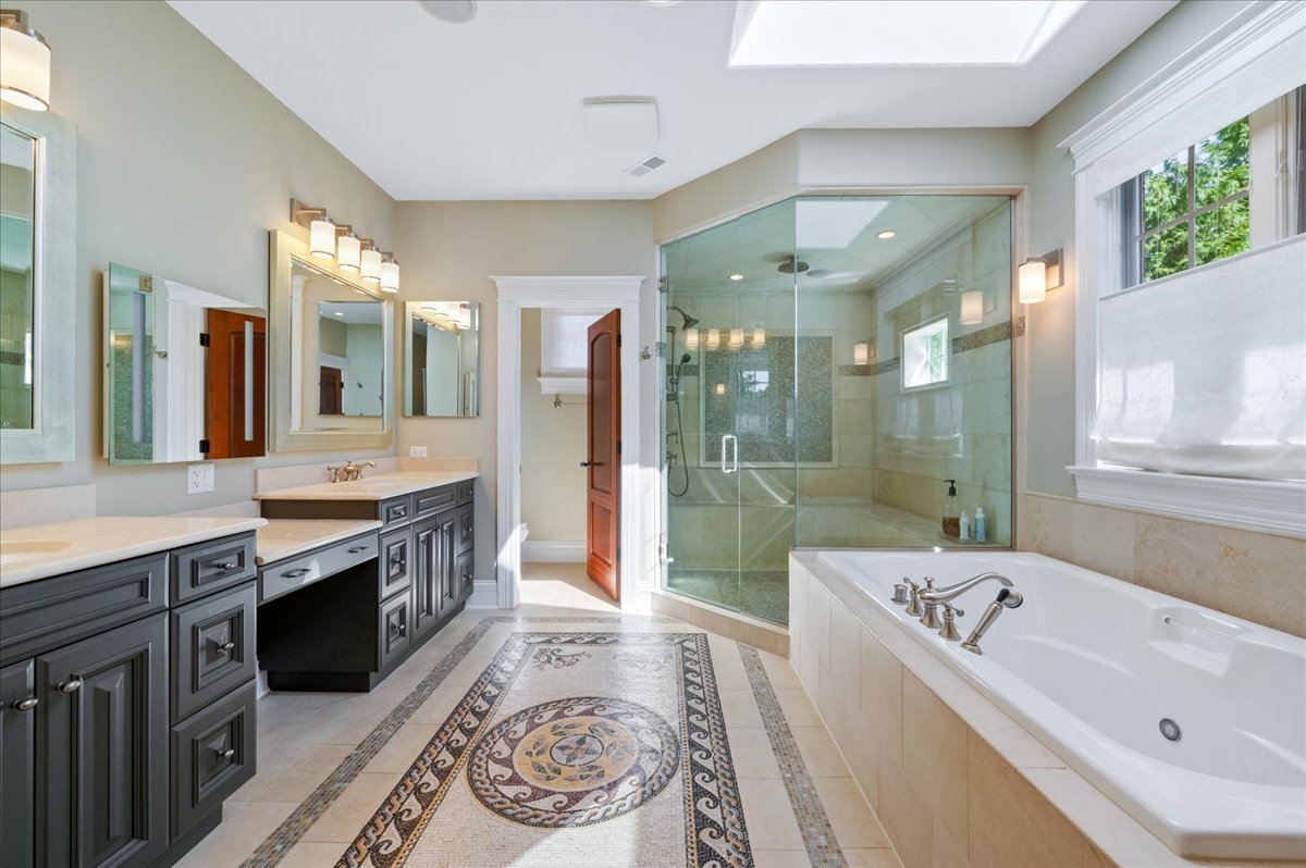 Extraordinarily special, newer construction home that was built to last the test of time! Situated on a gorgeous .36 acre private lot in East Glencoe’s Ravine Bluff’s neighborhood, this full brick & stone masterpiece is surrounded in lush mature nature and is located just blocks to Lake Michigan. Follow the paver & bluestone walkway, then step inside to a beautiful open concept living space with perfect flow! The hardwood floors, coffered ceilings and custom millwork throughout will not disappoint! Large chef’s kitchen with custom cabinetry & marble countertops is open to a warm family room with fireplace that “sees- through” to the great outdoors! Just off the breakfast room is an inviting screened in porch overlooking the gorgeous landscape. The main level also includes a sitting area or living room, separate dining room, sleek wood paneled study, and powder room. Upstairs, you’ll find 4 generously sized bedrooms and a full laundry room with sink. On this level, the laundry and all 3 bathroom floors are heated for your comfort. Enjoy the views and a morning coffee or evening tea on the deck located off the primary bedroom suite! This owner’s retreat boasts his & her closets, wet bar with beverage fridge, double sinks, steam shower, whirlpool tub, and beautiful hand carved marble surround gas fireplace. The basement won’t feel like a basement at all with 10 foot ceilings and four doors leading you outside to a patio, outdoor fireplace and serene professionally landscaped yard with front & rear sprinkler system and lighting that gives resort vibes. The lower level with radiant floor heating has something for everyone, including wet bar with mini fridge, full bath with sauna, entertainment media space, an additional room for play area, gym, or guests. A second laundry hook up, utility room, & storage space is also found on this lower level. All three floors are equipped with 5.1 surround speakers, as this home is perfect for entertaining or just enjoying a family movie night. A two car attached garage with close to 13ft ceiling height has an electric car charger, and heated floors. Exceptional quality and craftsmanship are apparent at every turn of this immaculately maintained home. All this just a short distance to town, metra, beach and trail in prestigious East Glencoe.