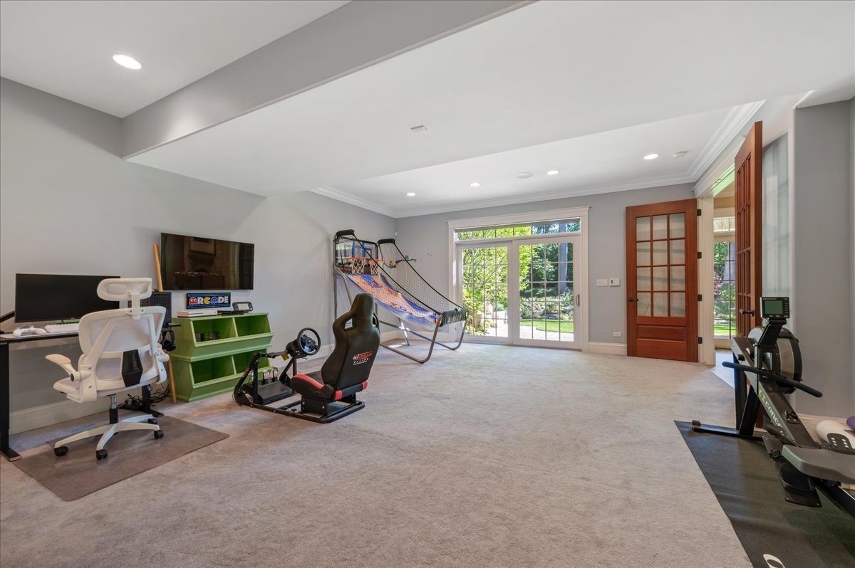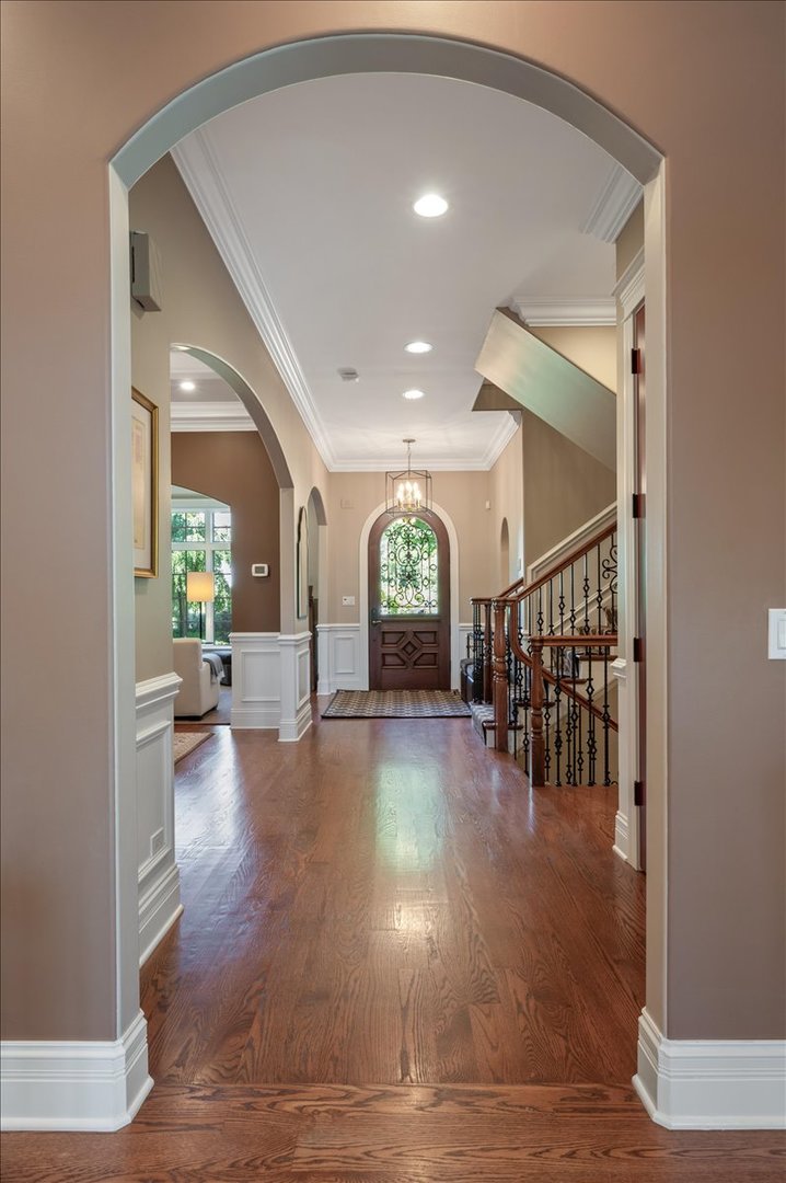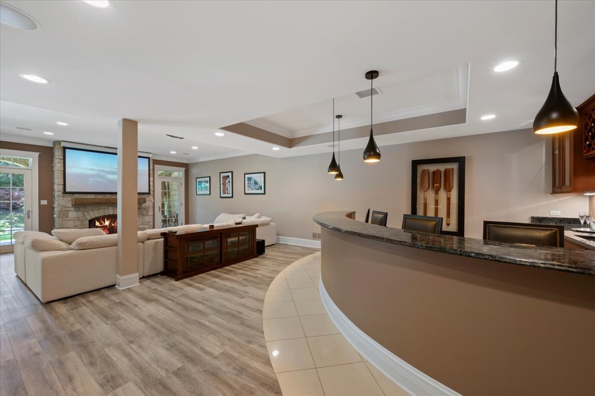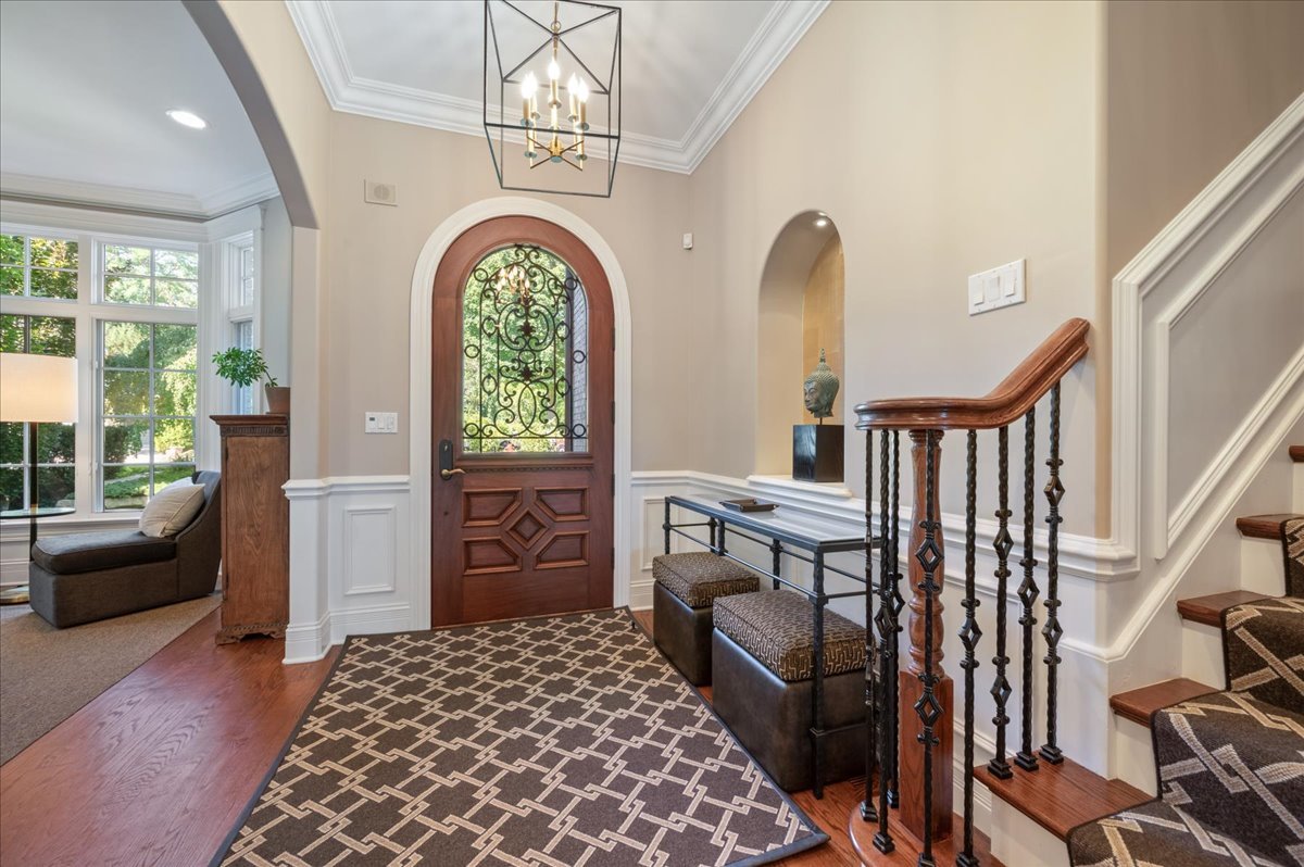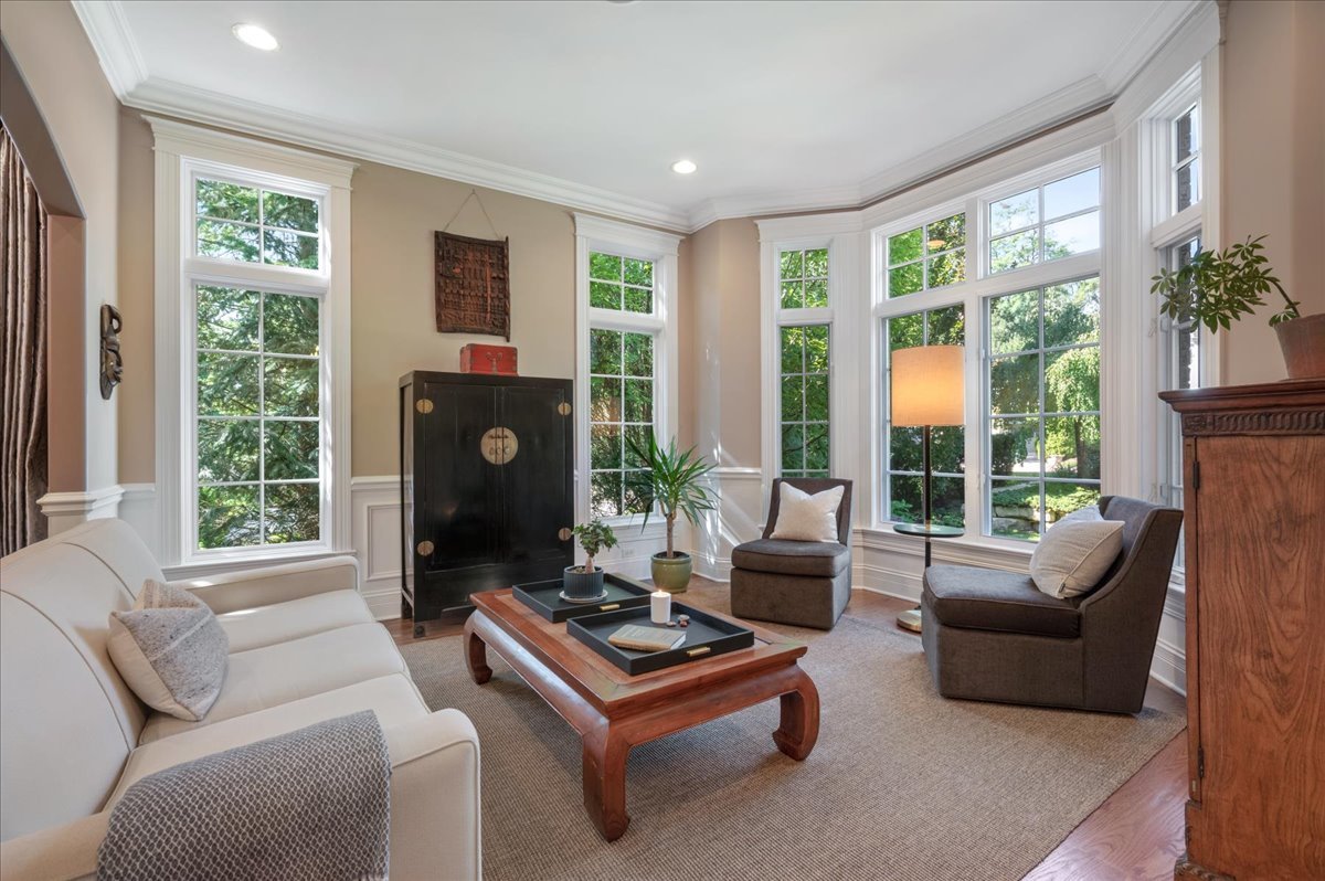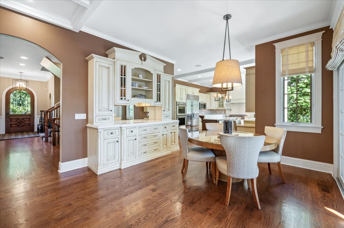 Extraordinarily special, newer construction home that was built to last the test of time! Situated on a gorgeous .36 acre private lot in East Glencoe’s Ravine Bluff’s neighborhood, this full brick & stone masterpiece is surrounded in lush mature nature and is located just blocks to Lake Michigan. Follow the paver & bluestone walkway, then step inside to a beautiful open concept living space with perfect flow! The hardwood floors, coffered ceilings and custom millwork throughout will not disappoint! Large chef’s kitchen with custom cabinetry & marble countertops is open to a warm family room with fireplace that “sees- through” to the great outdoors! Just off the breakfast room is an inviting screened in porch overlooking the gorgeous landscape. The main level also includes a sitting area or living room, separate dining room, sleek wood paneled study, and powder room. Upstairs, you’ll find 4 generously sized bedrooms and a full laundry room with sink. On this level, the laundry and all 3 bathroom floors are heated for your comfort. Enjoy the views and a morning coffee or evening tea on the deck located off the primary bedroom suite! This owner’s retreat boasts his & her closets, wet bar with beverage fridge, double sinks, steam shower, whirlpool tub, and beautiful hand carved marble surround gas fireplace. The basement won’t feel like a basement at all with 10 foot ceilings and four doors leading you outside to a patio, outdoor fireplace and serene professionally landscaped yard with front & rear sprinkler system and lighting that gives resort vibes. The lower level with radiant floor heating has something for everyone, including wet bar with mini fridge, full bath with sauna, entertainment media space, an additional room for play area, gym, or guests. A second laundry hook up, utility room, & storage space is also found on this lower level. All three floors are equipped with 5.1 surround speakers, as this home is perfect for entertaining or just enjoying a family movie night. A two car attached garage with close to 13ft ceiling height has an electric car charger, and heated floors. Exceptional quality and craftsmanship are apparent at every turn of this immaculately maintained home. All this just a short distance to town, metra, beach and trail in prestigious East Glencoe.