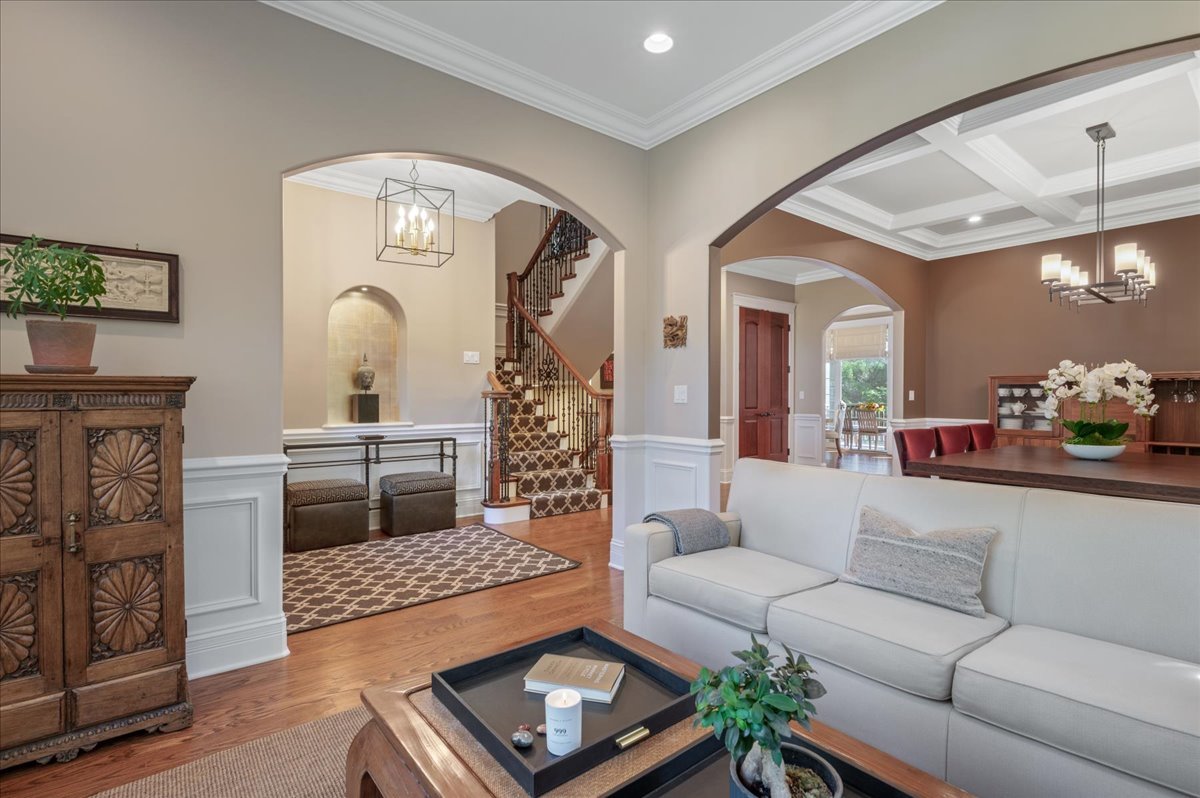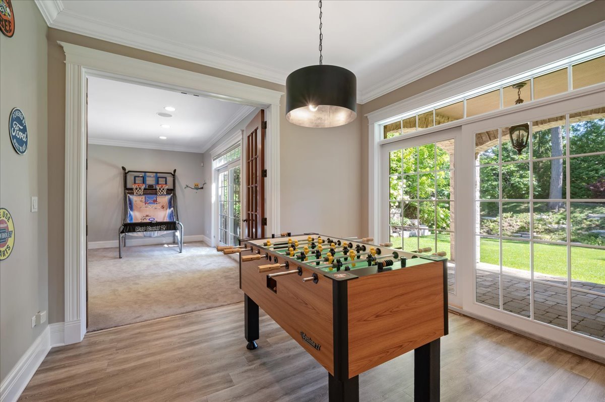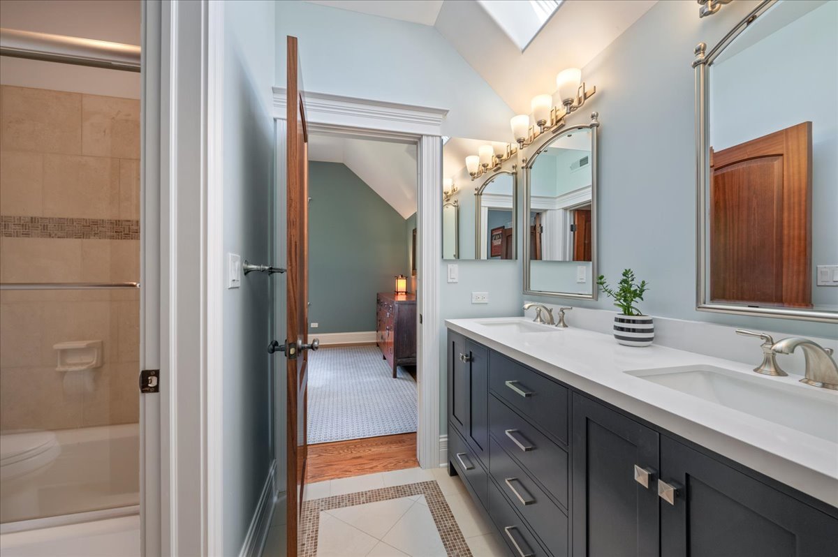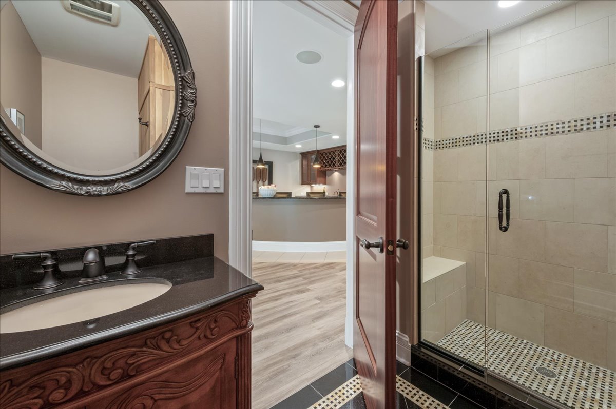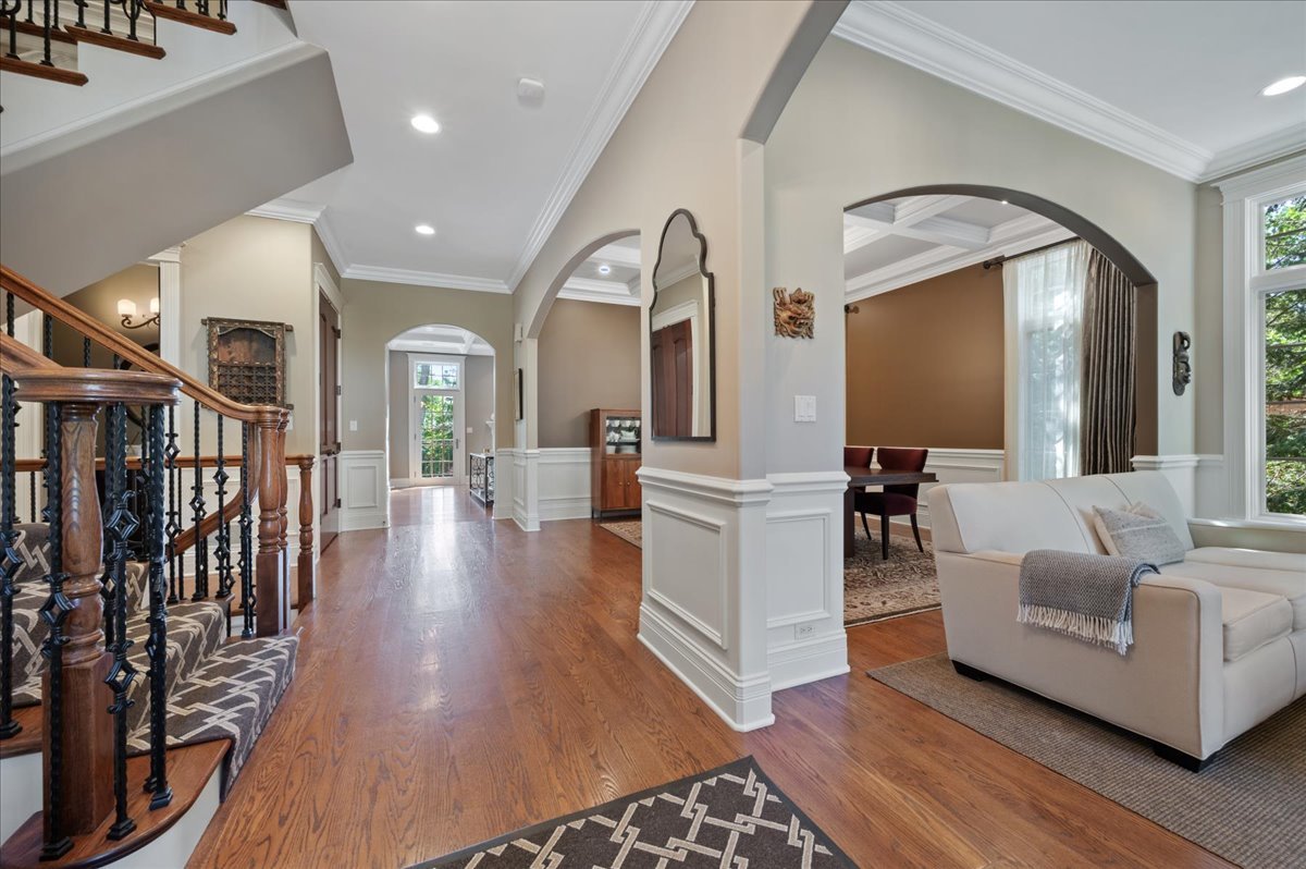 Extraordinarily special, newer construction home that was built to last the test of time! Situated on a gorgeous .36 acre private lot in East Glencoe’s Ravine Bluff’s neighborhood, this full brick & stone masterpiece is surrounded in lush mature nature and is located just blocks to Lake Michigan. Follow the paver & bluestone walkway, then step inside to a beautiful open concept living space with perfect flow! The hardwood floors, coffered ceilings and custom millwork throughout will not disappoint! Large chef’s kitchen with custom cabinetry & marble countertops is open to a warm family room with fireplace that “sees- through” to the great outdoors! Just off the breakfast room is an inviting screened in porch overlooking the gorgeous landscape. The main level also includes a sitting area or living room, separate dining room, sleek wood paneled study, and powder room. Upstairs, you’ll find 4 generously sized bedrooms and a full laundry room with sink. On this level, the laundry and all 3 bathroom floors are heated for your comfort. Enjoy the views and a morning coffee or evening tea on the deck located off the primary bedroom suite! This owner’s retreat boasts his & her closets, wet bar with beverage fridge, double sinks, steam shower, whirlpool tub, and beautiful hand carved marble surround gas fireplace. The basement won’t feel like a basement at all with 10 foot ceilings and four doors leading you outside to a patio, outdoor fireplace and serene professionally landscaped yard with front & rear sprinkler system and lighting that gives resort vibes. The lower level with radiant floor heating has something for everyone, including wet bar with mini fridge, full bath with sauna, entertainment media space, an additional room for play area, gym, or guests. A second laundry hook up, utility room, & storage space is also found on this lower level. All three floors are equipped with 5.1 surround speakers, as this home is perfect for entertaining or just enjoying a family movie night. A two car attached garage with close to 13ft ceiling height has an electric car charger, and heated floors. Exceptional quality and craftsmanship are apparent at every turn of this immaculately maintained home. All this just a short distance to town, metra, beach and trail in prestigious East Glencoe.