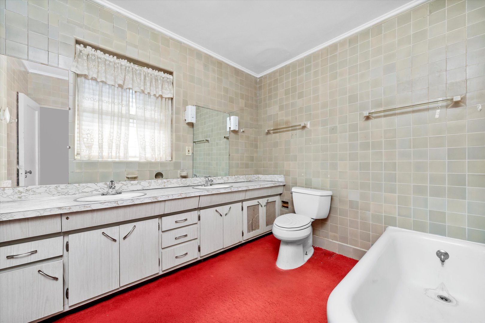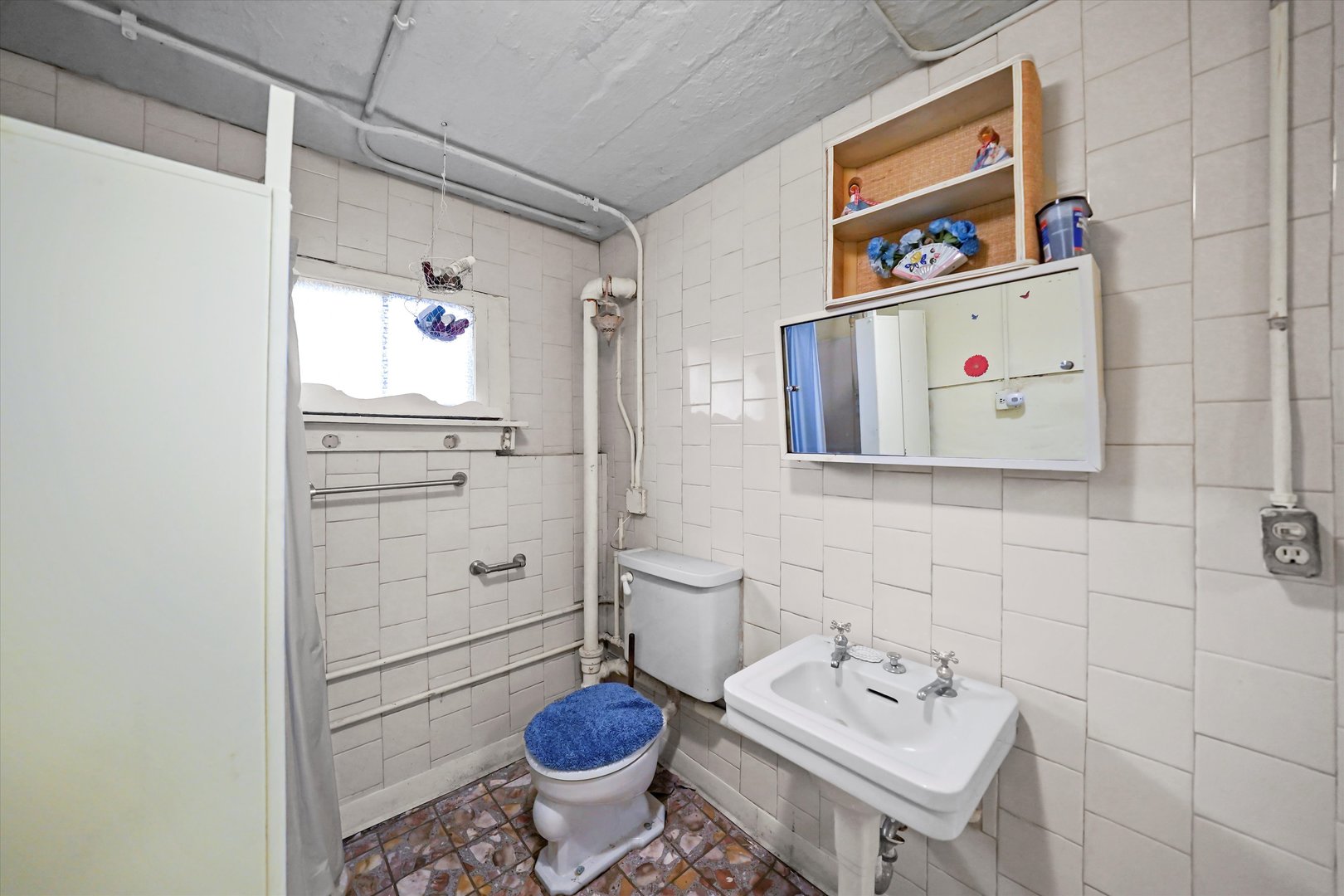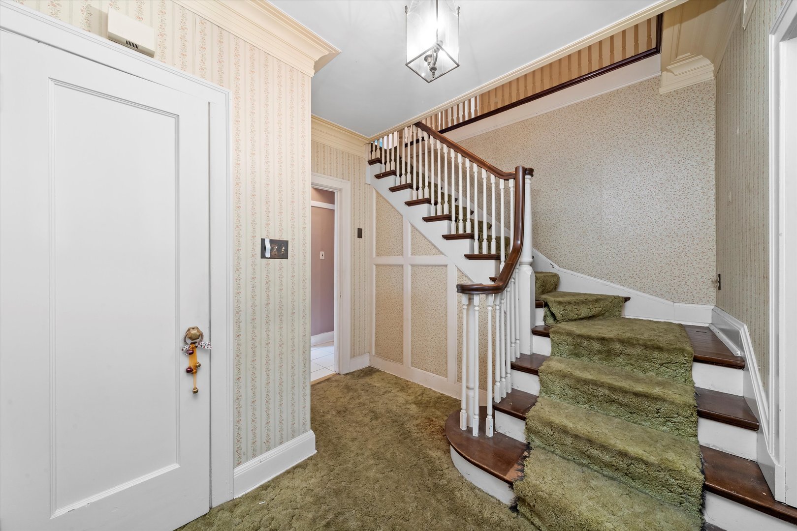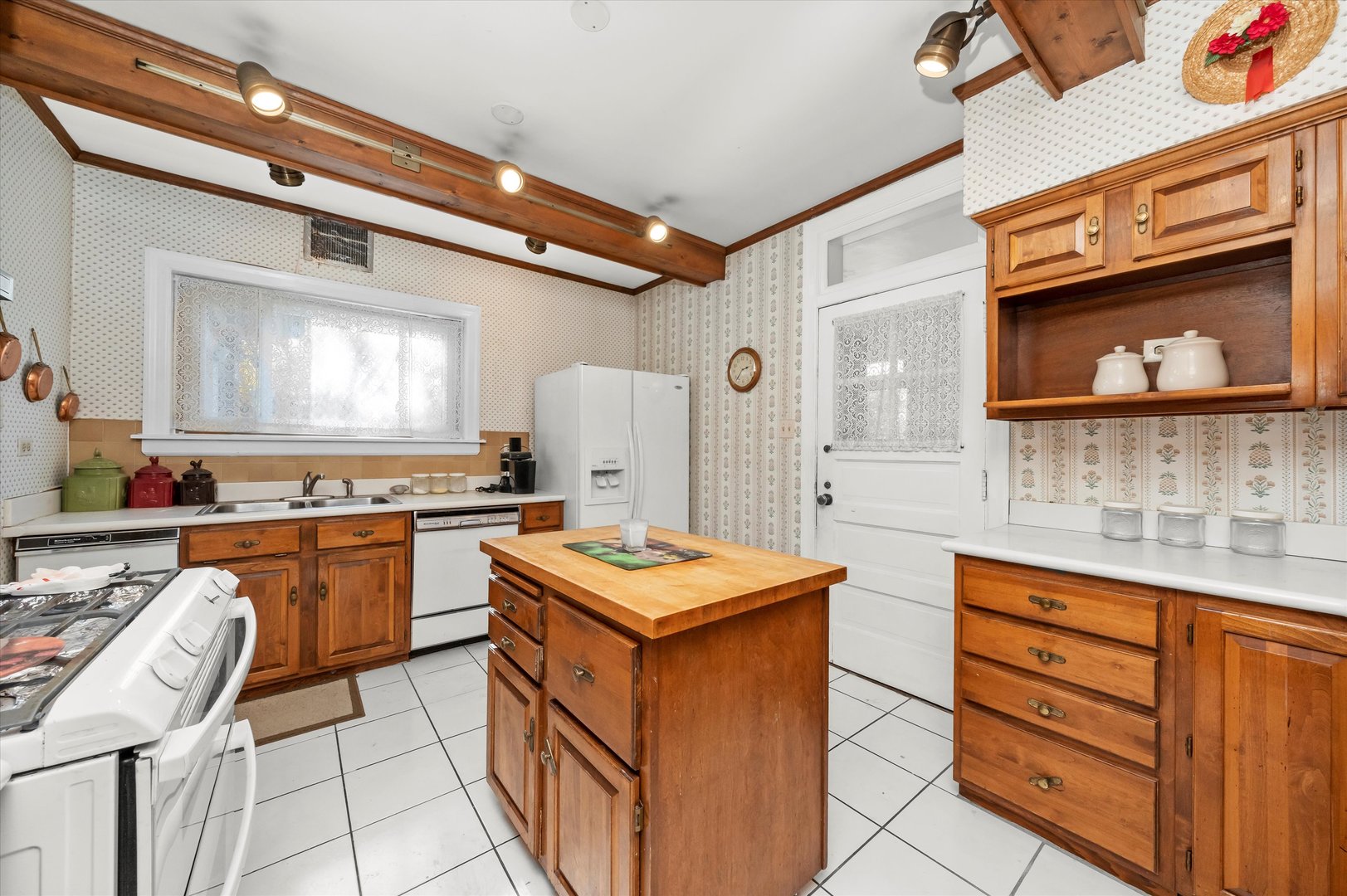 Welcome to this solid brick two-story corner property with a unique tile roof, located in Beverly, offering 5 bedrooms and 3.5 bathrooms, including one bathroom located in the basement. Move in, customize, and add value. Don’t miss out on this opportunity. The main level features a spacious living room with a wood-burning fireplace, built-in shelving and cabinets, chair rail, and crown molding. The separate dining room includes a chandelier, chair rail, and crown molding. The kitchen area consists of a breakfast bar, a portable island, and an adjacent breakfast den. The home boasts both an inviting front enclosed porch and a rear enclosed porch, as well as an enclosed screened patio next to the garage. Additional features include a 2-car garage, a full basement, and generously sized living areas. Located conveniently near schools, shopping centers, public transportation (including bus and train), and recreational facilities, this property is part of an “estate sale” and is being sold “as-is”.