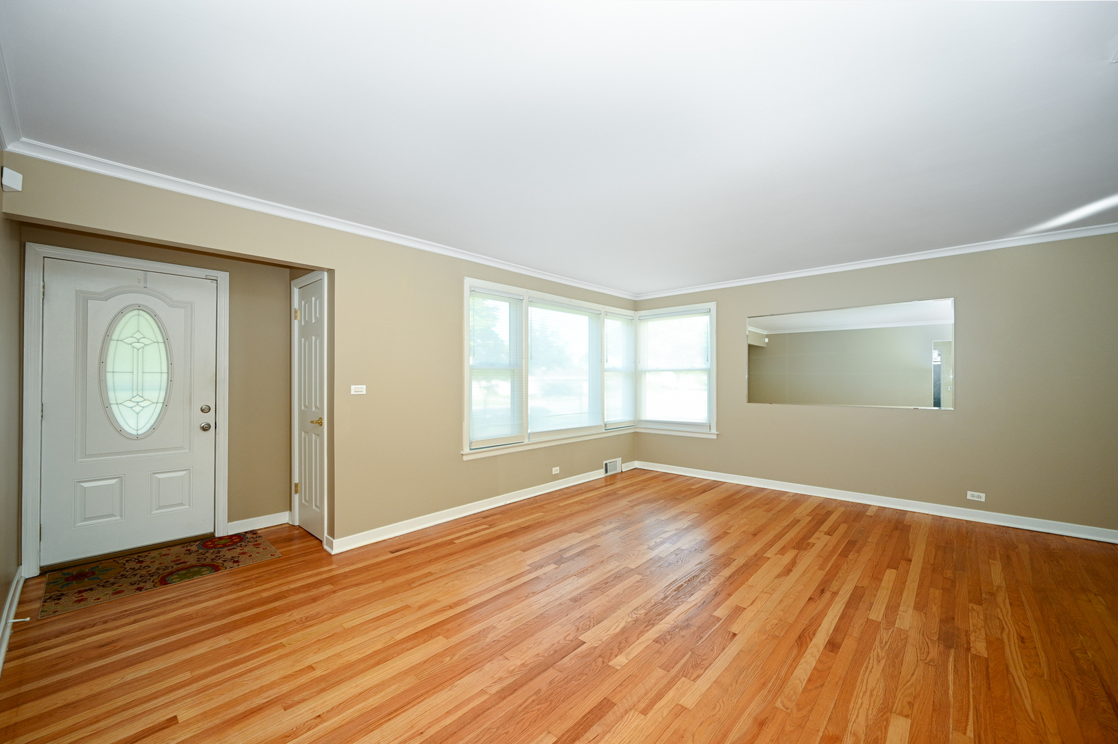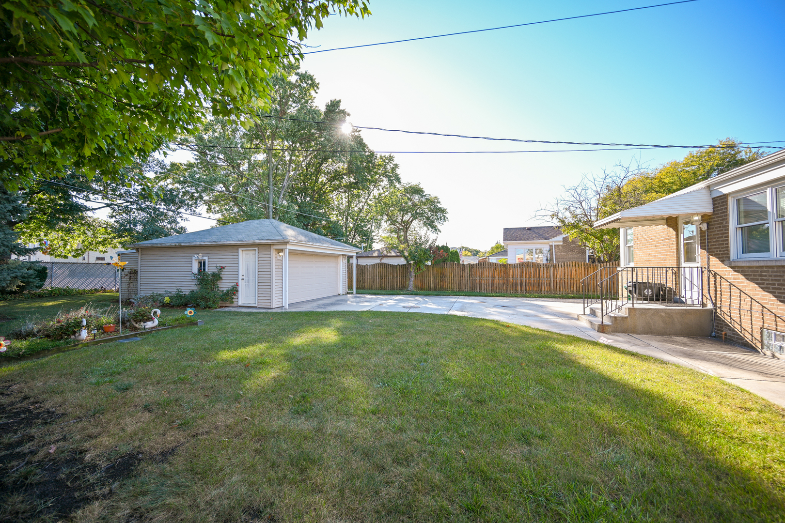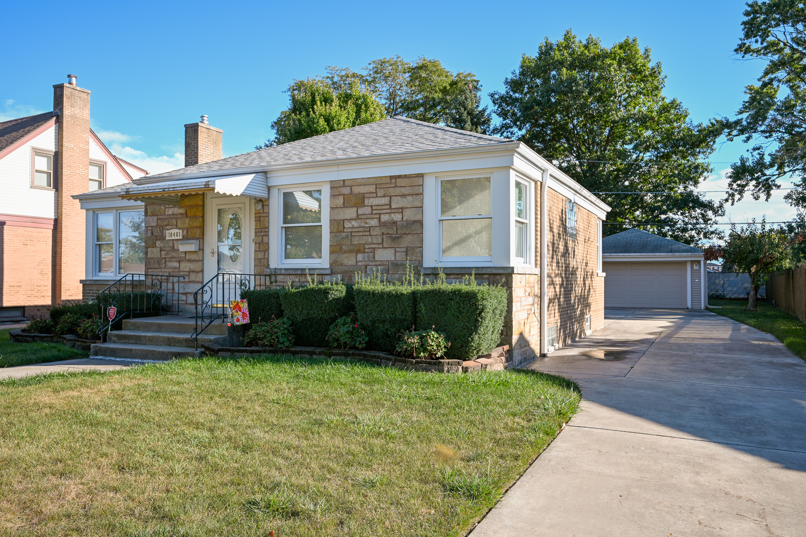 Welcome to this well-maintained ranch featuring 2 bedrooms and a finished basement. This home offers excellent curb appeal with its upscale stone masonry front elevation and professional landscaping. Inside, the open-concept living and dining rooms create the perfect setting for entertaining or relaxing, while the updated kitchen showcases beautiful wood cabinetry and space for a table. The two generously sized bedrooms offer ample closet space, complemented by a remodeled bathroom. Hardwood floors flow throughout the main level. The finished basement expands your living options with a large family room and bar, a storage/exercise room, and a laundry/utility room. The spacious 2-car garage features a workshop and a concrete driveway, ideal for guest parking. A private yard, patio area, mature trees, landscaping, and a privacy fence enhance outdoor living. Recent updates include a new dryer (2025), water heater (2023), roof, gutters, and downspouts (2022), window blinds (2022), and replacement windows (2019). Ideally located near Cermak and Mannheim Roads, with easy access to I-290 & I-294, this home offers convenient access to shopping, dining, and travel.