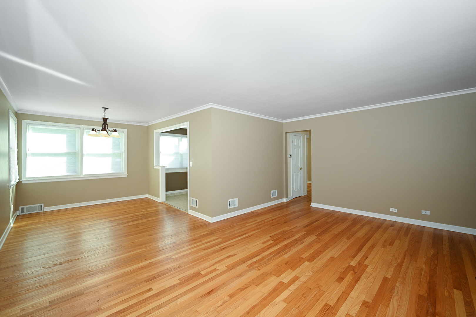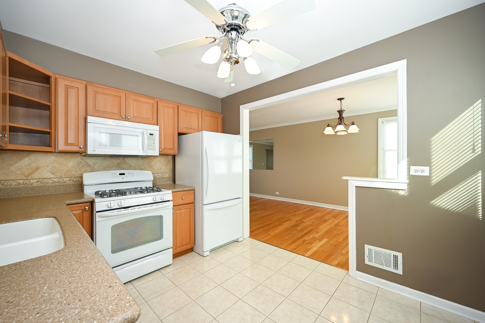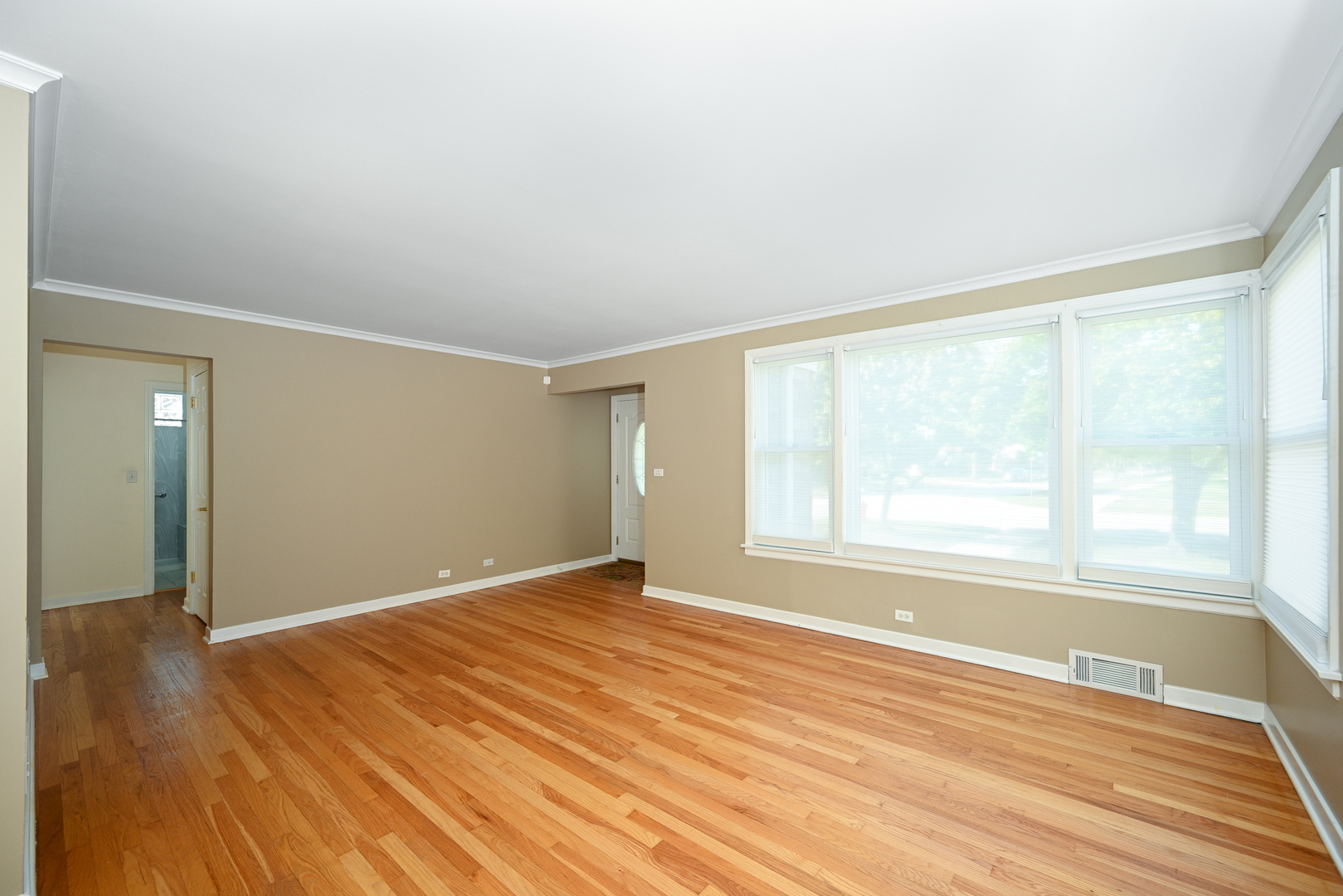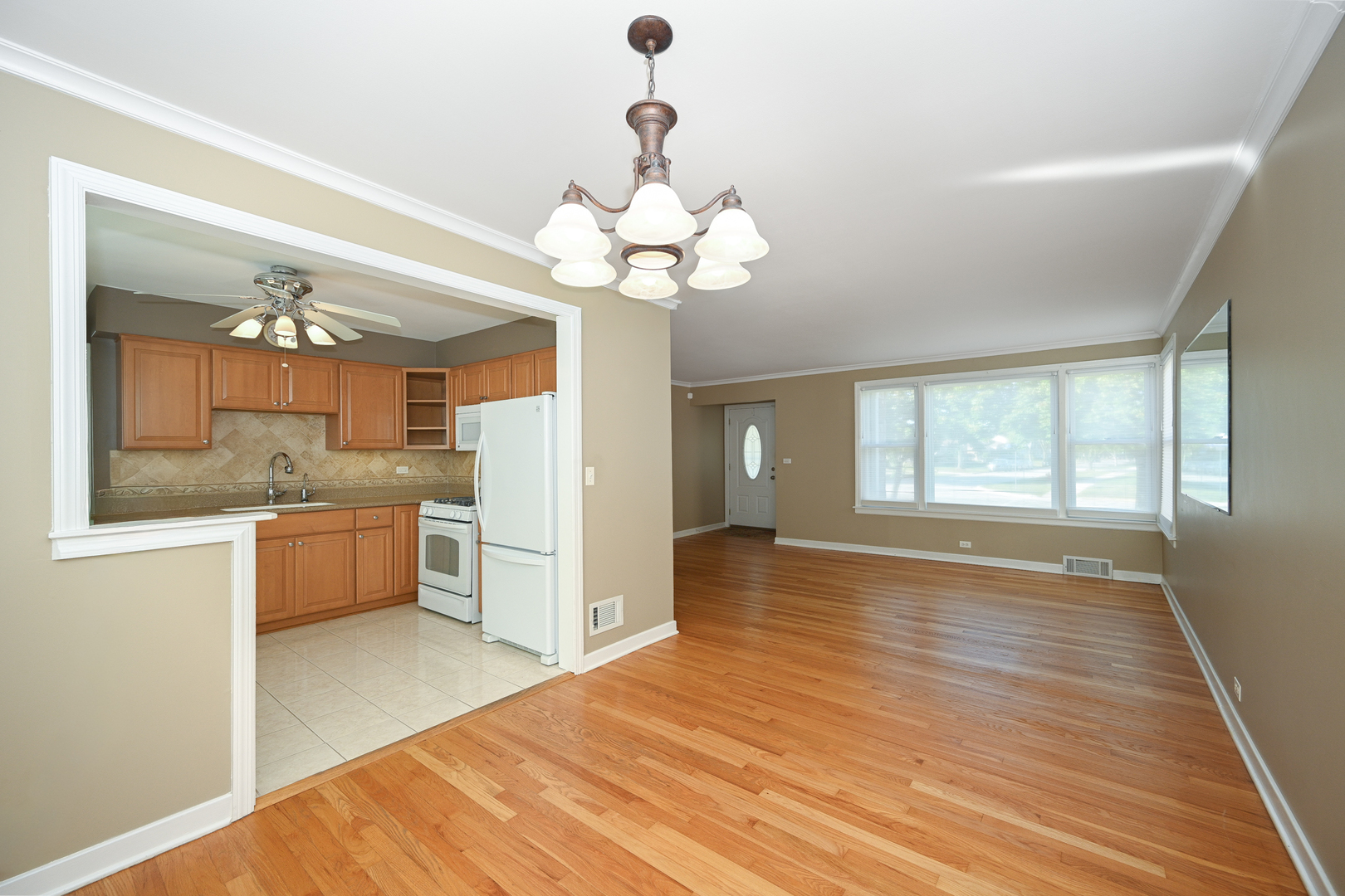 Welcome to this well-maintained ranch featuring 2 bedrooms and a finished basement. This home offers excellent curb appeal with its upscale stone masonry front elevation and professional landscaping. Inside, the open-concept living and dining rooms create the perfect setting for entertaining or relaxing, while the updated kitchen showcases beautiful wood cabinetry and space for a table. The two generously sized bedrooms offer ample closet space, complemented by a remodeled bathroom. Hardwood floors flow throughout the main level. The finished basement expands your living options with a large family room and bar, a storage/exercise room, and a laundry/utility room. The spacious 2-car garage features a workshop and a concrete driveway, ideal for guest parking. A private yard, patio area, mature trees, landscaping, and a privacy fence enhance outdoor living. Recent updates include a new dryer (2025), water heater (2023), roof, gutters, and downspouts (2022), window blinds (2022), and replacement windows (2019). Ideally located near Cermak and Mannheim Roads, with easy access to I-290 & I-294, this home offers convenient access to shopping, dining, and travel.