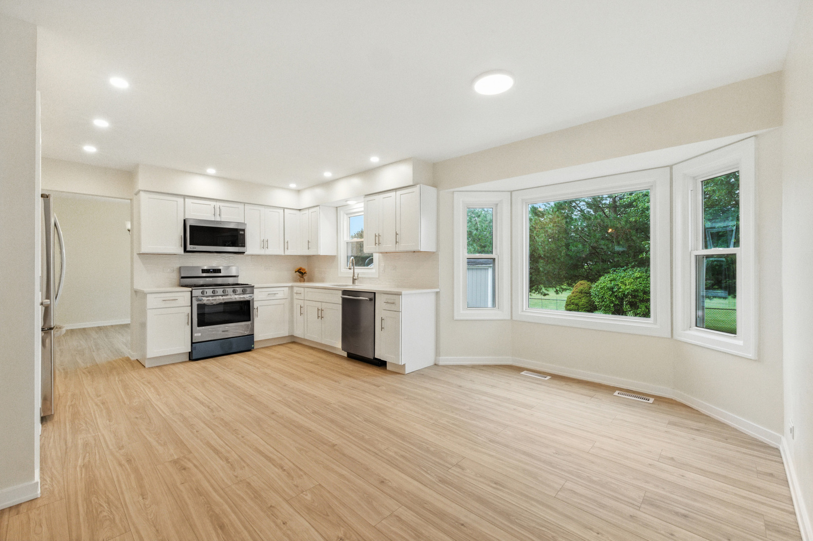 Completely renovated and move-in ready, this home combines modern updates with cozy spaces made for everyday living and entertaining. With over 2,000 square feet, it features 4 generously sized bedrooms, 2 full baths, and a convenient main-level powder room. The heart of the home is the beautifully updated kitchen, complete with all-new 2025 appliances and a stylish modern backsplash, perfect for preparing meals while staying connected to the family. Gather in the inviting family room where a warm, wood-burning fireplace sets the stage for movie nights and relaxing evenings. Hosting is a breeze with the living and dining room, offering an ideal space for celebrations and get-togethers. Upstairs, the spacious bedrooms provide comfort and flexibility for family, guests, or a home office. Fresh carpet, new flooring, and a freshly painted interior make the whole home feel bright and welcoming. The unfinished basement offers plenty of opportunity whether you dream of a game room, workout space, or simply need extra storage. Outside, your private fenced yard with a deck backs to open green space-perfect for sipping morning coffee, summer barbecues, or stargazing at night. With an attached 2-car garage for ample storage and Bode Lake’s scenic trails just a short stroll away, this home truly offers the best of comfort, convenience, and community.