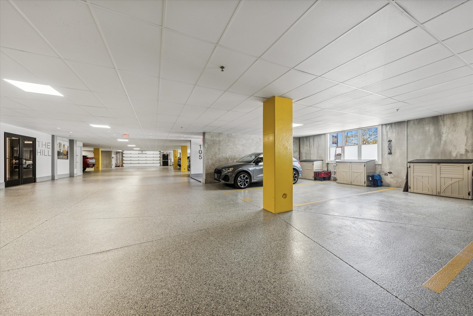 Welcome to The Hill, Elmhurst’s premier residence. This stunning two-bedroom, two-bath condo at 105 South Cottage Hill Avenue, Unit 304 offers modern luxury, thoughtful design, and an unbeatable location. Step inside and immediately feel the light and warmth of this home. Beautiful hardwood floors flow throughout the main living spaces, complemented by transom windows above each door for an extra touch of elegance. The open-concept kitchen is a showstopper with white cabinetry, white subway tile backsplash, quartz countertops, and a large island with seating. Stainless steel appliances and a dedicated bar area with wine fridge make it perfect for both everyday living and entertaining. The spacious family room opens to a private balcony where you can enjoy natural light and charming Elmhurst views. The dining area makes hosting easy, while the oversized laundry room with brand-new washer and dryer doubles as an office or extra storage space. Additional conveniences include a large utility room and a roomy front hall closet. The primary suite is a true retreat featuring balcony access, a walk-in closet with custom built-ins and a pocket door, plus a generous linen closet. The en suite bath includes a dual vanity and spa-like shower The second bedroom offers bright natural light, a built-in closet, and ceiling fan, with an adjacent full bath including a tub/shower for guests. Custom window treatments throughout add a polished finish. This unit includes indoor assigned parking (space 11) with a 120 volt charger. Enjoy incredible building amenities with a rooftop sundeck featuring Wolf grills, TVs, refrigerators, and multiple seating areas, ideal for gatherings large or small. A perfect blend of comfort, convenience, and style. This condo at The Hill is ready to welcome you home.