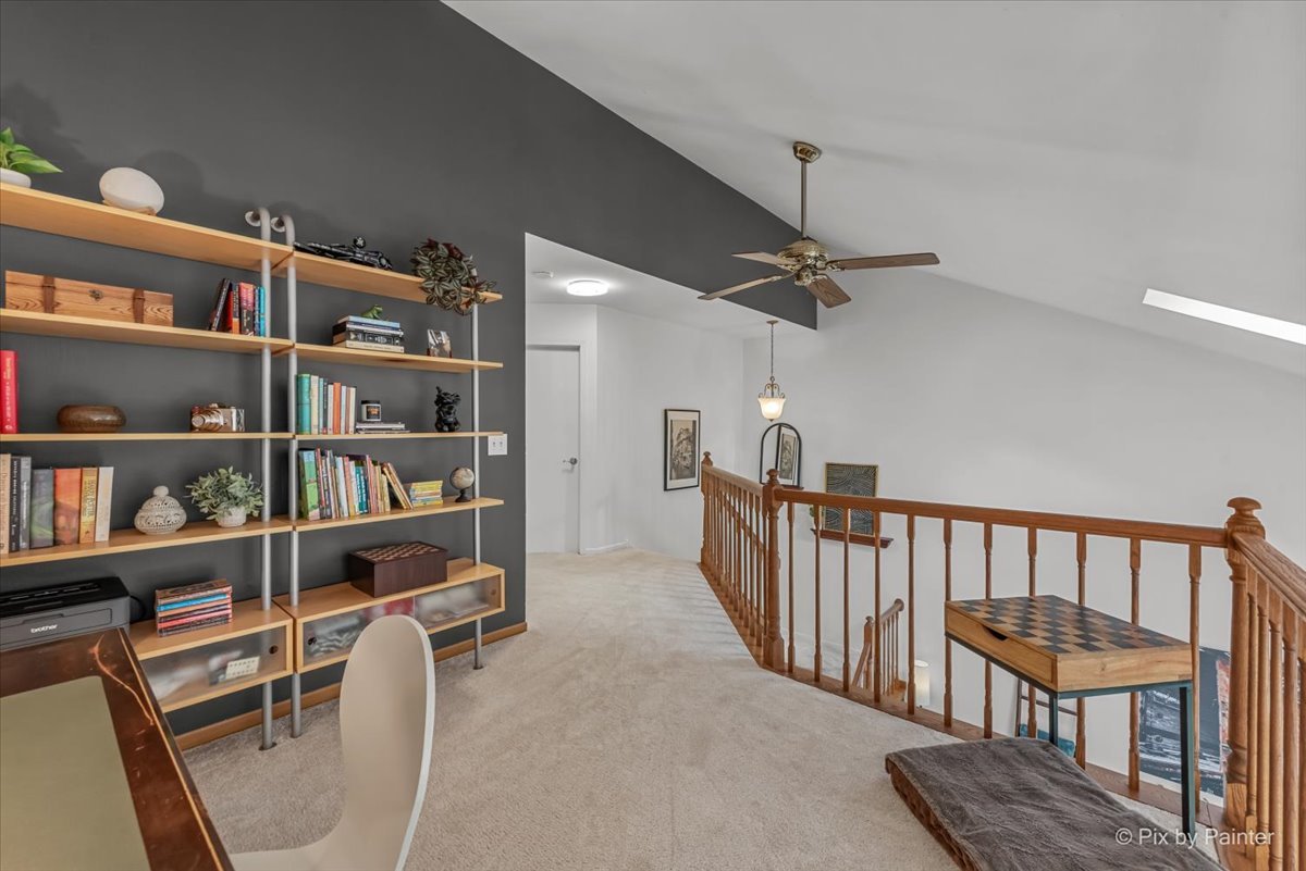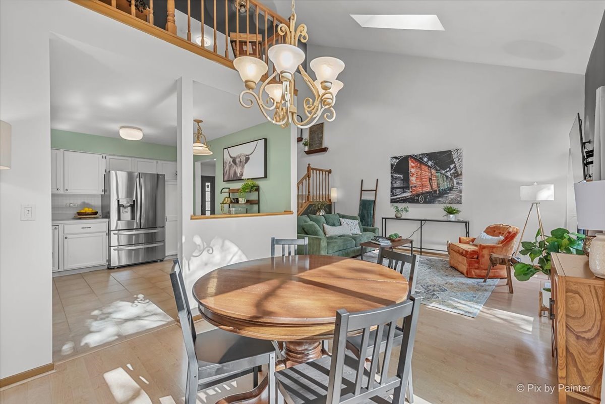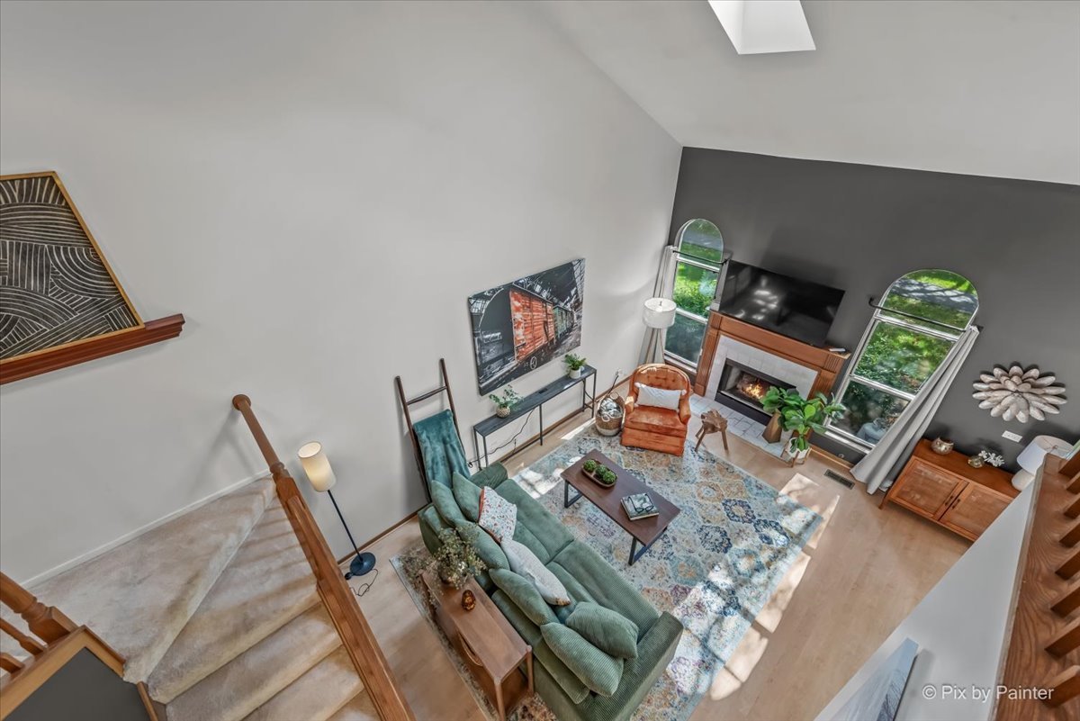Welcome to 1050 Rockport Drive in Carol Stream – Country Homes at Bennington. Light, bright, and move-in ready! This popular two-story townhome with a private entrance offers an open concept main level with soaring vaulted ceilings, a skylight, and a cozy fireplace that anchors the living room. The flexible dining area flows to a private patio-perfect for morning coffee-backing to neighborhood walking paths. A spacious kitchen provides plentiful cabinet and pantry space plus a breakfast bar area for casual meals. Upstairs, the spacious primary bedroom features vaulted ceilings and dual closets. The sunny loft (open to the living room below) makes a great office, media space, or potential third bedroom if desired. A generous second bedroom and a shared full bath with dual sinks complete the level. Additional highlights include a main-level powder room, in-unit laundry, under-stair storage, and an attached 1-car garage. Country Homes at Bennington is known for its tranquil lakes, paths, and easy access to parks, award-winning schools, shopping, dining, the Carol Stream/Winfield Metra options, and major interstates. Enjoy maintenance-free living with low HOA dues that cover exterior maintenance, lawn care, snow plowing, and common insurance. The association is well managed with healthy reserves. Rentals are allowed with a 12-month lease minimum, providing flexibility for homeowners and investors alike. This home has been well maintained, but sellers are offering it as-is.