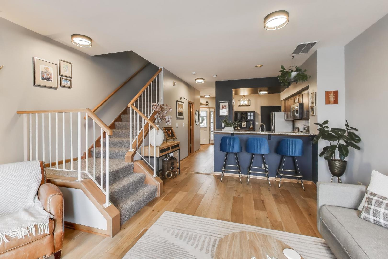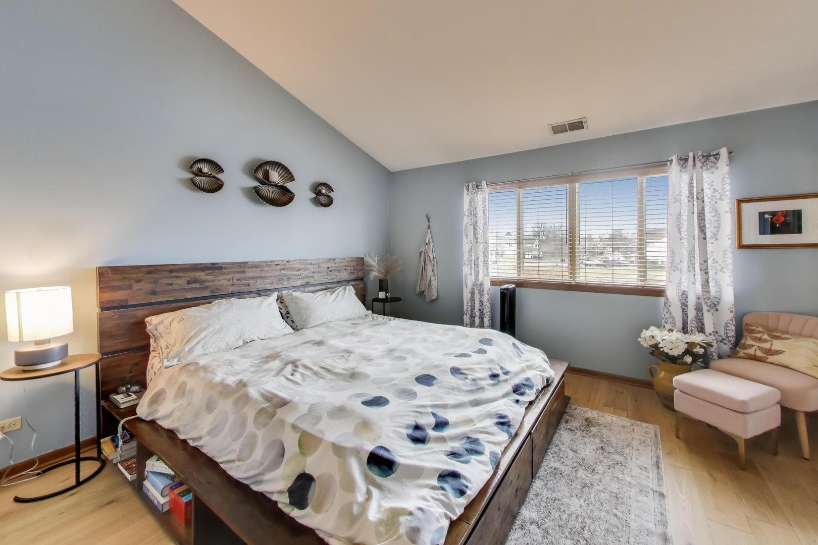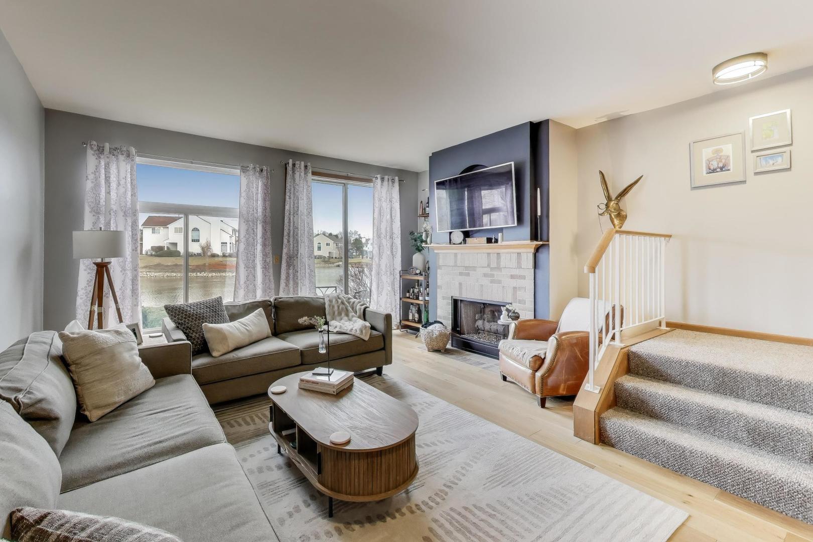 Beautifully decorated, well-kept and updated home in an ideal setting in sought after Reflections subdivision. Home features expanded kitchen with breakfast nook, breakfast bar area, granite counter tops, SS appliances and beautiful solid wood soft close cabinetry. Spacious living room/dining room combo with vaulted ceilings and lovely fireplace to enjoy on those cold evenings. Thoughtful features throughout including second floor laundry, a large primary suite with a large walk in closet and private bath and an attached garage for your convenience. Newer sliding glass doors open to a large concrete patio overlooking a tranquil pond providing serene views along with some extra privacy. Tons of natural light…Upstairs is a nice size second bedroom with walk-in closet and private full bath. NEW furnace-2024, NEW blinds-2020, NEW Pella storm door-2024, NEW water heater-2024, NEW luxury vinyl plank flooring-2023, NEW carpet on stairs-2025, NEW lighting-2022, NEW dishwasher-2025, ANNNND, TWO baths updated in 2021!! Tis fabulous two story home is second to NONE! Other recent updates include; updated kitchen and new appliances 2015, new sliding glass door 2019. Take advantage of the top-rated schools and easy access to expressways-ideal for commuters!