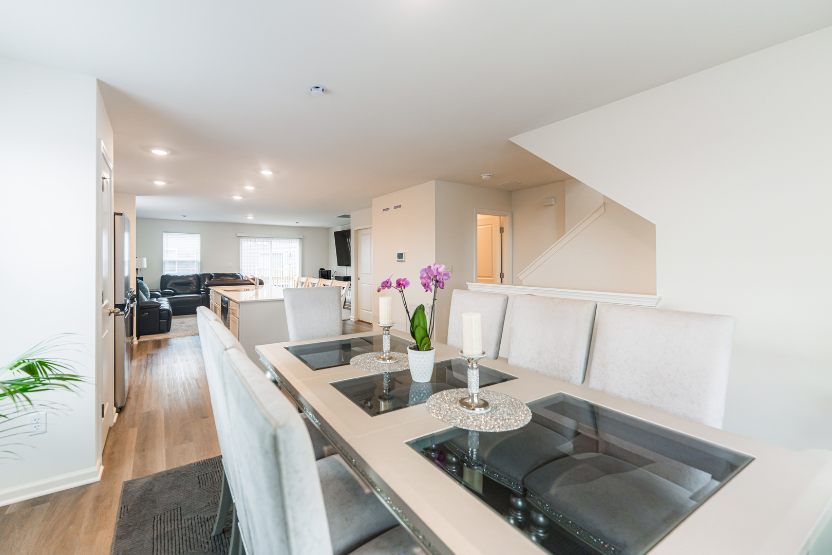 END UNIT 3 BEDROOM, 2.5 BATHS TOWNHOME – 2024 NEW CONSTRUCTION MOVE IN READY! This stunning and upgraded end-unit offers 1,756 sq. ft. of stylish living space. With 3 bedrooms, 2.5 baths, and a finished flex room, this home perfectly adapts to any lifestyle. The open-concept design fills the home with natural light, creating a warm, welcoming atmosphere. At the heart of it all, the kitchen shines with bright white cabinetry, a spacious island topped with quartz countertops, a pantry, and sightlines to both the front dining area and back great room-ideal for entertaining. Step out onto your private balcony for fresh air and relaxation. Upstairs, the spacious primary suite serves as a serene retreat with a walk-in closet and an en-suite bath featuring a raised dual quartz vanity. Two additional bedrooms, a full bath, and the convenience of second-floor laundry add both comfort and function. Luxury vinyl plank flooring flows through the kitchen, bathrooms, and laundry, balancing durability with modern style. Efficiency and innovation are built in with an ERV furnace system, tankless water heater, and America’s Smart Home Technology, including a video doorbell and Honeywell smart thermostat. The upgrades to the townhome include a new washer and dryer, a modern refrigerator, and updated hardware for both the bathrooms and kitchen. Additionally, the garage has been finished to enhance the overall functionality and appearance of the space. This home blends comfort, convenience, and cutting-edge features-perfect for your lifestyle!
