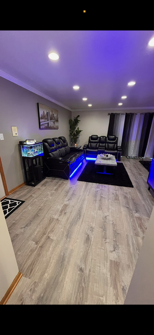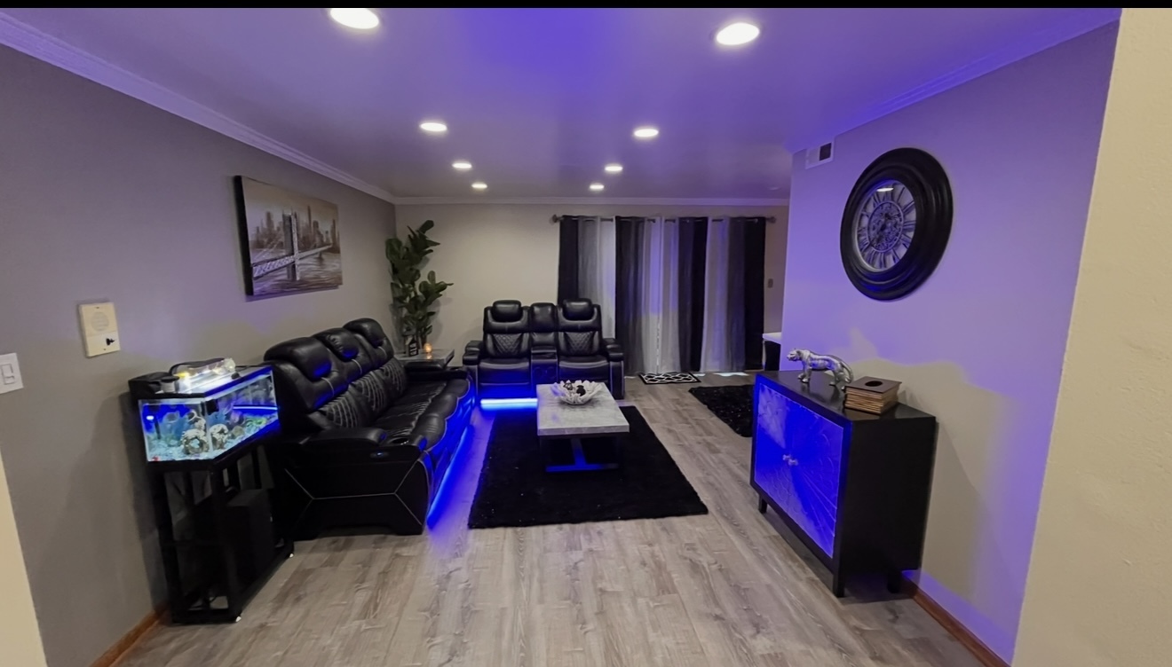 Immaculate remodeled spacious open concept, 2 bedrooms, 2 full baths, spacious living room, formal dinning, eat-in kitchen, full laundry room condo, solid flex floor quite & well maintained condo complex. the seller did not spare a thing in this beautiful unit. recent updates , new hardwood laminate flooring throughout, new upgraded baseboards & crown molding, trim & doors, recessed lights throughout, open concept kitchen to dining room with quarts center island/ maple cabinets, backs splash, breakfast bar with glass tile wall, freshly painted, professionally re varnished oak cabinets, huge eat-in kitchen with plenty of cabinets , updated bathrooms, new light fixtures & decorative rope lights, upgraded laundry room with new sink and back splash, new SS appliances & washer & dryer, spacious balcony with new stone tiles with a large closet for storage, plenty of parking spaces and a carport. this one will not last nothing to do just move in.