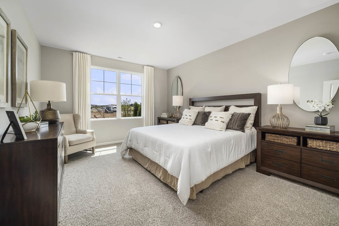 Envision yourself at 1055 Williamsburg Street in Pingree Grove, Illinois, in a beautiful new low maintenance ranch townhome in the Cambridge Lakes North community. This ranch townhome will be ready for a Winter Move-In! Homesite includes fully sodded yard and patio. The Callihan plan offers 1,360 square feet of living space with 2 bedrooms, 2 baths, and 9-foot ceilings. Enjoy the Callihan’s open concept Living room, Kitchen, and Dining area that’s a great space for all your entertaining needs! Your kitchen features designer cabinetry, stainless steel appliances, pantry, and large island with eating bar. Enjoy your private get away with your spacious primary bedroom, and en suite bathroom with raised height dual sink vanity, and walk-in shower. All Chicago homes include our America’s Smart Home Technology. Photos are of a similar home and model home. Actual home built may vary.