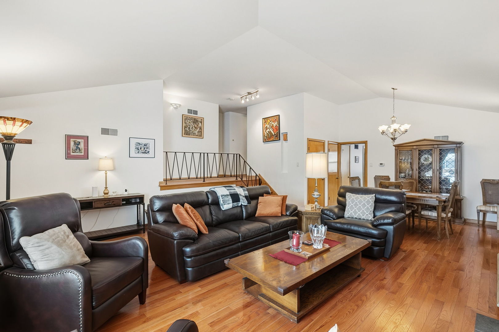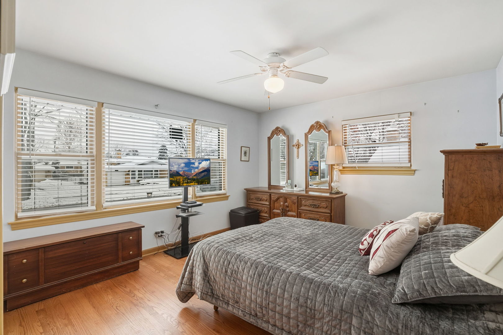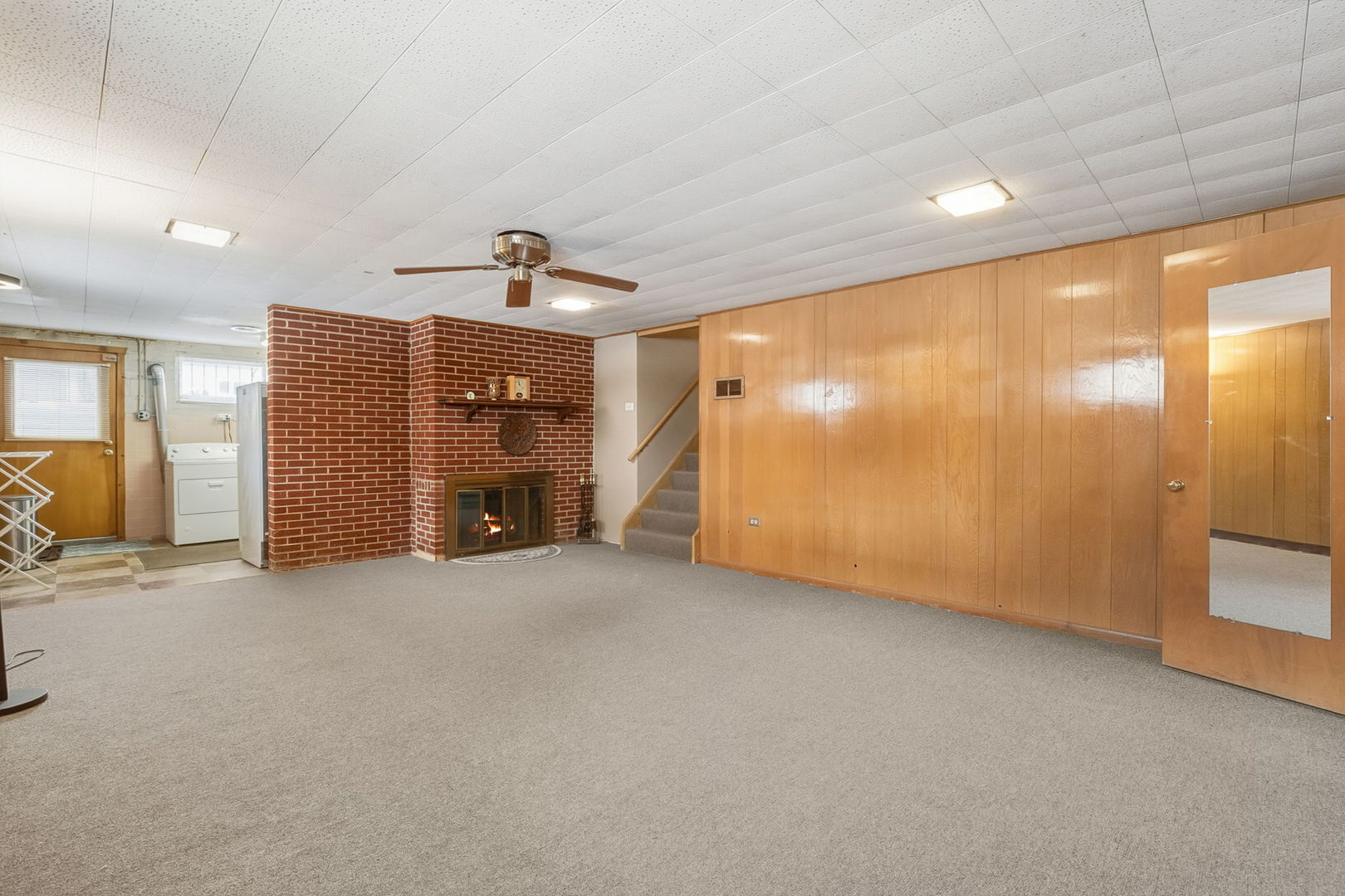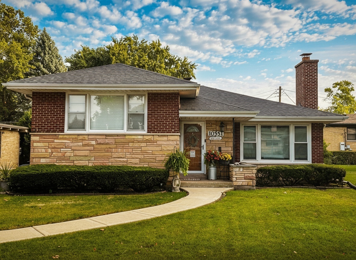 Spacious and beautifully updated brick home with 3 bedrooms upstairs plus a bonus 4th bedroom in the walk-out English basement. This move-in-ready home features a charming brick exterior, long driveway, perennial landscaping, and a cozy front porch. Inside, enjoy vaulted ceilings, freshly refinished hardwood floors, an open concept living and dining room, and a fireplace that is perfect for gatherings. The eat-in kitchen was remodeled in 2012 and includes granite counters, upgraded backsplash, stainless steel appliances, a 5-burner stove, and plenty of storage. The removed kitchen provides direct access to a beautiful low-maintenance backyard featuring a private patio and gorgeous perennial garden. The finished basement adds extra living space with a large rec room, BONUS 4TH BEDROOM, oversized laundry room, bonus crawl storage, and a private entrance to the backyard. It is ideal for an in-law suite, home office, or extra living area. The primary bedroom features hardwood floors, ample closet space, and neutral paint. Guests will enjoy their private bedroom and a recently restored mid-century modern bathroom. Upgrades include new living and dining room windows in 2015, new bathroom windows in July 2025, new front door in 2022, new roof in 2025, new furnace/AC in 2021, and new water heater in 2022. The home is ideally located near parks, schools, shopping, restaurants, and major highways. Equally convenient to O’Hare and Midway airports. Peaceful location & well maintained; Just move in and enjoy!