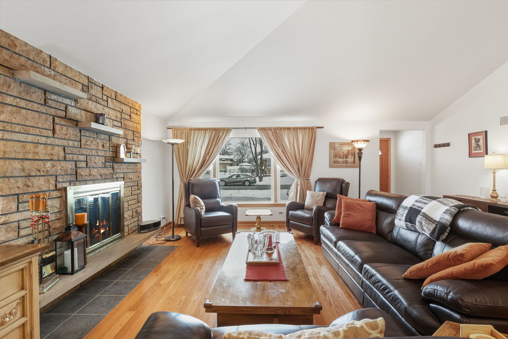 Spacious and beautifully updated brick home with 3 bedrooms upstairs plus a bonus 4th bedroom in the walk-out English basement. This move-in-ready home features a charming brick exterior, long driveway, perennial landscaping, and a cozy front porch. Inside, enjoy vaulted ceilings, freshly refinished hardwood floors, an open living and dining area, and a fireplace that is perfect for gatherings. The eat-in kitchen was remodeled in 2012 and includes granite counters, upgraded backsplash, stainless steel appliances, a 5-burner stove, and plenty of storage. It also provides direct access to the expansive backyard patio. The yard is easy to maintain and includes a spacious garage and beautiful gardens, perfect for outdoor events. The finished basement adds extra living space with a large rec room, bonus 4th bedroom, oversized laundry room, bonus crawl storage, and a private entrance to the backyard. It is ideal for an in-law suite, home office, or extra living area. The primary bedroom features hardwood floors, ample closet space, and neutral paint. Guests enjoy their private bedroom and a recently restored mid-century 2nd-floor bathroom. Upgrades include some replaced windows, living and dining room windows in 2015, bathroom windows in July 2025, front door in 2022, roof in 2025, furnace/AC in 2021, and water heater in 2022. The home is located in a quiet, friendly neighborhood close to parks, schools, shopping, restaurants, and major highways, and is equally convenient to O’Hare and Midway airports.