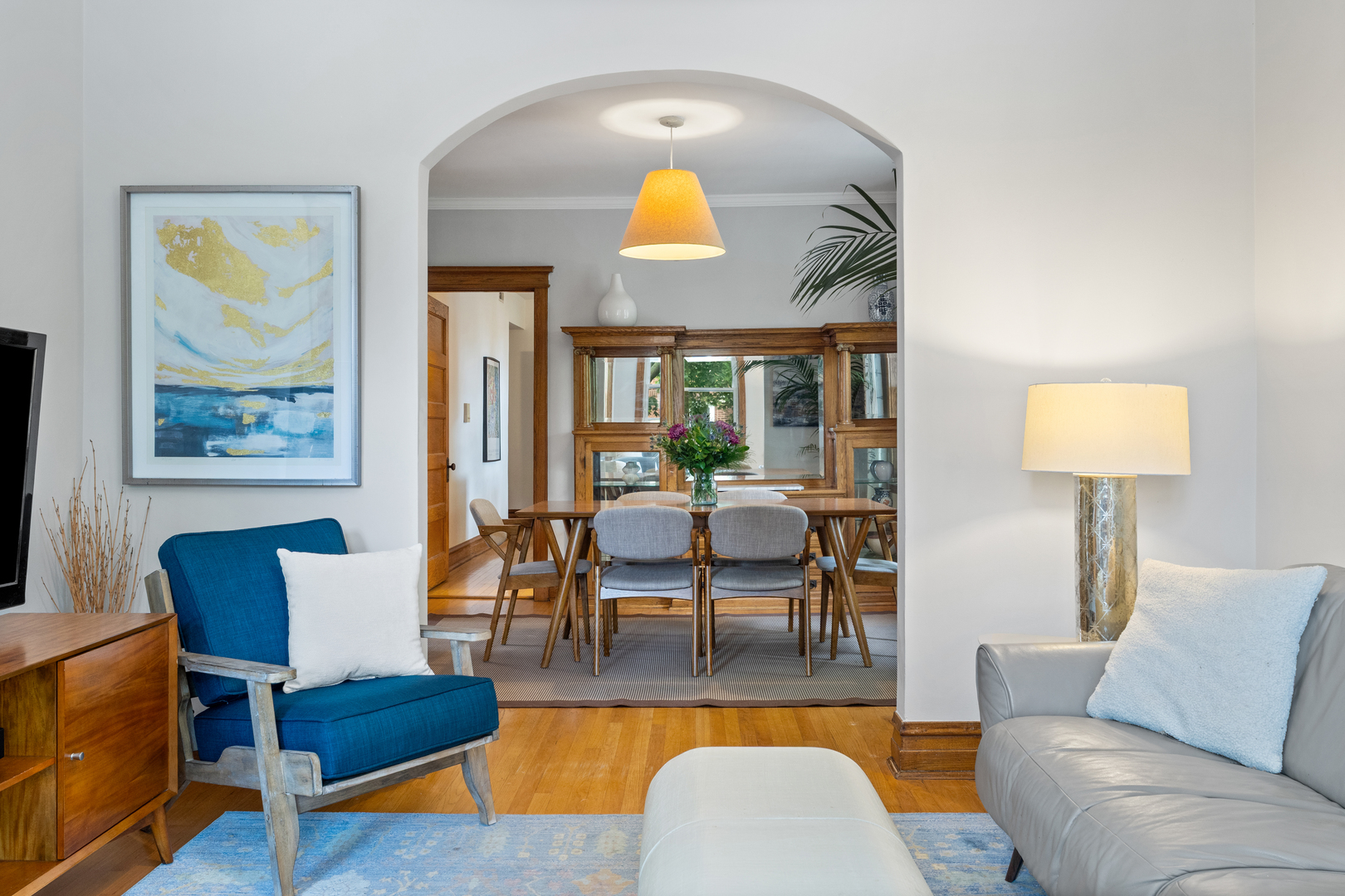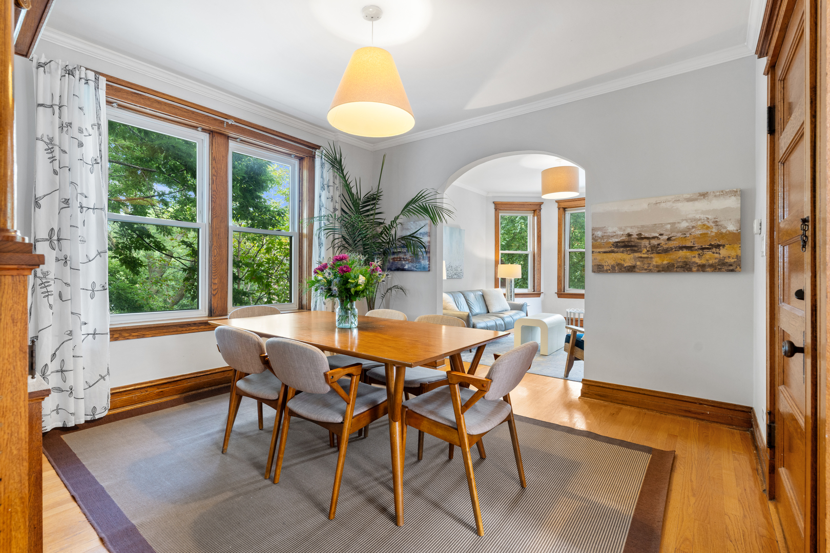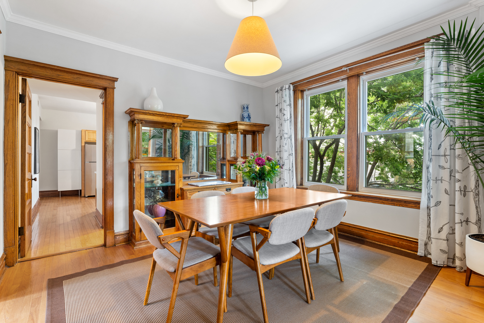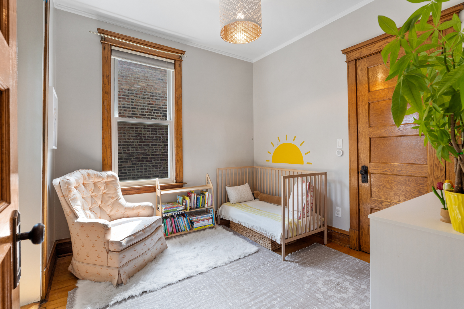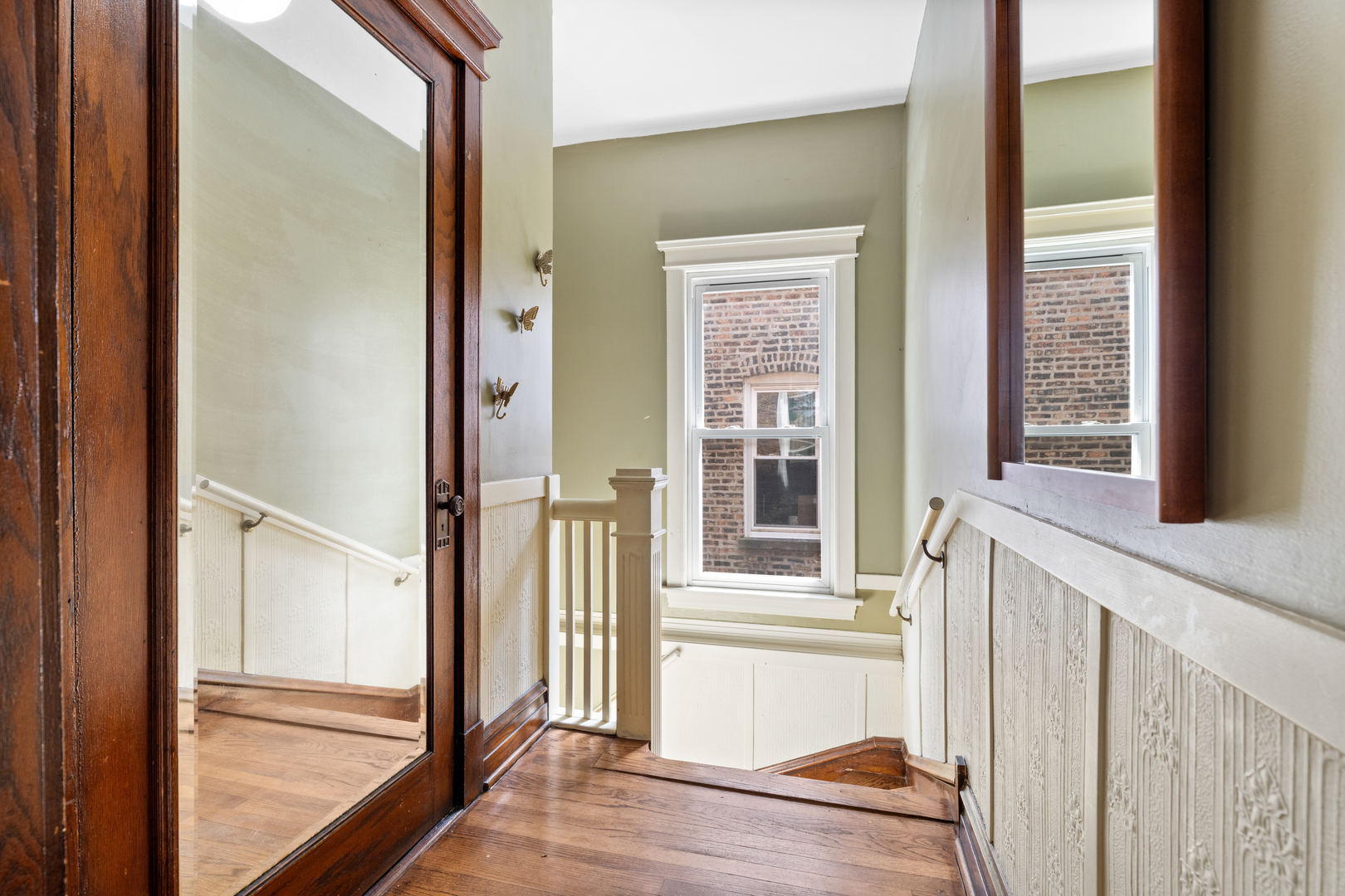 Tucked along a quiet, tree-lined street in the vibrant Ukrainian Village neighborhood, this beautifully updated top-floor 2-bed, 1-bath home seamlessly blends timeless charm with modern sophistication. Bathed in natural light from south, east, and north-facing windows, the interior showcases rich crown moldings, original woodwork, and a stunning built-in buffet that adds architectural character to the dining area. The chef’s kitchen features new quartz countertops, a prep island, new stainless steel appliances, and a pantry. The bright, inviting living room – anchored by an elegant bay window – flows seamlessly into the dining space, creating an effortless setting for both relaxed evenings and lively entertaining. The spacious primary bedroom includes a large walk-in closet, south-facing natural light, and plenty of room for a king-size bed. The second bedroom opens onto a private front porch with peaceful views of the tree-lined street. The second bedroom has a nice-sized walk-in closet, which doubles as a hall closet. A beautifully updated bathroom offers classic details with white tile, a built-in window shelf, and a linen closet. Thoughtful updates include an in-unit washer/dryer, central heating and air conditioning, a large walk-in pantry, and a private storage area perfect for bikes and seasonal items. With Division Street’s renowned restaurants, boutique shopping, and vibrant nightlife just steps away, this residence offers an exceptional blend of historic character and modern comfort. After these photos were taken, a brand new stainless steel dishwasher was installed.