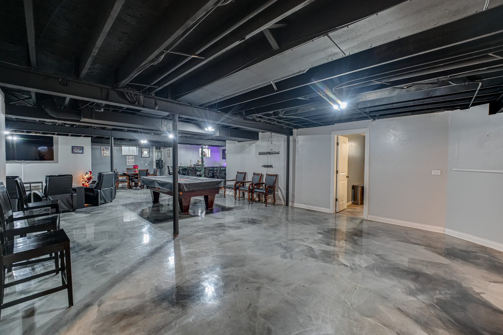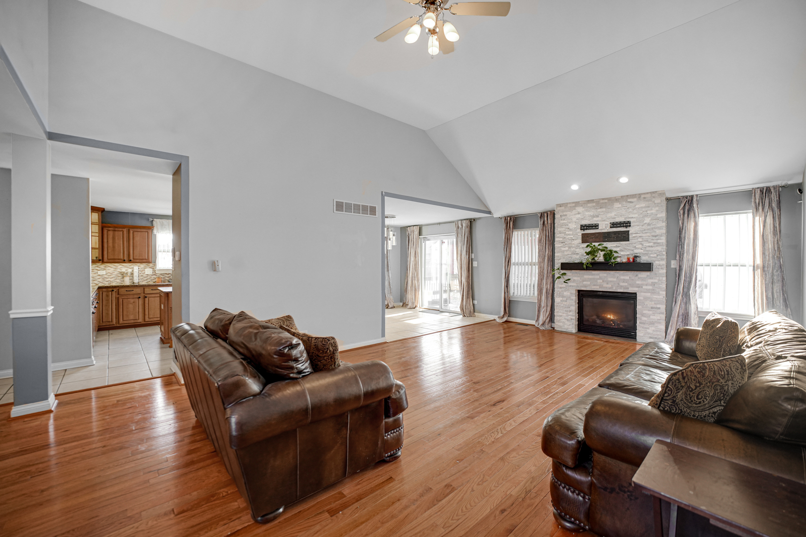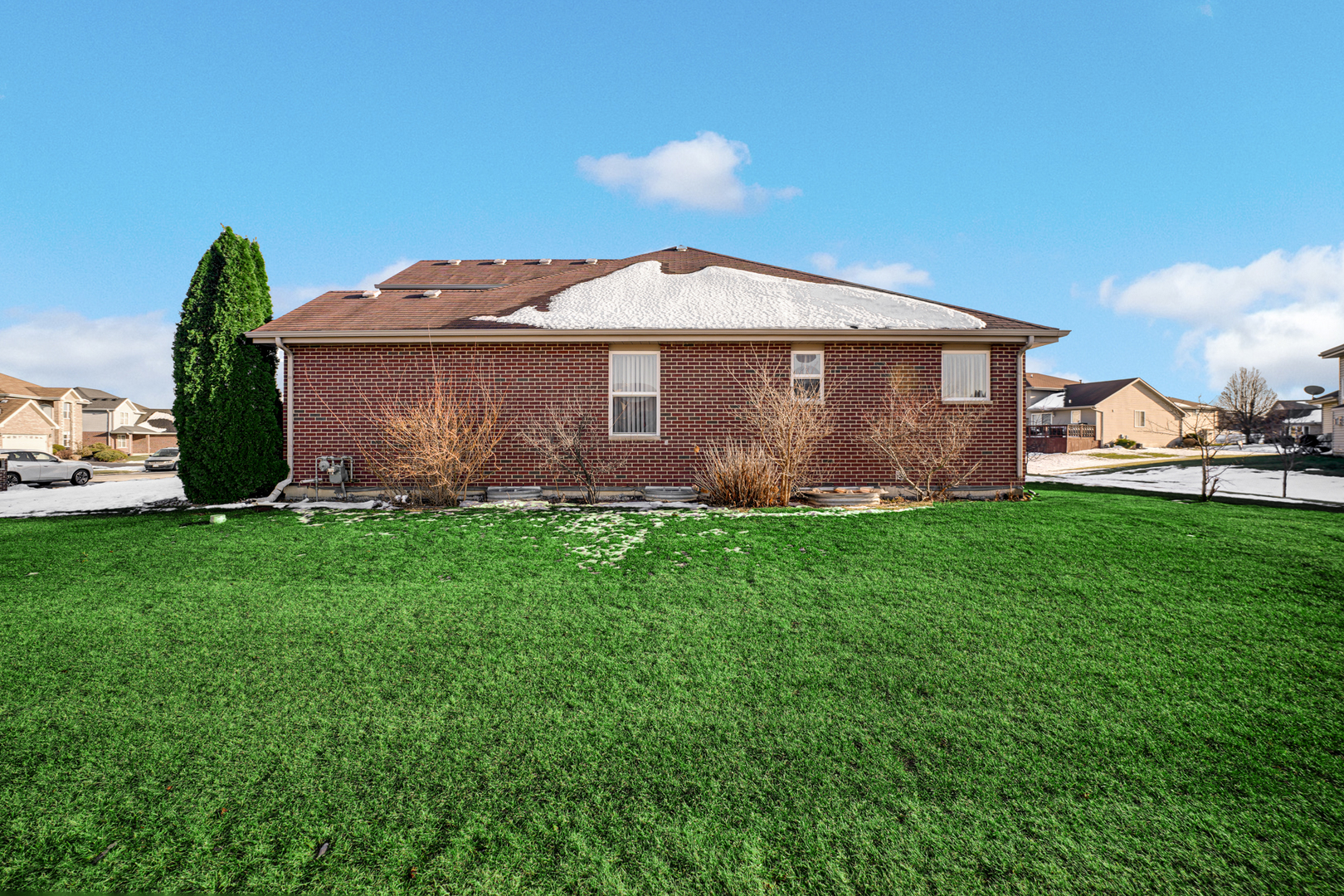 This luxury ranch-style home, nestled in the highly sought-after Greenfield subdivision, offers three spacious bedrooms and an inviting open-concept layout designed for both comfort and entertaining. Upon entry, you are welcomed into a bright and expansive living room showcasing gleaming hardwood floors and a gas fireplace. The home features a separate dining room and family room, providing versatile living and entertaining spaces. The modern kitchen is appointed with granite countertops, a center island, and ample space for an eat-in kitchen table, making it ideal for everyday living and gatherings. Step outside to the screened-in back porch, perfect for enjoying summer evenings. The primary suite is a private retreat, complete with an ensuite bathroom featuring a deep soaking tub, separate shower, and walk-in closet. The finished basement elevates this home even further, offering a truly exceptional entertainment space. Designed with epoxy flooring, it includes a wet bar, theater-style seating, an additional full bathroom, and an extra bedroom-perfect for guests, extended living, or recreation. This home seamlessly blends luxury, functionality, and space in a premier location.