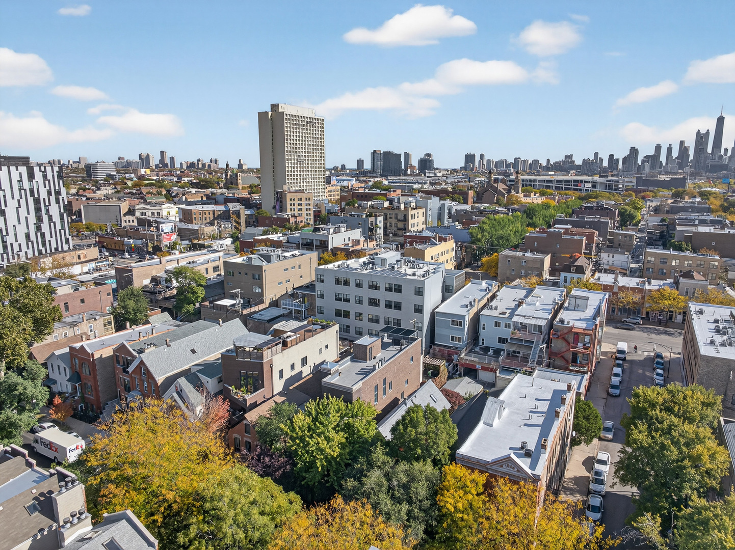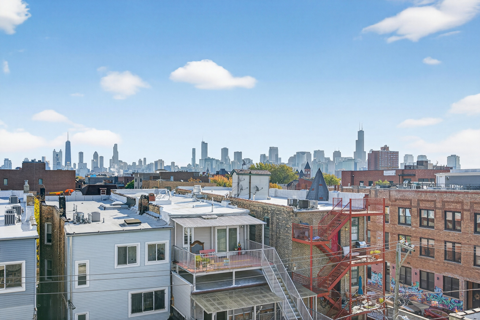 **OH Canceled. Property under contract.** Welcome to this light-filled 3-bedroom, 2.5-bath penthouse triplex located on a quiet street in an exceptional West Town location. This stunning multi-level home delivers true wow factor with soaring 18-foot ceilings in the main living, dining, and kitchen spaces and three private outdoor spaces. The living room features floor-to-ceiling windows, a corner gas fireplace, and access to a deck (replaced with composite materials in 2022) which overlooks the quiet tree-lined street. The dining area flows into the kitchen and features granite countertops and stainless steel appliances. Just past the kitchen is a main-level half bath. The second level features the private primary suite with a private balcony, dual closets and an ensuite with dual vanity, full body spray steam shower and a whirlpool soaking tub. The lower level features two bedrooms that share a hall bath and have easy access to the laundry closet. The centerpiece of this unit is the fully built-out private roof deck with a floating deck, pergola, and roof tiles (2023), chimney steel chase cover replacement (2023), and sweeping city views with sightlines to the Willis Tower. One garage parking space is included in the price. Recent building improvements include: new roof (2022), extensive brickwork and tuckpointing (2024), & refreshed shared entry and common areas (2026). Perfectly positioned just off Division Street and slightly east, this home feels remarkably private for a city condo. Blocks to the Division Blue Line, I-90/94, and multiple bus lines. Minutes to all the shopping, dining, and nightlife the city has to offer. A truly special place in an unbeatable location makes it the perfect place to start your next chapter.
