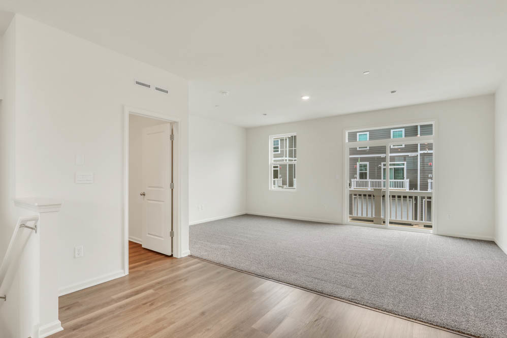 Discover modern living at its finest at 575 Yosemite Way in Mundelein, Illinois, a brand-new townhome in the Townes at Oak Creek community. Ready for you by late-December, this home includes a fully sodded yard with professional, year-round upkeep as well as snow removal in the winter. Beautiful landscaping greets you as you step into this charming Montgomery townhome. The flexible floor plan boasts 2 bedrooms, plus an upstairs loft, 2.5 baths, and a finished lower-level flex room, all intuitively spaced within 1,630 square feet of living space. Once inside, you’ll be greeted by the flex room, perfect for a home office or playroom. Walking up the stairs, you will find this home’s open concept living with 9-foot ceilings and luxury vinyl plank flooring throughout the main level kitchen and dining, and bathrooms. The expansive kitchen is designed with views from the plethora of countertop space with an overhang for stools. Additionally, your kitchen features Quartz countertops, 42″ cabinetry with soft close doors and crown molding, and stainless-steel appliances. Arriving at the top floor, you’ll find the primary suite, second bedroom and loft area with a full second bath, and laundry room. Enjoy a spacious primary bedroom suite with a large walk-in closet and connecting en-suite bathroom with double sinks and a walk-in shower. Our Chicago home includes our America’s Smart Home Technology featuring Smart Home Features. Photos are of a similar home. Actual home built may vary