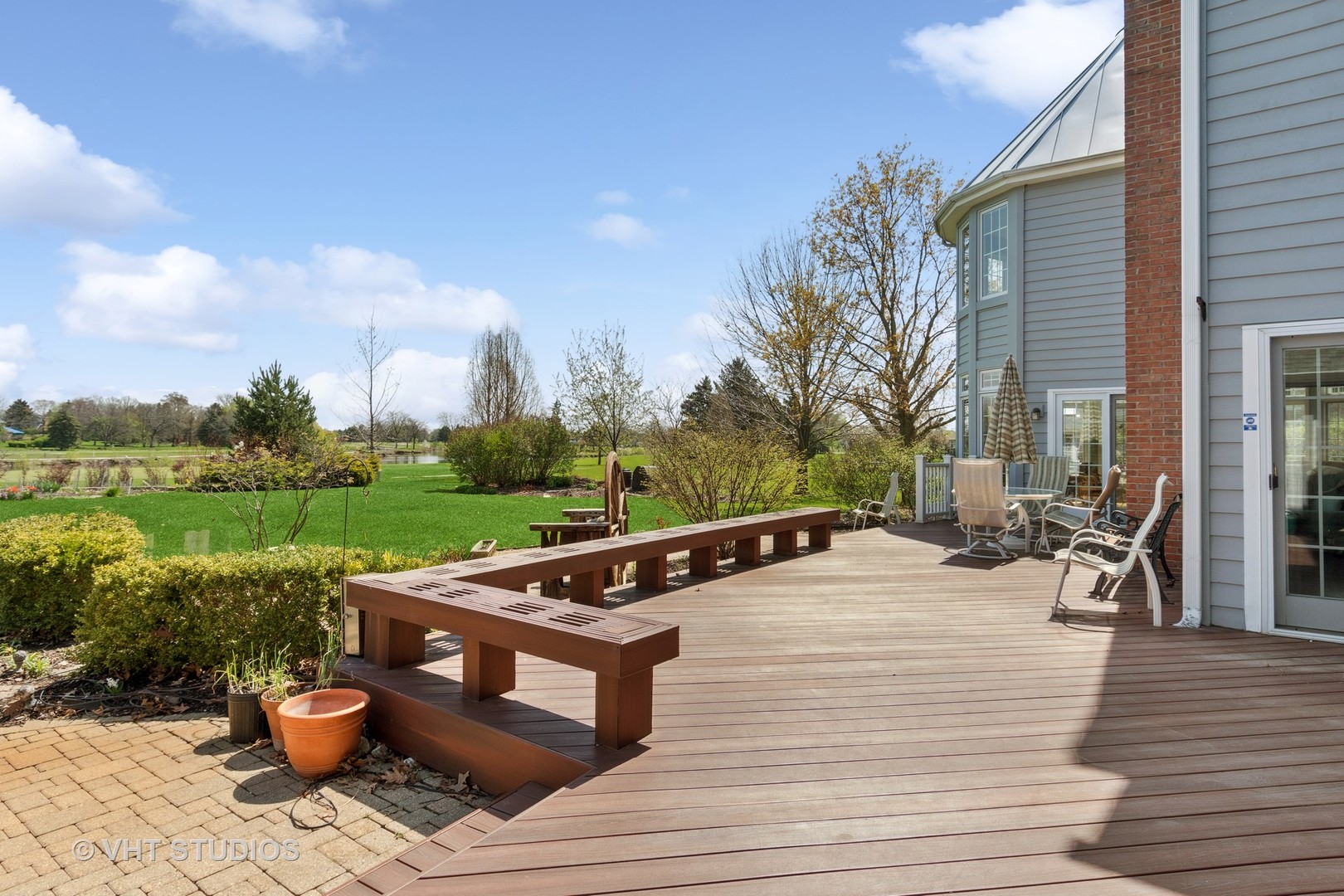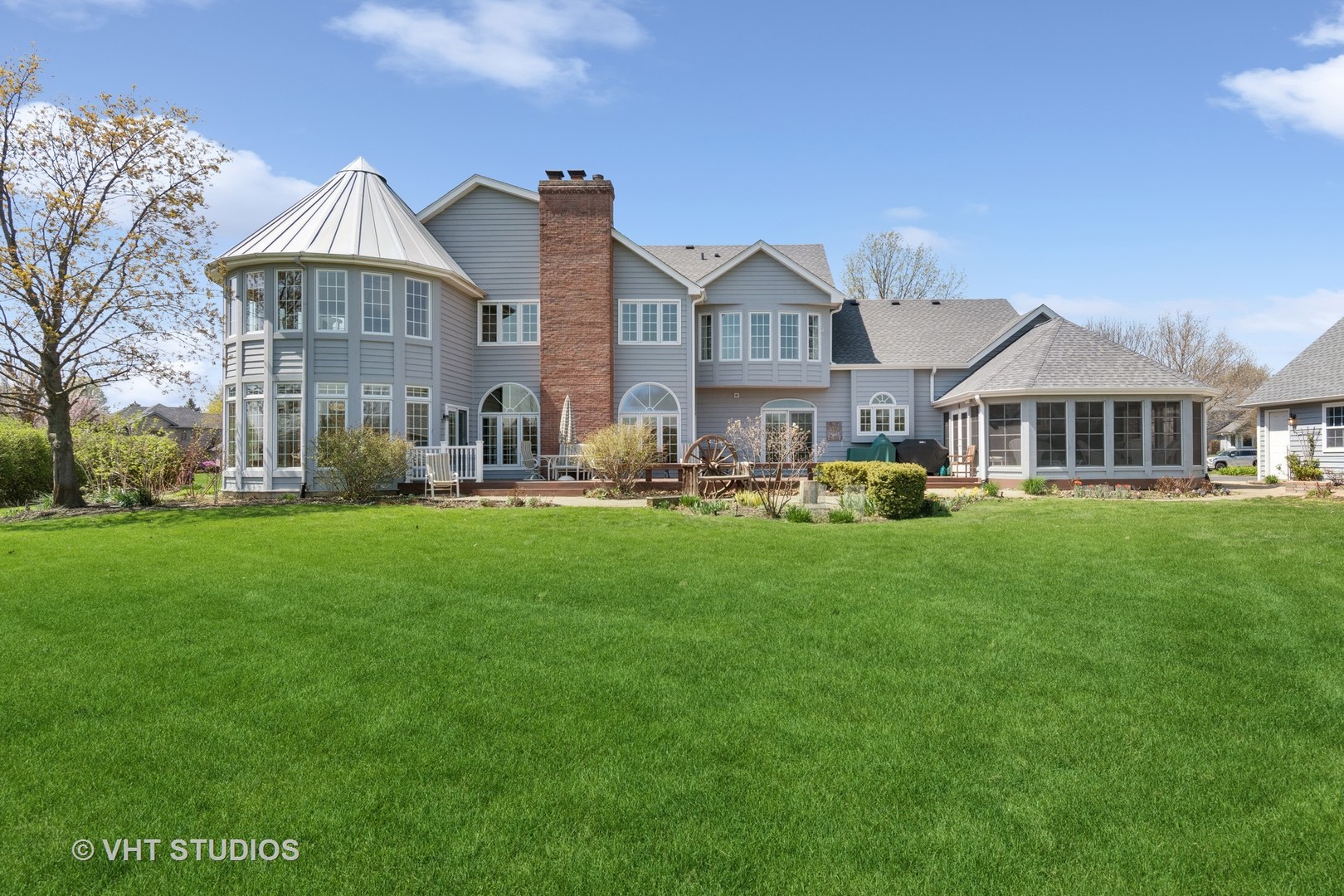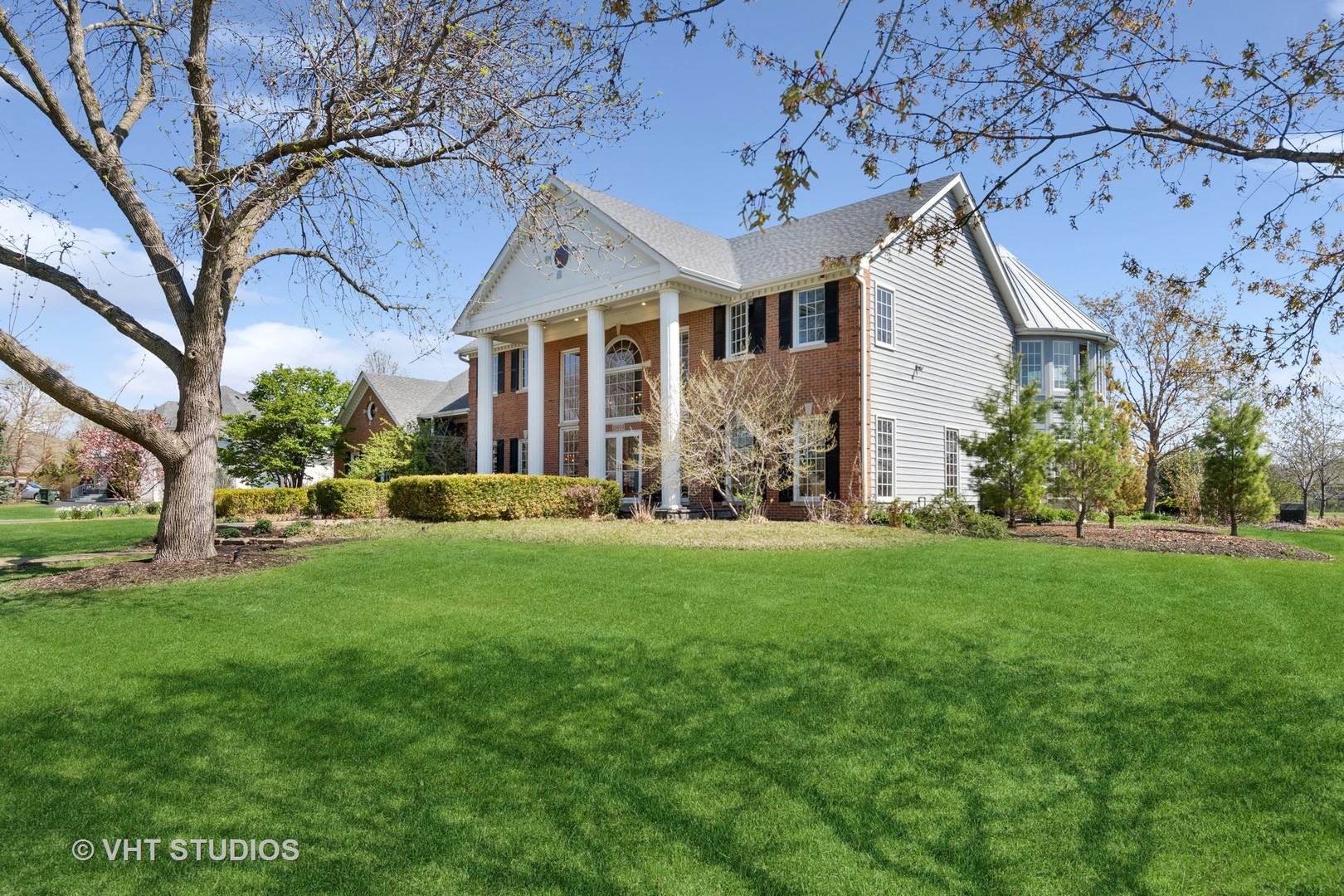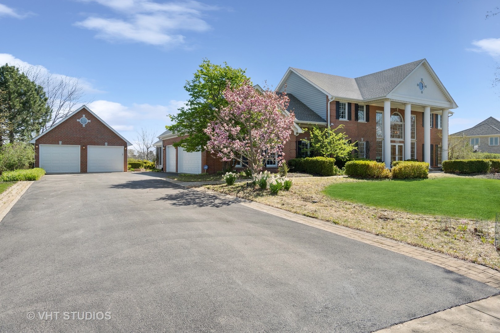 So much to love here! Rare 5 car garage. Stunning property with gorgeous gardens and spectacular views of the golf course. Dramatic front entrance with classic front columns. This impressive property is located in prestigious Tamarack Fairways. This stunning home, on almost an acre of land, offers privacy and tranquility. A dramatic and breathtaking double staircase welcomes you into the sundrenched foyer. This spectacular home has countless design elements that make this home unique and one of a kind…hardwood floors, wainscoting, crown molding, ceiling fans, wet bar, and a one-of-a-kind handwoven Oriental rug, curated just for this home. The enormous sunroom is a sundrenched masterpiece that allows peaceful and serene views of the stunning grounds. Gorgeous hardwood floors! The large family room features a lovely wood trimmed fireplace. The kitchen offers amazing granite counter tops, plentiful white cabinets, walk in pantry, great lighting and great work space. The primary bedroom at the top of the double staircase is a serene and peaceful place to end and start your day. Amazing closet space including an extended closet through the enormous private bath. Separate shower, water closet, dressing area and precious natural light from the wall of windows. The huge second bedroom, has been redesigned to bring the stunning outdoor views to life and offers great closet space. There are 2 additional bedrooms and 2 additional baths on this level. The finished basement adds to the living space in this lovely home. Step outside and into a masterpiece of nature with the stunning grounds, lush gardens, water views, paver walkways. The newer TREX deck is perfect for entertaining with a huge screened in porch adding to the living and entertaining space outside. The 5-car garage has 3 cars attached with a 2-car separate garage (21X29). There is a planting shed and arbor for the avid gardener with plenty of working room. Both garages have epoxy floors with new Polyaspartic coating in the attached garage. The well-maintained home and stunning property are serviced by award winning District 204 schools, including Neuqua HS.