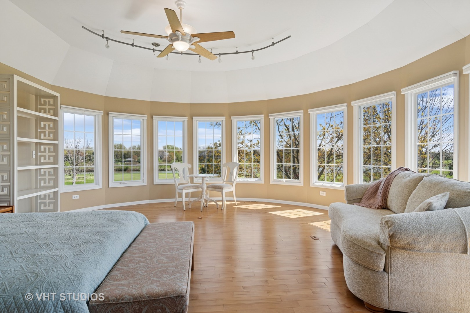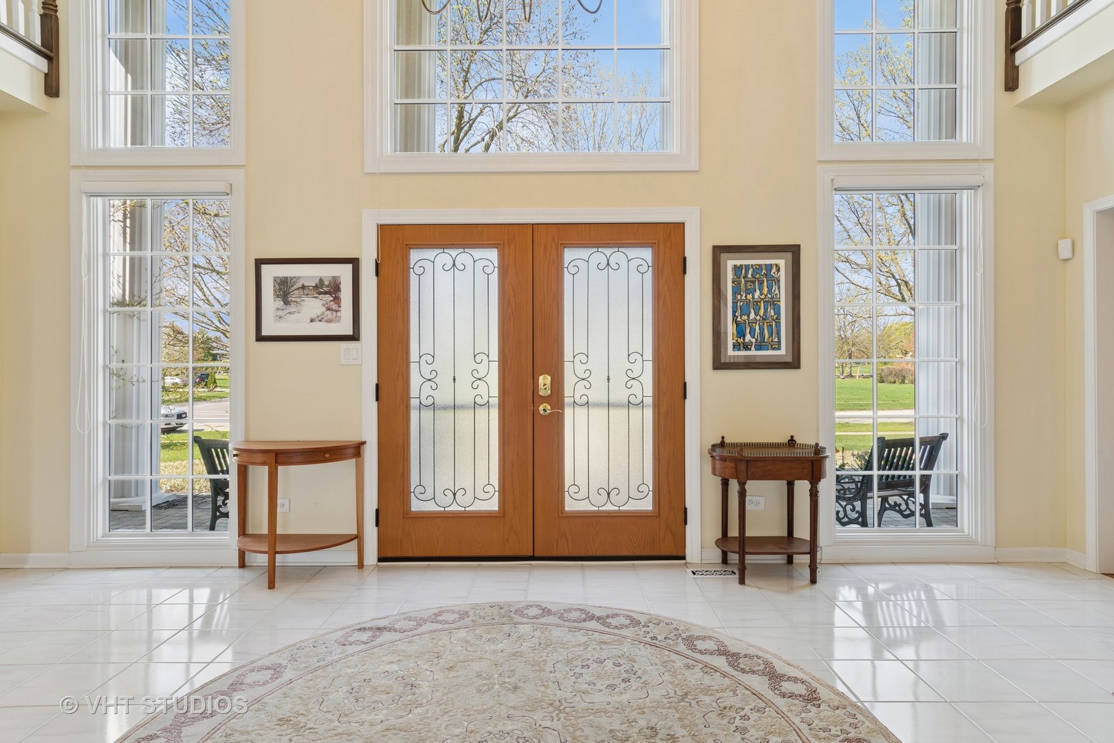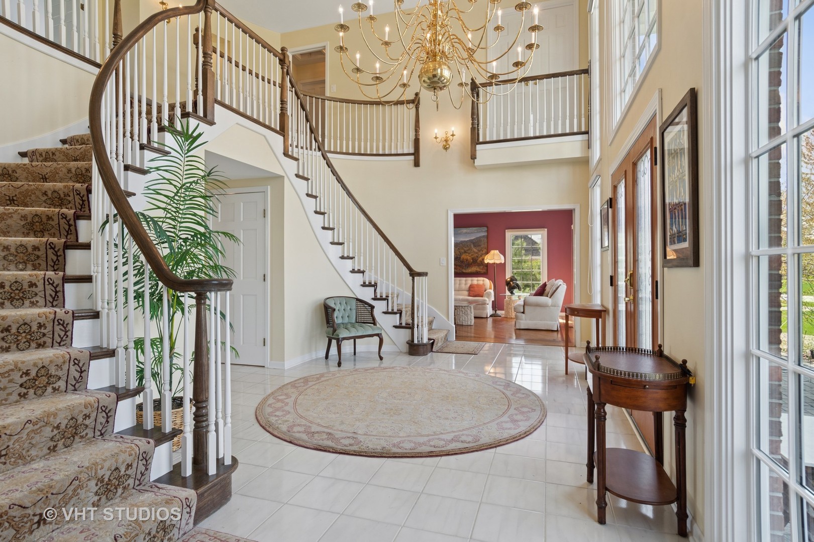 So much to love here! Rare 5 car garage. Stunning property with gorgeous gardens and spectacular views of the golf course. Dramatic front entrance with classic front columns. This impressive property is located in prestigious Tamarack Fairways. This stunning home, on almost an acre of land, offers privacy and tranquility. A dramatic and breathtaking double staircase welcomes you into the sundrenched foyer. This spectacular home has countless design elements that make this home unique and one of a kind…hardwood floors, wainscoting, crown molding, ceiling fans, wet bar, and a one-of-a-kind handwoven Oriental rug, curated just for this home. The enormous sunroom is a sundrenched masterpiece that allows peaceful and serene views of the stunning grounds. Gorgeous hardwood floors! The large family room features a lovely wood trimmed fireplace. The kitchen offers amazing granite counter tops, plentiful white cabinets, walk in pantry, great lighting and great work space. The primary bedroom at the top of the double staircase is a serene and peaceful place to end and start your day. Amazing closet space including an extended closet through the enormous private bath. Separate shower, water closet, dressing area and precious natural light from the wall of windows. The huge second bedroom, has been redesigned to bring the stunning outdoor views to life and offers great closet space. There are 2 additional bedrooms and 2 additional baths on this level. The finished basement adds to the living space in this lovely home. Step outside and into a masterpiece of nature with the stunning grounds, lush gardens, water views, paver walkways. The newer TREX deck is perfect for entertaining with a huge screened in porch adding to the living and entertaining space outside. The 5-car garage has 3 cars attached with a 2-car separate garage (21X29). There is a planting shed and arbor for the avid gardener with plenty of working room. Both garages have epoxy floors with new Polyaspartic coating in the attached garage. The well-maintained home and stunning property are serviced by award winning District 204 schools, including Neuqua HS.