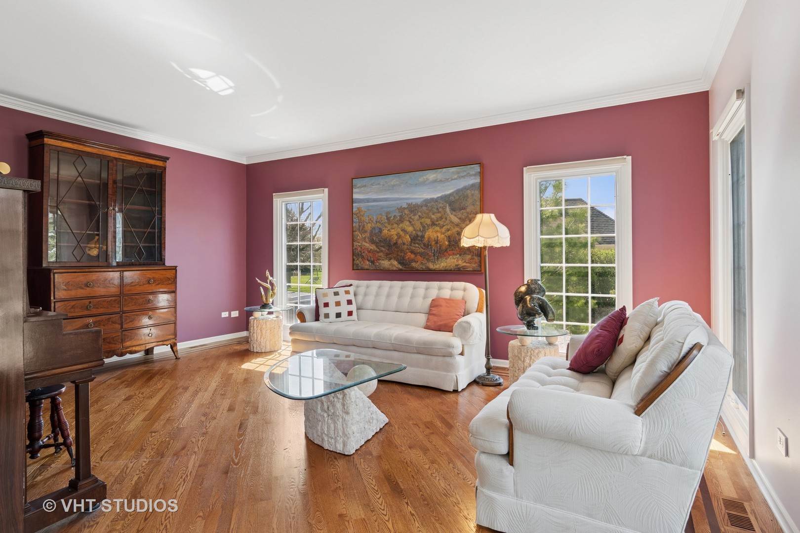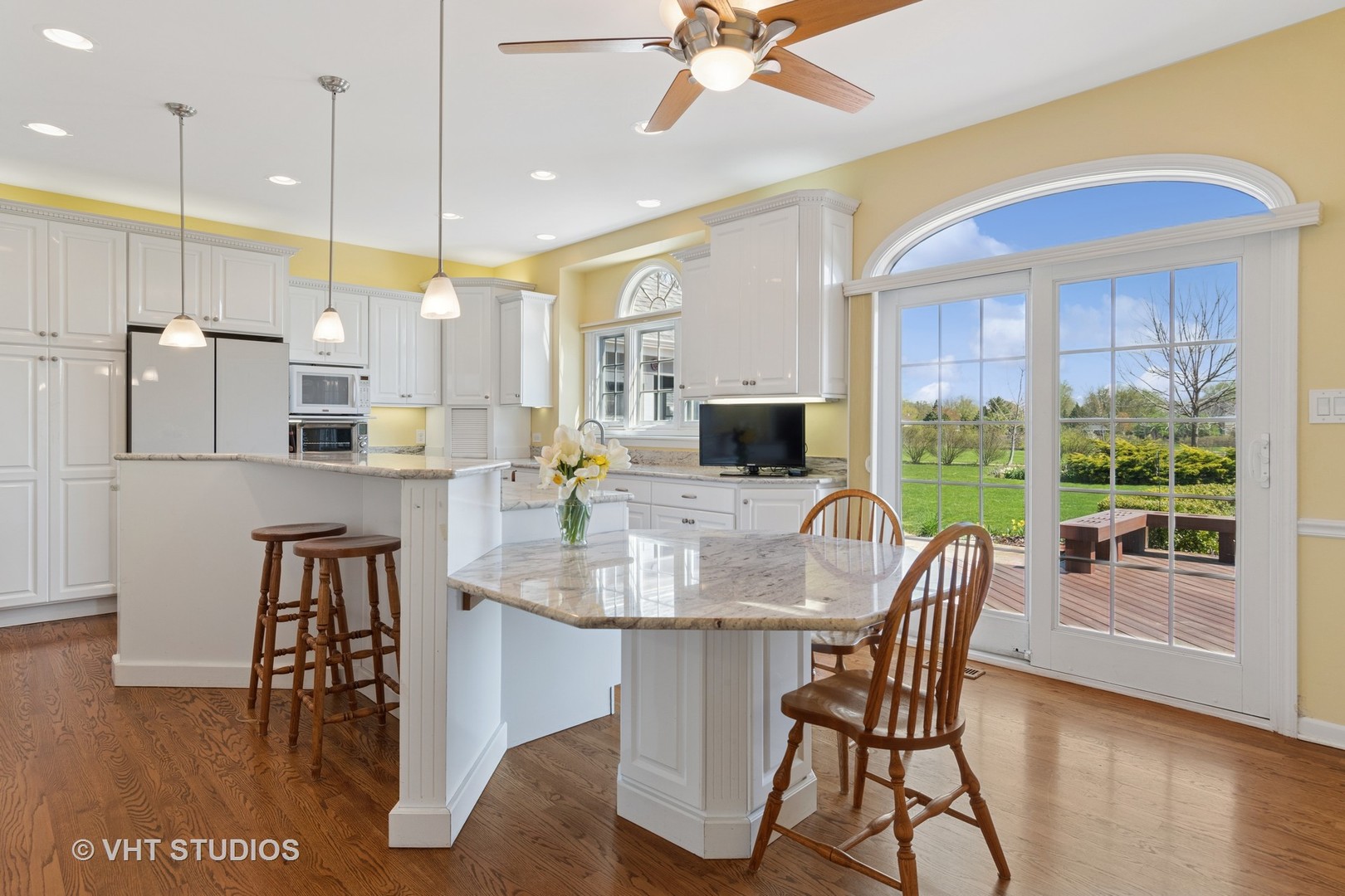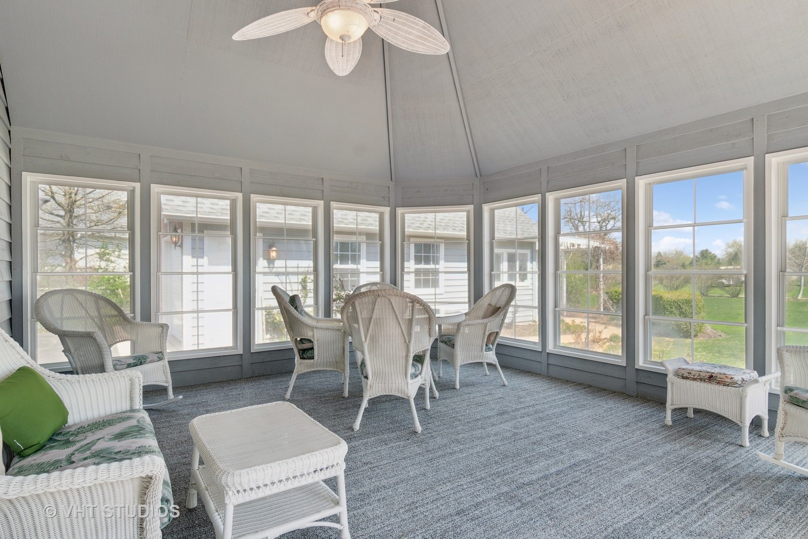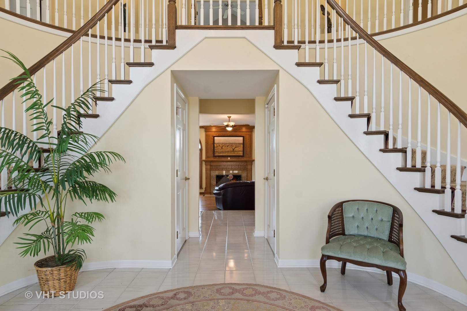 So much to love here! Rare 5 car garage. Stunning property with gorgeous gardens and spectacular views of the golf course. Dramatic front entrance with classic front columns. This impressive property is located in prestigious Tamarack Fairways. This stunning home, on almost an acre of land, offers privacy and tranquility. A dramatic and breathtaking double staircase welcomes you into the sundrenched foyer. This spectacular home has countless design elements that make this home unique and one of a kind…hardwood floors, wainscoting, crown molding, ceiling fans, wet bar, and a one-of-a-kind handwoven Oriental rug, curated just for this home. The enormous sunroom is a sundrenched masterpiece that allows peaceful and serene views of the stunning grounds. Gorgeous hardwood floors! The large family room features a lovely wood trimmed fireplace. The kitchen offers amazing granite counter tops, plentiful white cabinets, walk in pantry, great lighting and great work space. The primary bedroom at the top of the double staircase is a serene and peaceful place to end and start your day. Amazing closet space including an extended closet through the enormous private bath. Separate shower, water closet, dressing area and precious natural light from the wall of windows. The huge second bedroom, has been redesigned to bring the stunning outdoor views to life and offers great closet space. There are 2 additional bedrooms and 2 additional baths on this level. The finished basement adds to the living space in this lovely home. Step outside and into a masterpiece of nature with the stunning grounds, lush gardens, water views, paver walkways. The newer TREX deck is perfect for entertaining with a huge screened in porch adding to the living and entertaining space outside. The 5-car garage has 3 cars attached with a 2-car separate garage (21X29). There is a planting shed and arbor for the avid gardener with plenty of working room. Both garages have epoxy floors with new Polyaspartic coating in the attached garage. The well-maintained home and stunning property are serviced by award winning District 204 schools, including Neuqua HS.