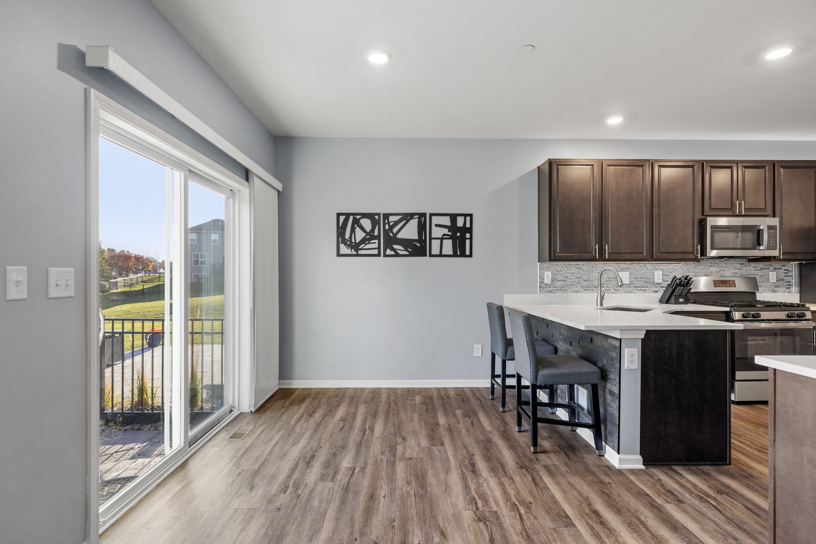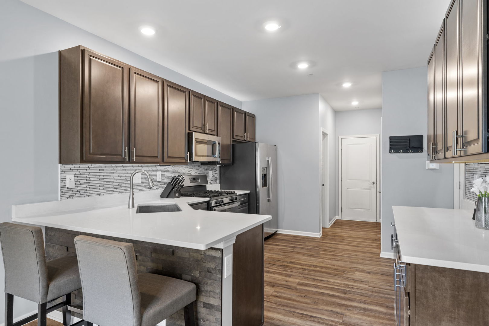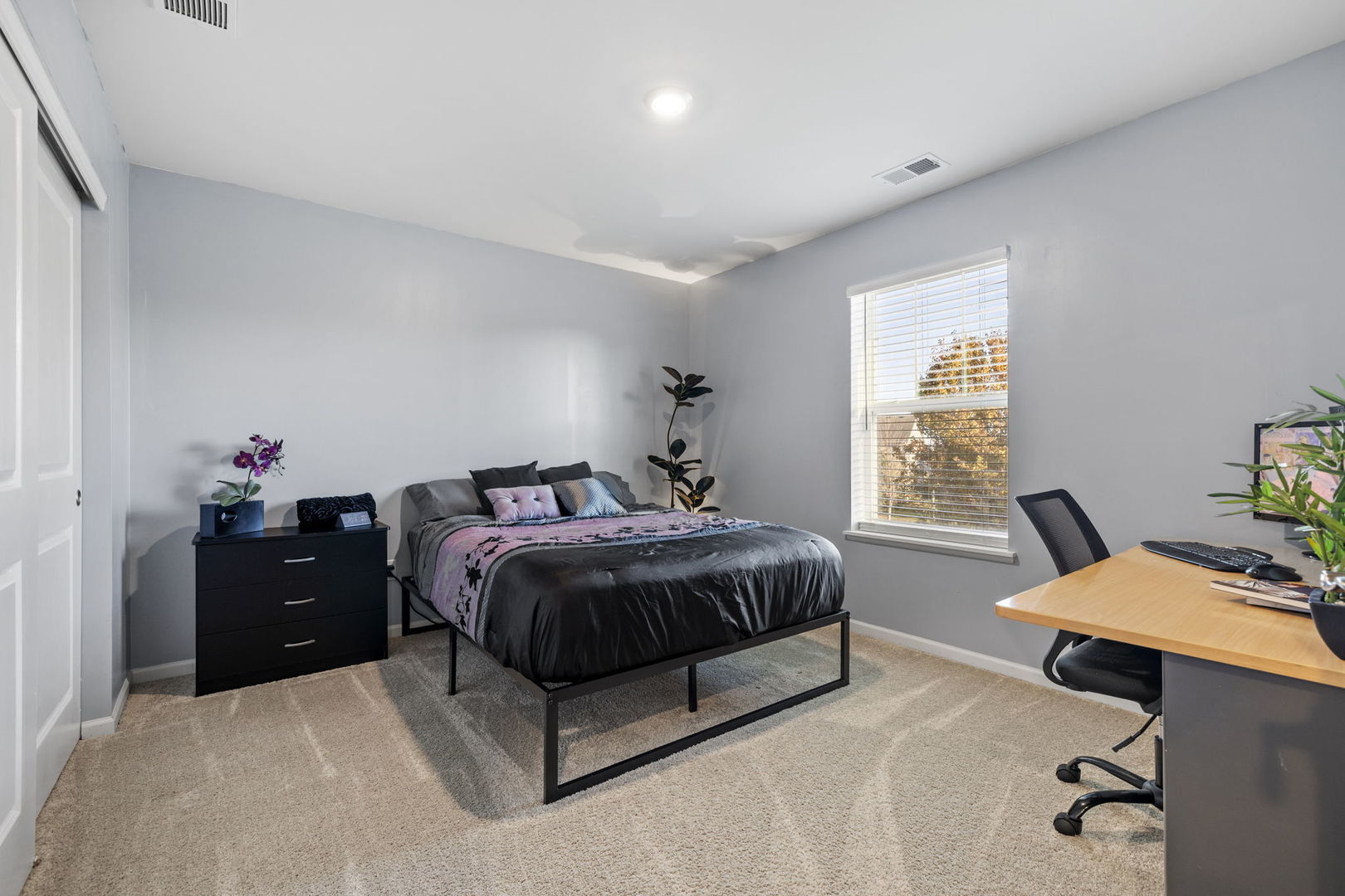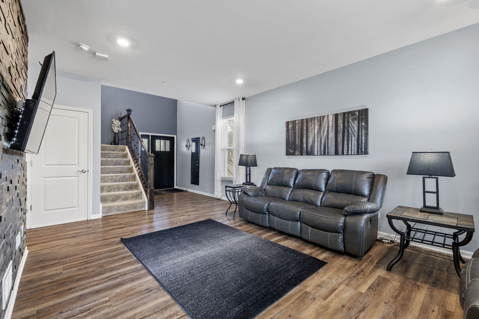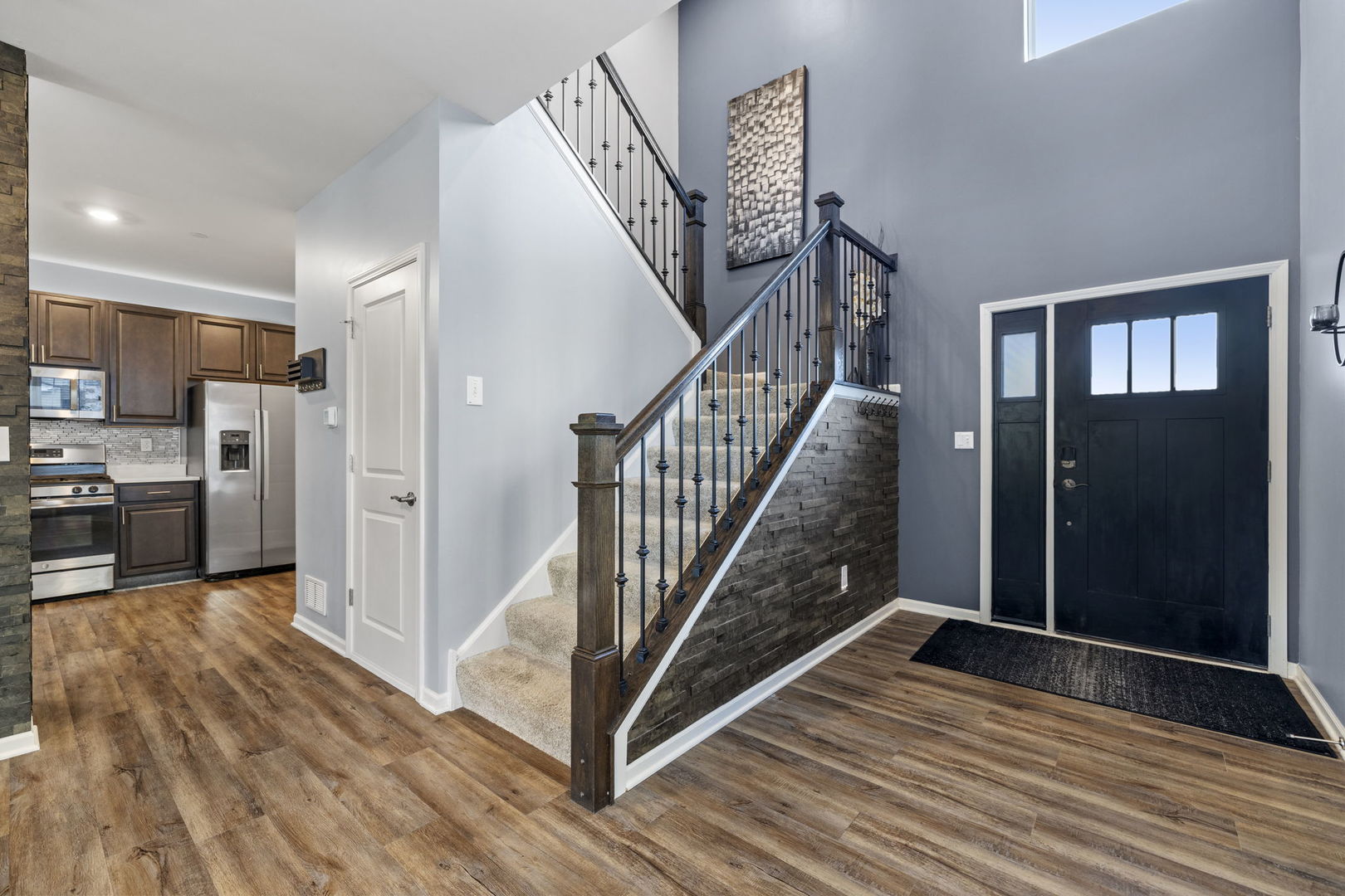 Welcome to this stunning duplex located in the highly desirable Raintree Village community, known for it’s amazing amenities including a pool, clubhouse, parks, scenic and walking paths. From the moment you step inside you’ll appreciate the bright, open layout enhanced by soaring ceilings and upscale selections throughout. The heart of the home is the impressive chef inspired kitchen offering abundant cabinetry, expansive counter space, sleek quartz countertops, stainless steel appliances, and a convenient pantry. The dining area opens seamlessly to the large patio and fully fenced backyard, perfect for grilling or relaxing with your morning coffee. The open concept design makes hosting family and friends effortless.Upstairs, the luxurious primary suite is a true retreat featuring two walk-in closets and a spa like bathroom complete with a designer tiled walk-in shower, sleek and stylish wallpaper surrounding, and dual sink vanity.The additional bedrooms are generously sized with great closet space, and the second floor laundry room keeps everyday living convenient. Bring your ideas to the full basement, offering endless possibilities for added living space, a home gym, or recreation area. Additional upgrades include prairie-style railings with iron spindles, modern two-panel doors and trim, stylish lighting, and full WiFi certification with smart home features such as remote thermostat access, keyless entry, and a Ring video doorbell. This home has everything you are looking for!