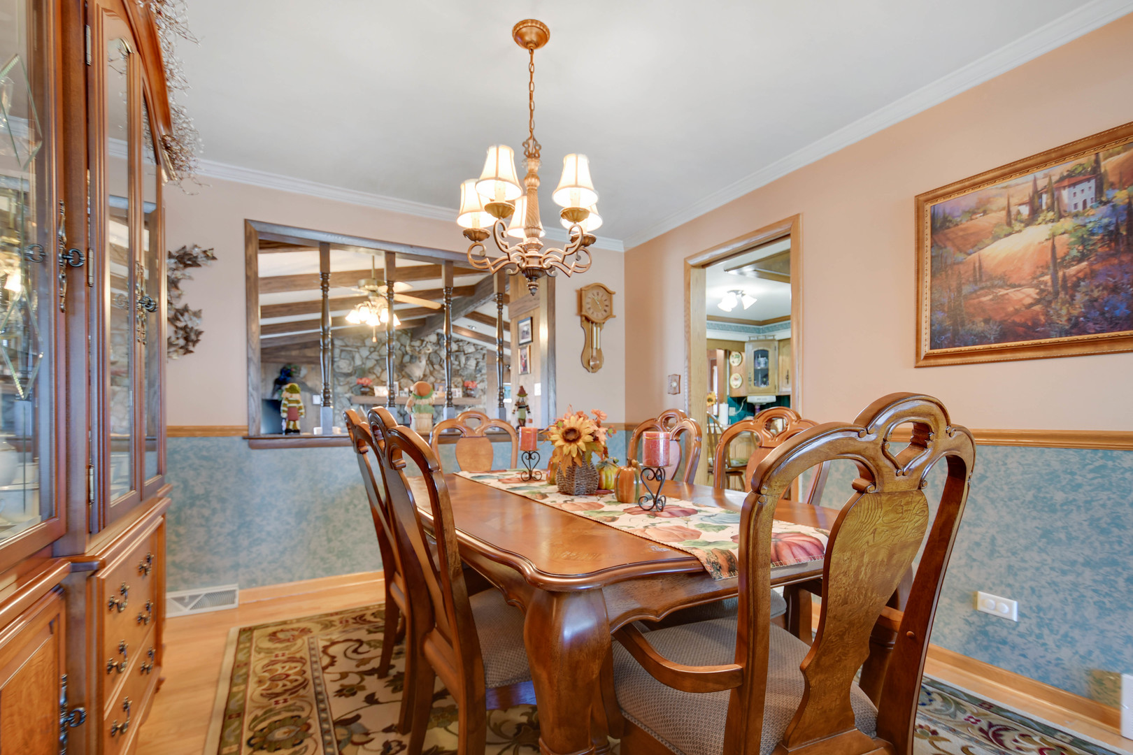 If space matters, this custom expanded split-level offers plenty of room for entertaining, relaxing, and comfortable everyday living. Step inside to a gracious foyer that flows into the open living and dining room combination, featuring beautiful hardwood flooring, custom chair rail, and crown molding. The spacious kitchen provides ample cabinetry, generous counter space, a center island with breakfast bar, a large skylight, and ceramic tile flooring that continues into the adjacent casual dining area. This area opens to a voluminous family room with a cozy fireplace and vaulted ceilings highlighted by architectural ceiling beams. Upstairs, you’ll find three generously sized bedrooms, all with hardwood flooring. The lower level offers a large recreation room, (currently used as a fourth bedroom) and a laundry room with washer and dryer. The fully privacy-fenced backyard is perfect for outdoor entertaining, featuring a large concrete patio and a storage shed for added convenience. Fantastic location-just a short (12-minute walk) to the train and minutes from shopping and restaurants. Schedule your viewing before someone else calls it home!