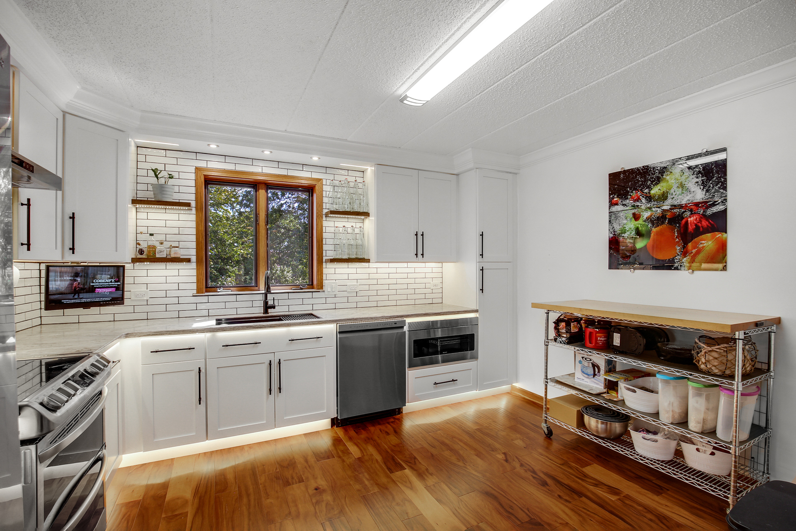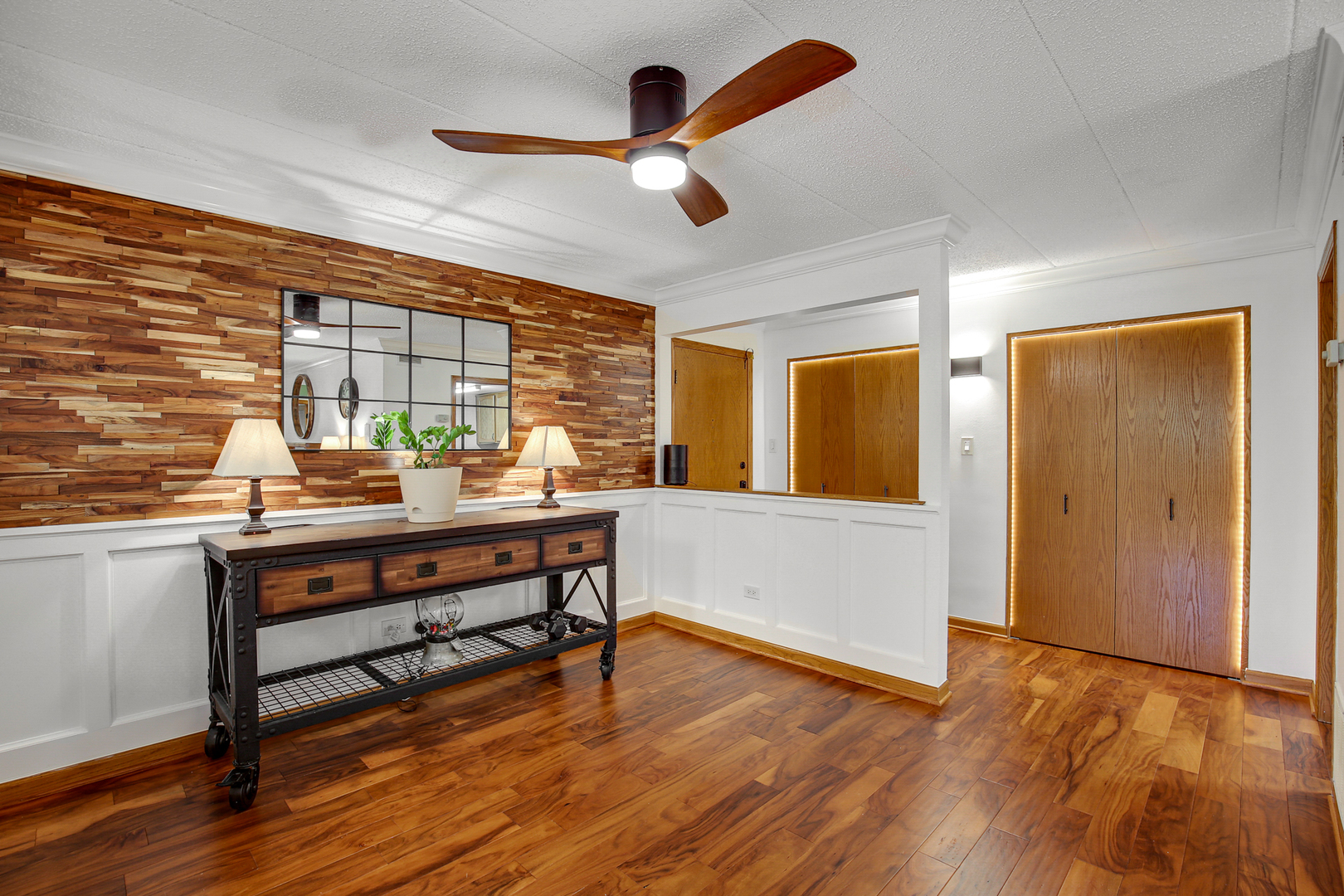 Welcome to your serene retreat tucked away in the woods! This charming 2-bedroom, 2-bath condo boasts approximately 1,200 sq. ft. of comfortable living space in the coveted Hidden Valley II community. **Features:** **Cozy Living Space:** Enjoy the warmth of a wood-burning fireplace, perfect for those chilly evenings. – **Modern Kitchen:** The kitchen is equipped with upgraded all stainless steel appliances, including an oversized exhaust hood and microwave drawer. Custom lighting, Corian countertops, and 36″ upper cabinets provide both style and functionality. – **Convenient Amenities:** A new washer and dryer and fresh flooring in the laundry room make chores a breeze. – **Stylish Interiors:** Engineered hardwood flooring welcomes you in the entry, dining area, and kitchen, complemented by crown molding throughout. The dining room features elegant wainscoting and an accent wall. – **Custom Touches:** Enjoy custom glass doors and remote control ceiling fans in every room for added convenience. – **Safety Features:** The unit comes equipped with new smoke and carbon monoxide detectors with a ten-year battery backup, an in-wall safe, and a fire extinguisher located conveniently in the hall. – **Technology & Security:** Stay secure with an intercom security system for the building, an electronic keypad entry to your unit, and door switches installed on closets with 12-volt LED lighting. A whole house surge protector provides peace of mind. – **Outdoor Retreat:** Relax on your private balcony and enjoy the peaceful surroundings. – **Underground Parking:** Indoor heated parking with fire sprinkler suppression and additional storage in the basement garage area for added convenience. – **Community Amenities:** The Hidden Valley complex is managed by Alliance Property Management and includes waste disposal, hallway maintenance, lawn care, snow removal, and exterior repairs covered by the HOA. **Additional Information:** – A new roof will be replaced by the HOA, already paid for by the current owner and included in the sale. Don’t miss your chance to own this beautifully updated condo in Hidden Valley II! Schedule your viewing today and experience the comfort and tranquility of your new home.