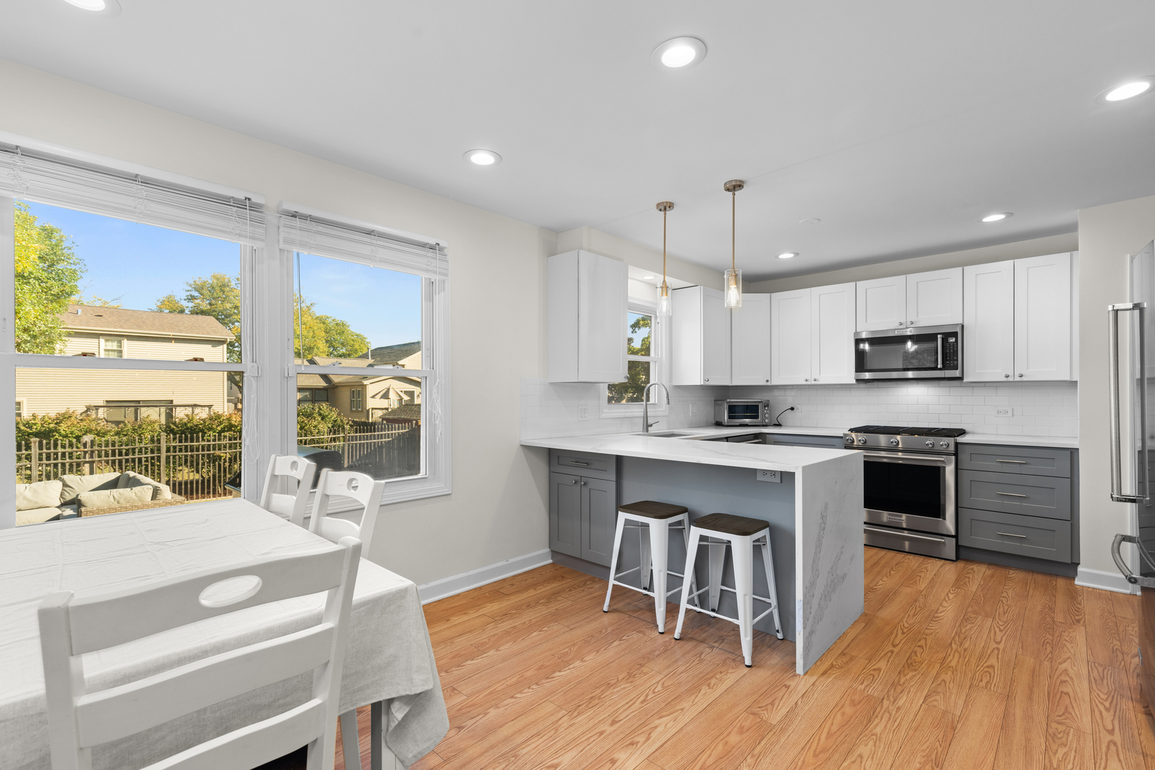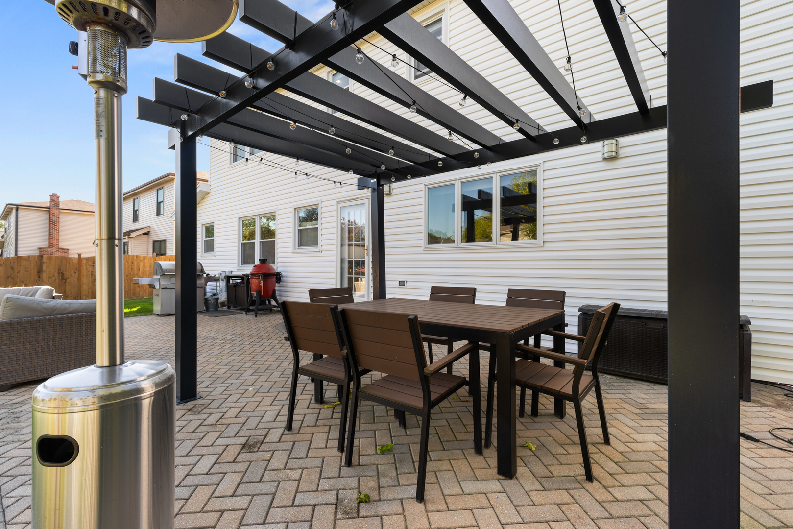 Elegant Living Meets Everyday Comfort! Set in sought-after District 23, and steps from Horizon Park and the Library, this beautifully remodeled colonial combines modern luxury with thoughtful modern design. Recent updates elevate the home’s style and functionality, starting with sleek flooring throughout the first floor and a fully updated kitchen featuring crisp white cabinetry, quartz countertops, and stainless steel appliances-perfect for family meals and entertaining in style. Upstairs, you’ll find four spacious bedrooms, including a primary suite with a walk-in closet. The newly renovated spa-like master bathroom, showcasing fresh tile floors, a tiled wall, curb-less walk-in shower with glass surround, and a double vanity. The additional bathrooms have also been completely redone with high end modern finishes. The expansive finished basement provides flexible space for a den, playroom, and media area. It has a room that can be used as an office, gym, bedroom, or whatever you need! Plus there is a large storage area and a sump pump with battery backup that ensures peace of mind. Outdoors, the large fenced yard is now enhanced with a paver patio and pergola, creating a versatile space for family gatherings, grilling, and play. This home is the perfect blend of sophistication and everyday comfort-designed for modern living and lasting memories. See it today before it’s gone!