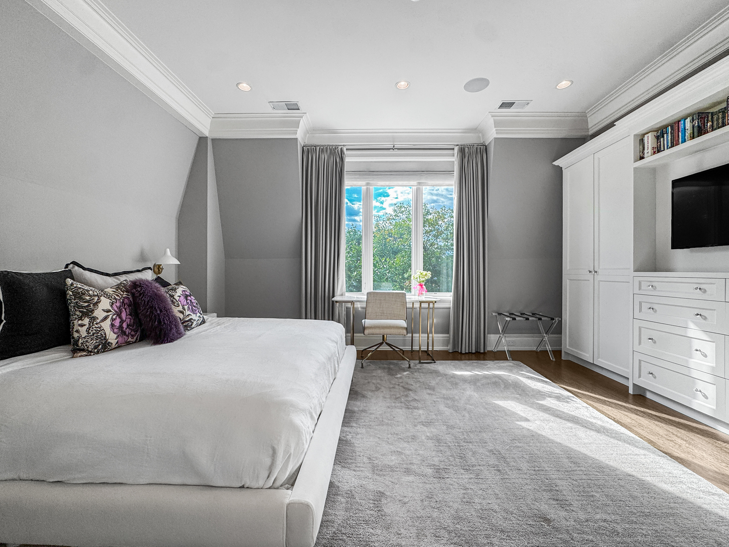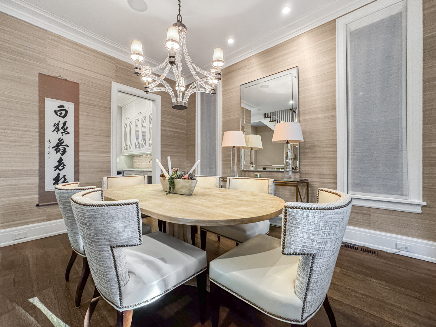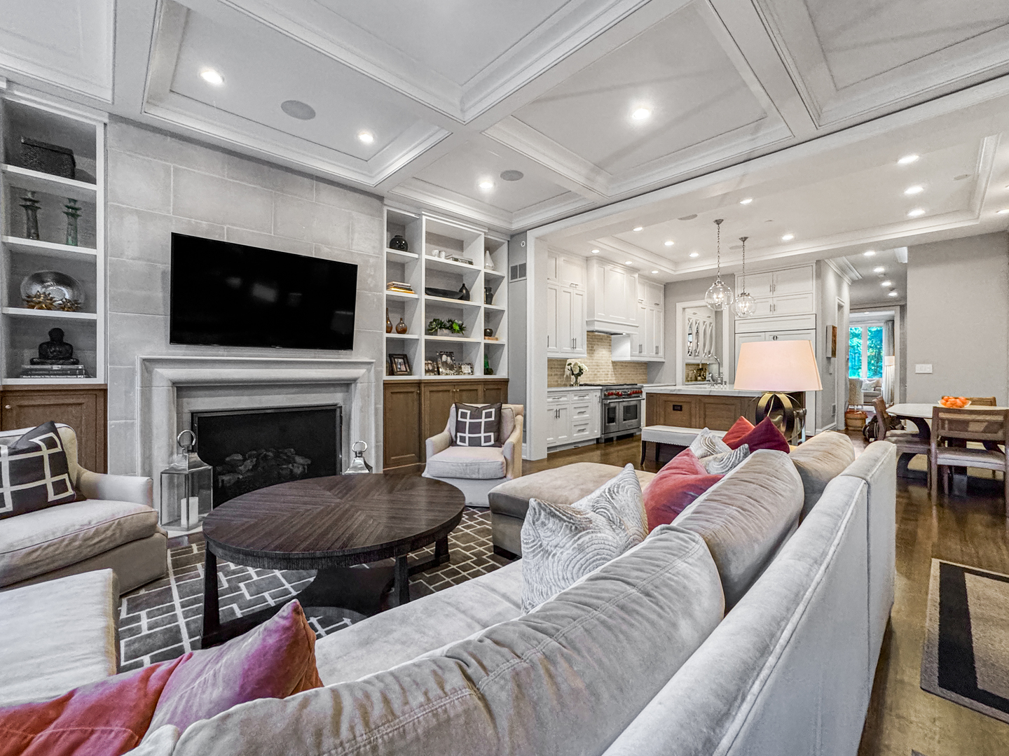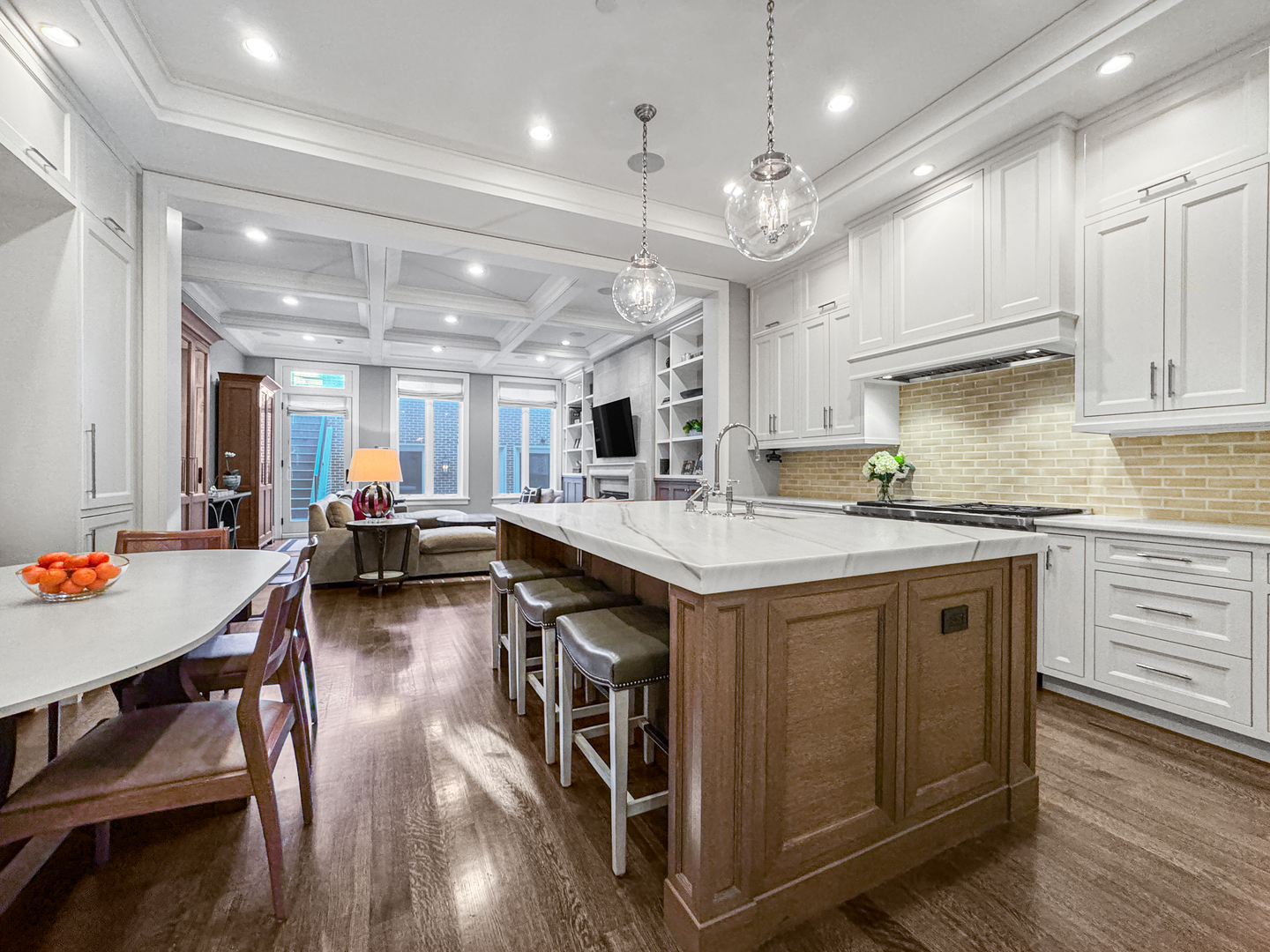 This exceptional 6,200+ square-foot, six-bedroom home on coveted Burling Street offers the best of city living. Behind its classic limestone facade lies sophisticated, high-end finishes, a four-stop passenger elevator, incredible outdoor space, and a heated, attached 2+ car garage. The main level is designed for entertaining, featuring 4″ rift-sawn oak floors, elegant crown molding, two fireplaces, custom window treatments (including motorized shades), and built-in speakers. The kitchen and butler’s pantry are outfitted with premium Sub-Zero, Wolf, and Bosch appliances, a large island with breakfast bar seating, and a built-in banquette. The adjoining family room includes a coffered ceiling and a fireplace flanked by custom cabinetry, seamlessly blending with the kitchen’s design. Each of the six bedrooms includes its own full bath, complemented by two additional powder rooms for guests. Bath fixtures include top-tier brands such as Kallista. The luxurious primary suite features a spacious bedroom with a custom entertainment center, dual walk-in closets, and a spa-inspired bath with dual vanities, a steam shower, and a freestanding tub. Additional highlights include professionally organized closets throughout, two laundry centers, integrated baby gates, a mudroom, a three-zone HVAC system, radiant heat in the home, garage, and front steps, plus a Generac generator for added peace of mind. Ideally located, this home is walking distance to nearby popular restaurants, Steppenwolf Theatre, the Apple Store, Whole Foods, the Red Line, and top-rated public and private schools, including Latin, Parker, Catherine Cook, and Lincoln Park High School. Homes with this combination of quality, size, and location rarely come to market-don’t miss the opportunity to make it yours.