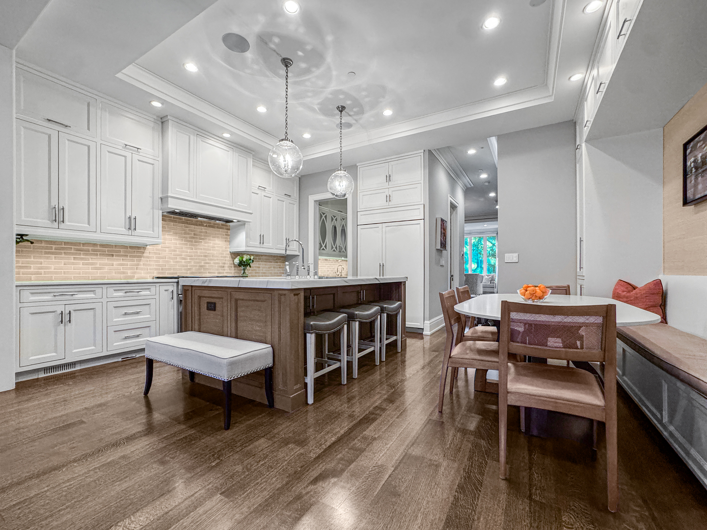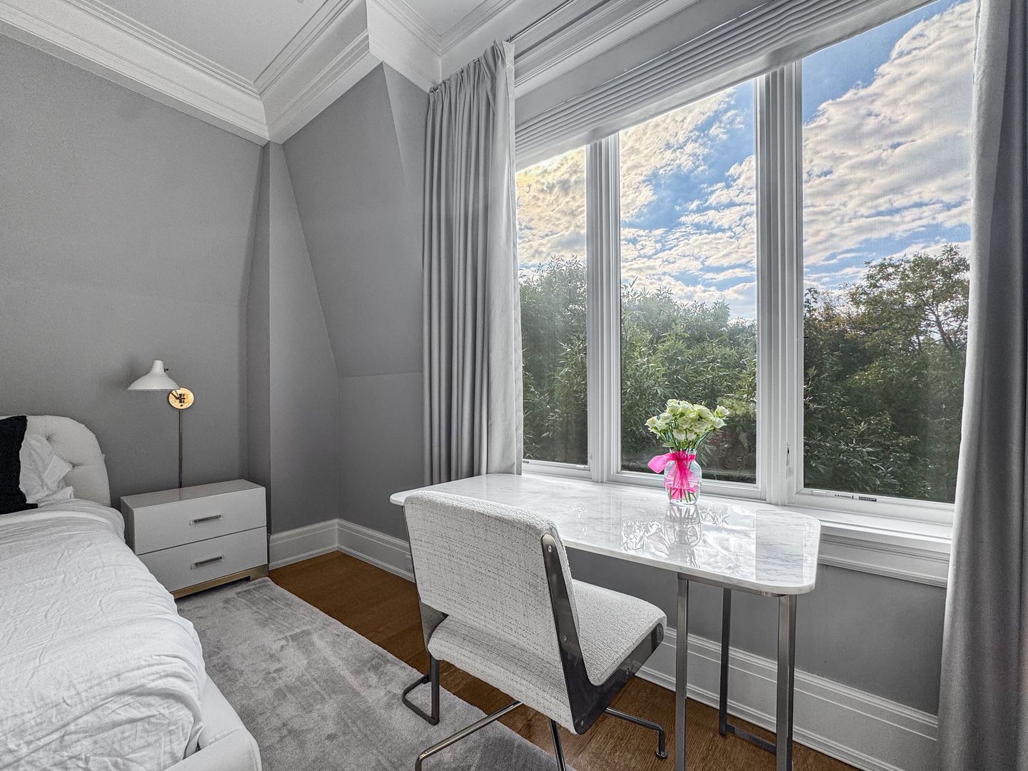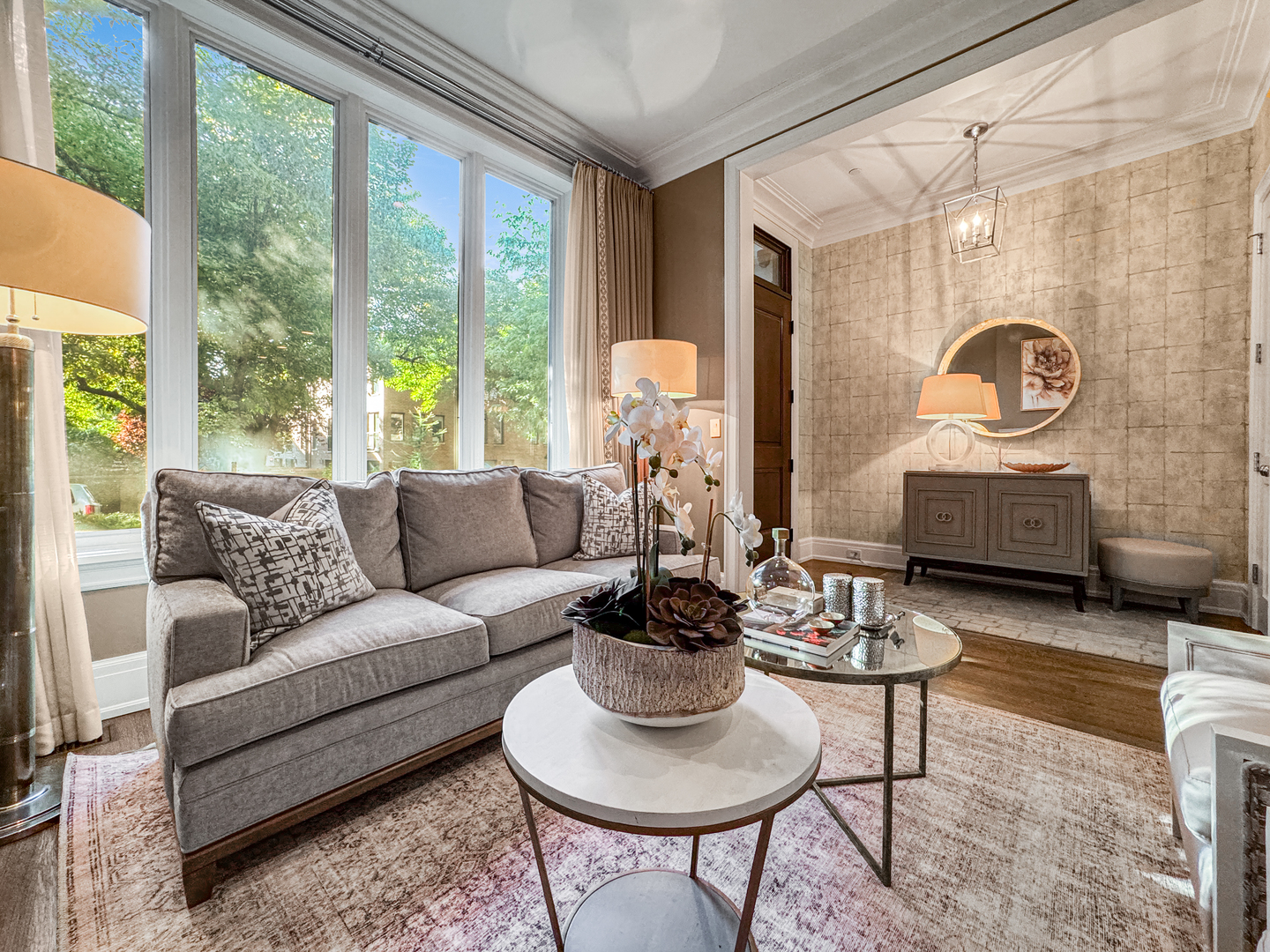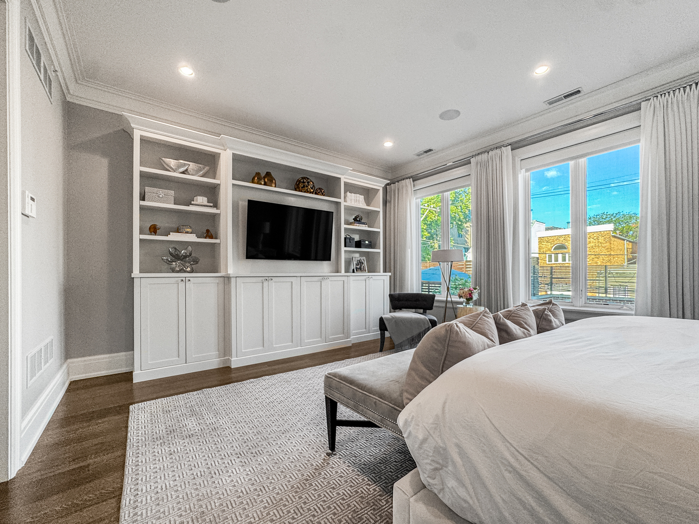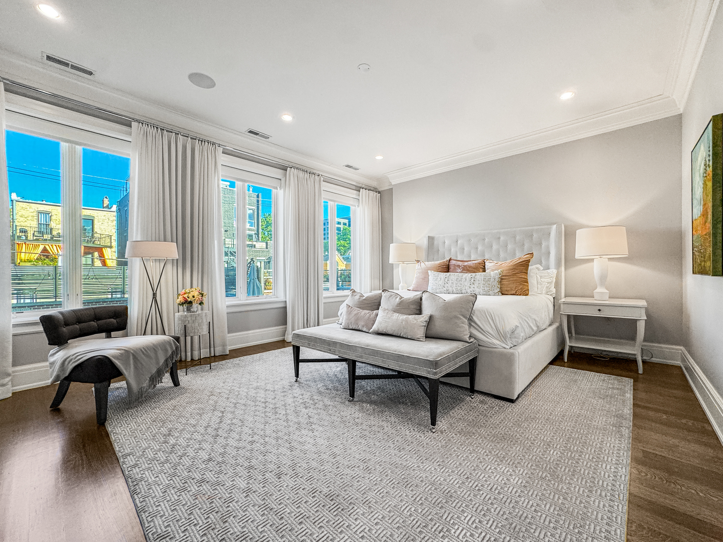This exceptional 6,200+ square-foot, six-bedroom home on coveted Burling Street offers the best of city living. Behind its classic limestone facade lies sophisticated, high-end finishes, a four-stop passenger elevator, incredible outdoor space, and a heated, attached 2+ car garage. The main level is designed for entertaining, featuring 4″ rift-sawn oak floors, elegant crown molding, two fireplaces, custom window treatments (including motorized shades), and built-in speakers. The kitchen and butler’s pantry are outfitted with premium Sub-Zero, Wolf, and Bosch appliances, a large island with breakfast bar seating, and a built-in banquette. The adjoining family room includes a coffered ceiling and a fireplace flanked by custom cabinetry, seamlessly blending with the kitchen’s design. Each of the six bedrooms includes its own full bath, complemented by two additional powder rooms for guests. Bath fixtures include top-tier brands such as Kallista. The luxurious primary suite features a spacious bedroom with a custom entertainment center, dual walk-in closets, and a spa-inspired bath with dual vanities, a steam shower, and a freestanding tub. Additional highlights include professionally organized closets throughout, two laundry centers, integrated baby gates, a mudroom, a three-zone HVAC system, radiant heat in the home, garage, and front steps, plus a Generac generator for added peace of mind. Ideally located, this home is walking distance to nearby popular restaurants, Steppenwolf Theatre, the Apple Store, Whole Foods, the Red Line, and top-rated public and private schools, including Latin, Parker, Catherine Cook, and Lincoln Park High School. Homes with this combination of quality, size, and location rarely come to market-don’t miss the opportunity to make it yours.