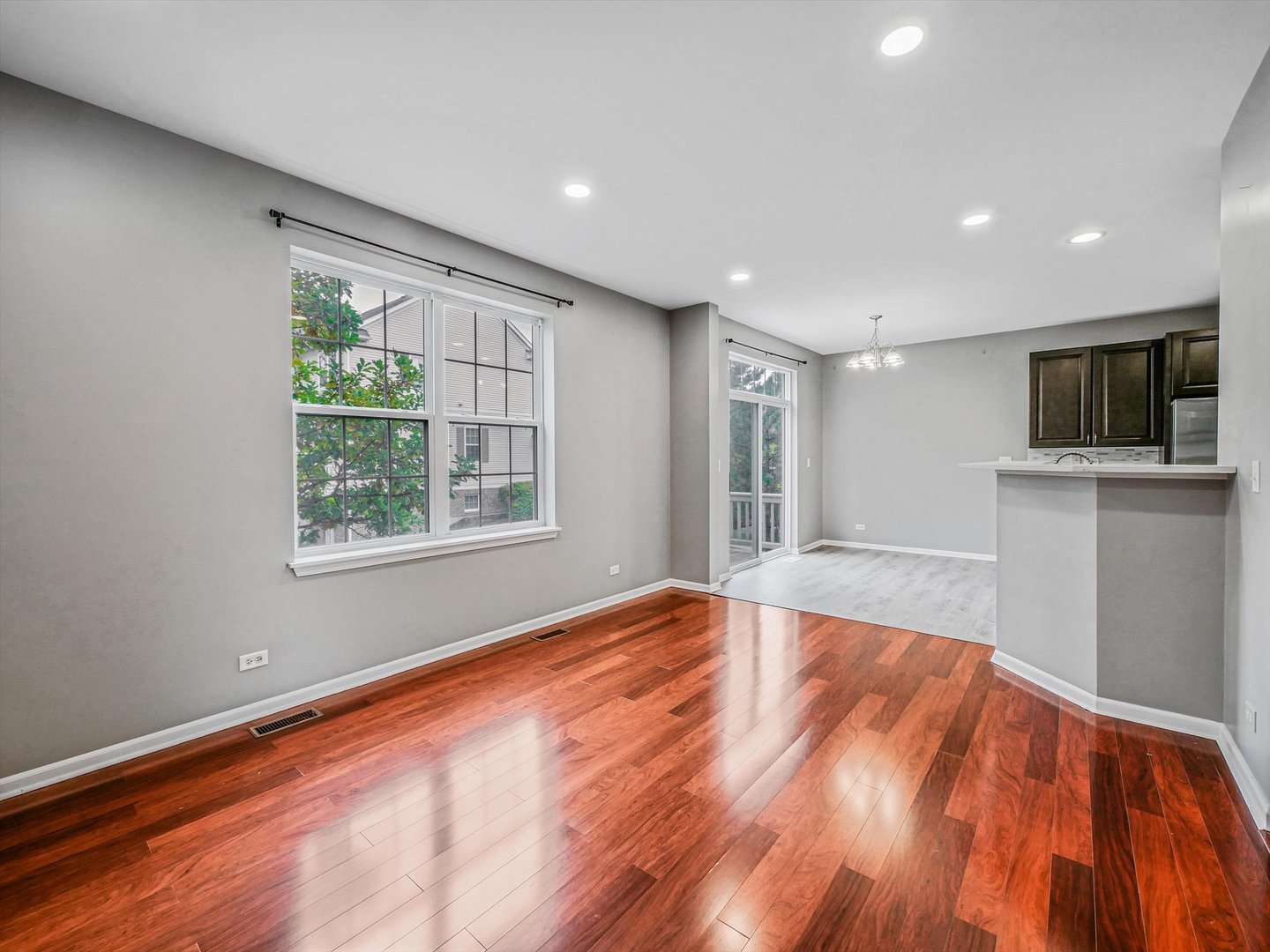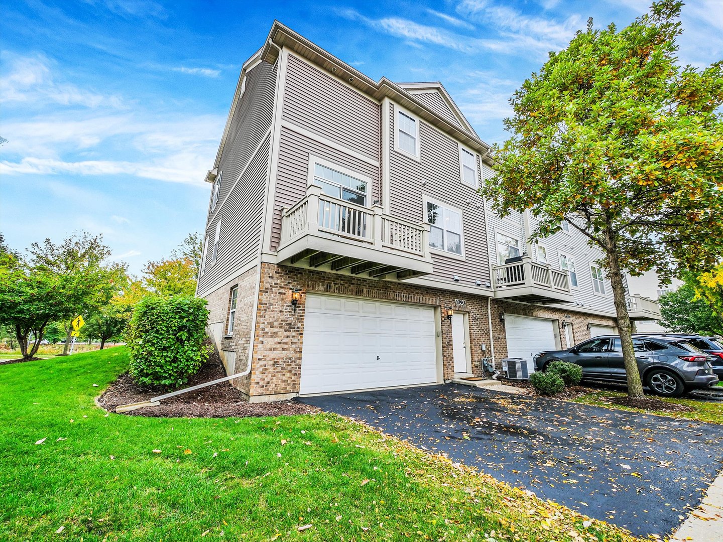 Spacious 3-bedroom, 3.5-bath, 3-level townhome offering over 2,300 sq. ft. of living space. This end-unit is ideally positioned facing the pond, providing beautiful year-round views. Bright main level features 9′ ceilings, large living room, an updated kitchen, and dining area with access to one of two balconies. The upper level includes a generous primary suite with private bath, a secondary bedroom, and a versatile loft. The finished lower level adds a 3rd bedroom with en-suite full bath – perfect for guests or related living. Attached 2-car garage. Enjoy unbeatable convenience just minutes to Costco, Stratford Square, parks, bike trails, and the Village Recreation Center. Easy access to I-355. Walk to Fountains Park District, fitness center, and nearby dining. Truly move-in ready – schedule your showing today!