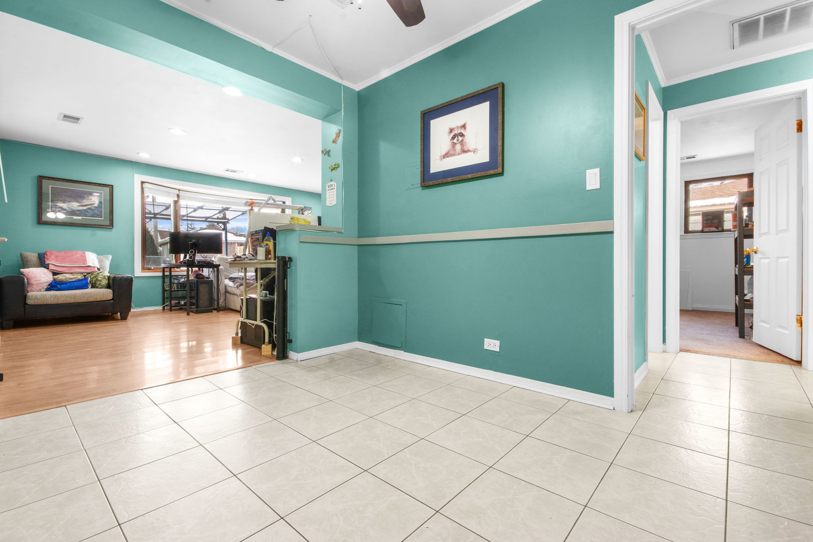 Charming brick ranch in a prime location near the heart of Des Plaines and highly desirable Villas neighborhood! This inviting two bedroom one and a half bath sits on a quaint street less than a mile from downtown and within walking distance to local schools and Prarie Lake Community Center. Inside you will find an open, airy and light-filled layout that feels both comfortable and welcoming. Enjoy the enclosed porch-perfect coffee or relaxing evenings- along with a beautiful fully fenced yard ideal for entertaining, gardening or pets. A detached garage adds convenience and storage. This home offers the perfect blend of charm walkability and location -do not miss the opportunity to make it yours!