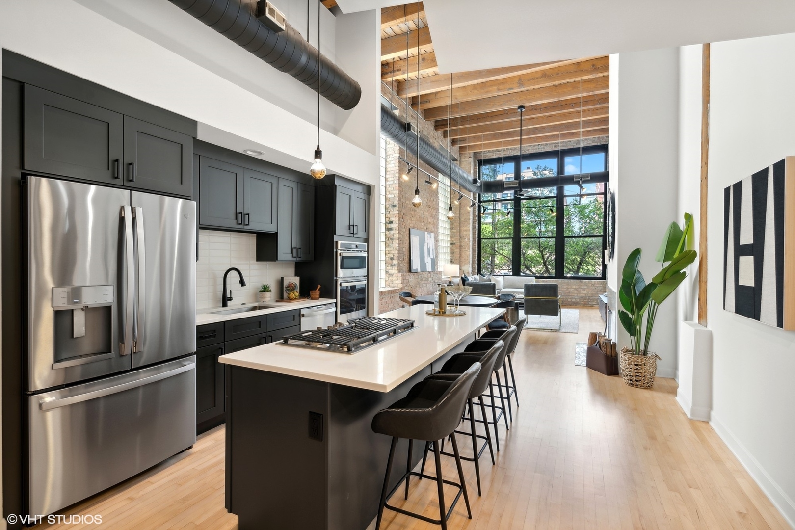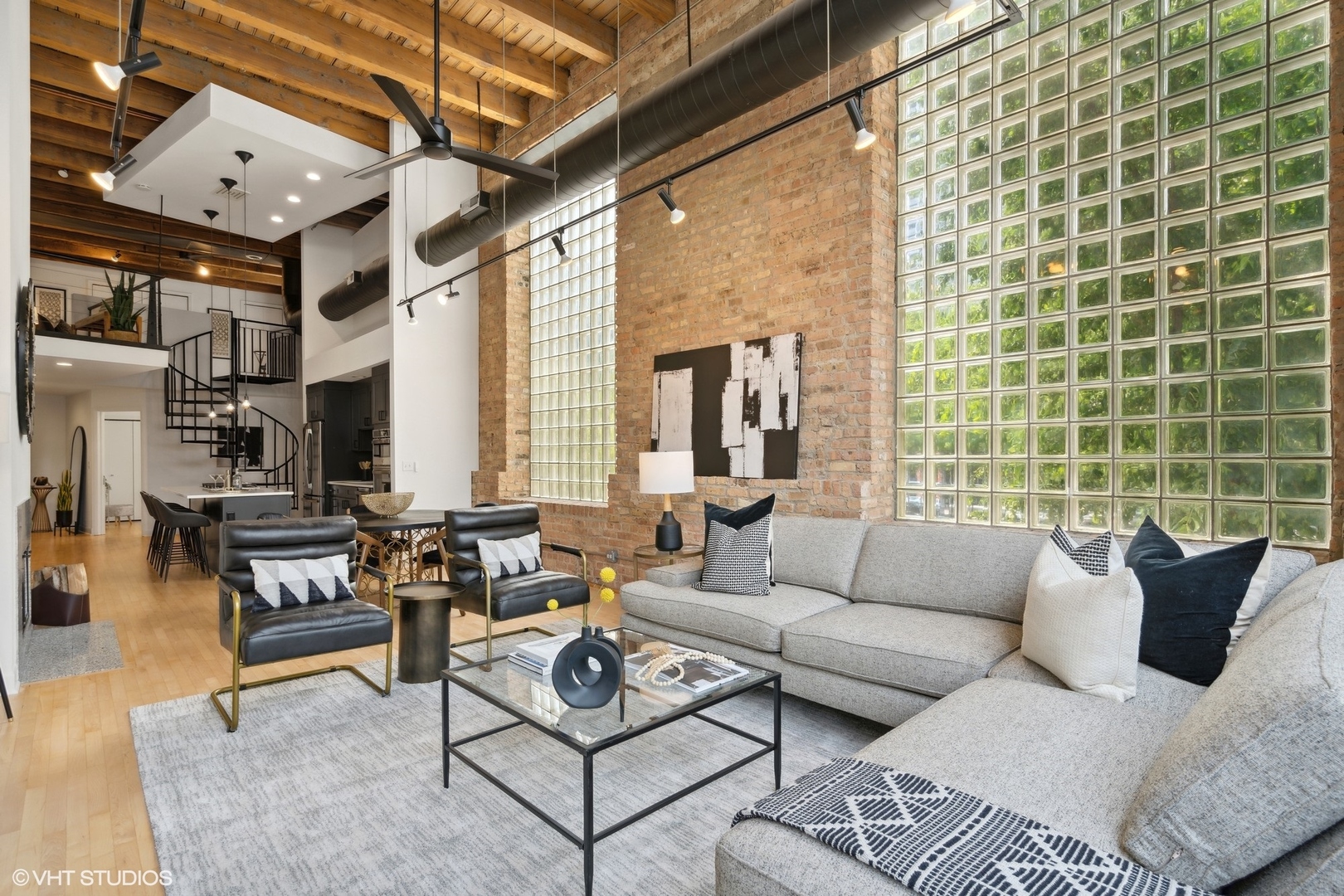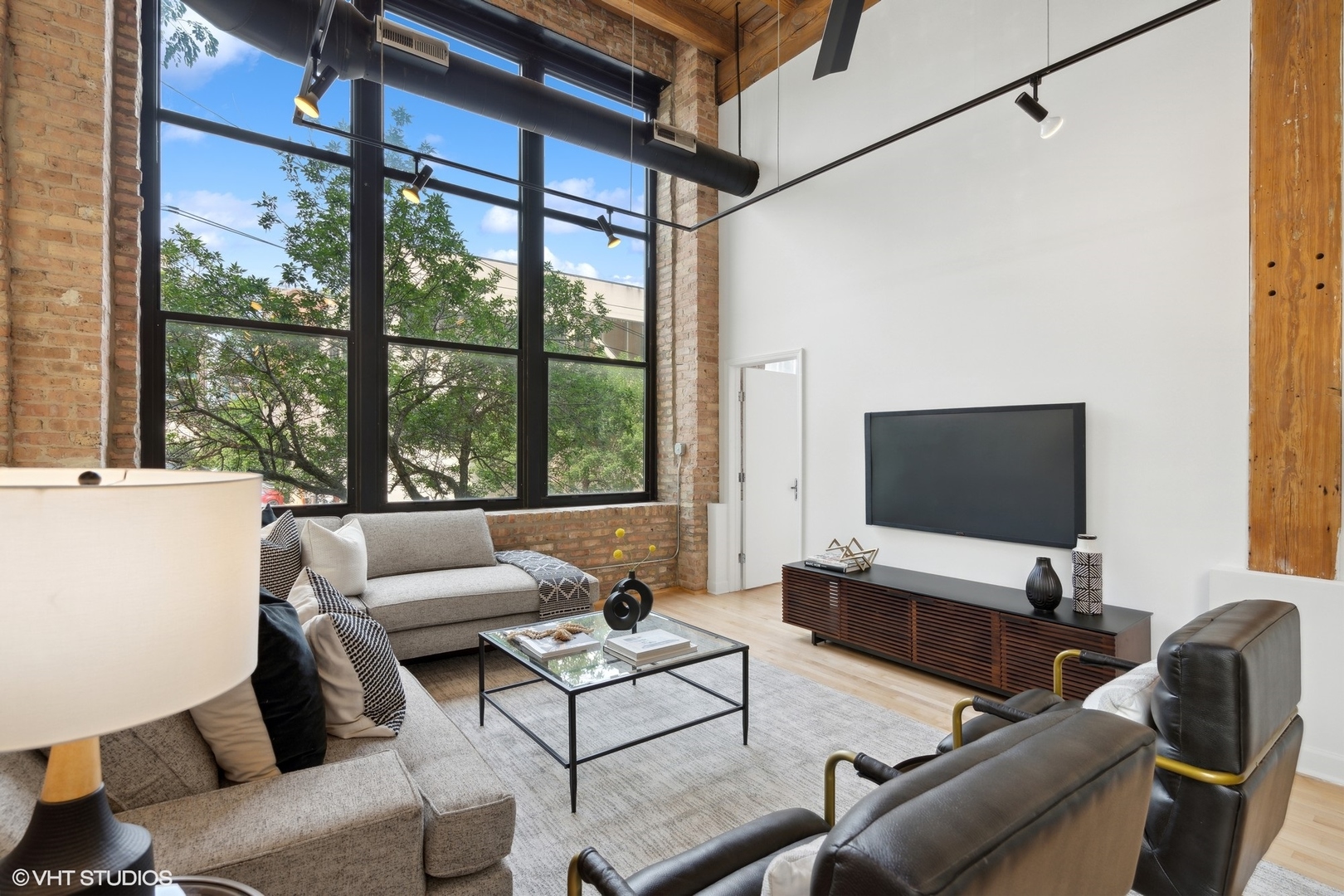 Stylish 3BR/3BA loft in boutique elevator building located in the heart of West Loop and Skinner School District. This amazing 2,100sf timber loft with exposed brick was newly renovated and features two levels of living space, soaring 20 foot ceilings, near floor-to-ceiling windows with extraordinary natural sunlight throughout. Brand new kitchen features new shaker style cabinetry, matte black faucet and pulls, stainless steel appliances, and quartz countertops. Massive living/dining room with newly refinished hardwood flooring and wood burning fireplace. Huge primary bedroom with soaring ceilings, large walk-in closet with custom organizers, & en-suite fully remodeled bathroom featuring chic greige vanity and quartzite countertops. 2nd bedroom on main level with full bathroom newly remodeled just across the hall. Lofted 3rd bedroom on 2nd floor with additional full bathroom. In-unit washer/dryer, private oversized storage in basement (18’x18′), common roof top deck with shared grills, 1 attached garage parking space included in the price. Ideally located just a quick stroll to Greek Town, Randolph St, Soho House, Whole Foods, Target, Marianos etc with easy access to CTA Blue Line, Metra and all major highways. Enjoy the convenient lifestyle of this highly sought after vibrant neighborhood in the heart of the West Loop with some of the best nightlife and dining this city has to offer!
