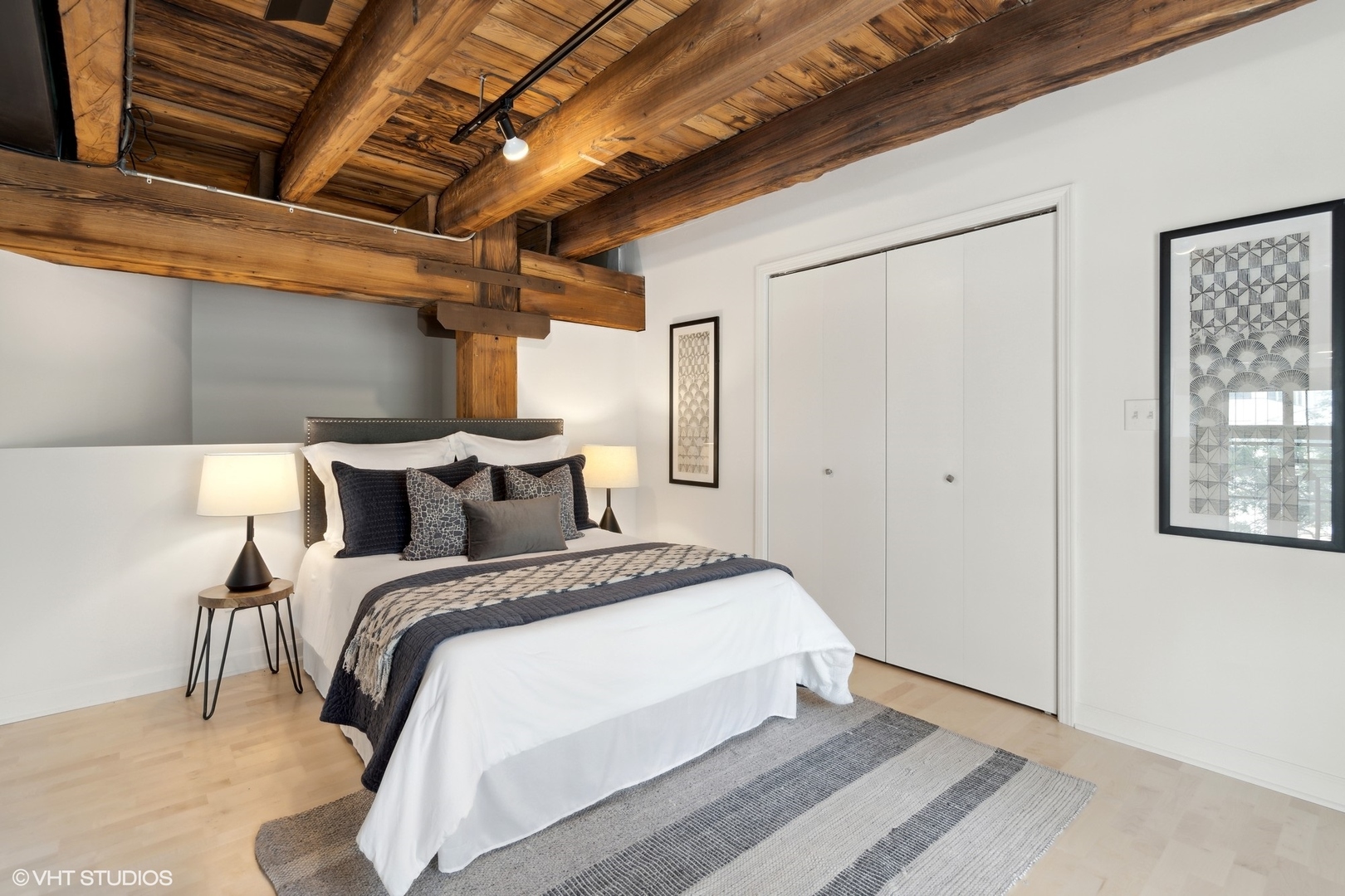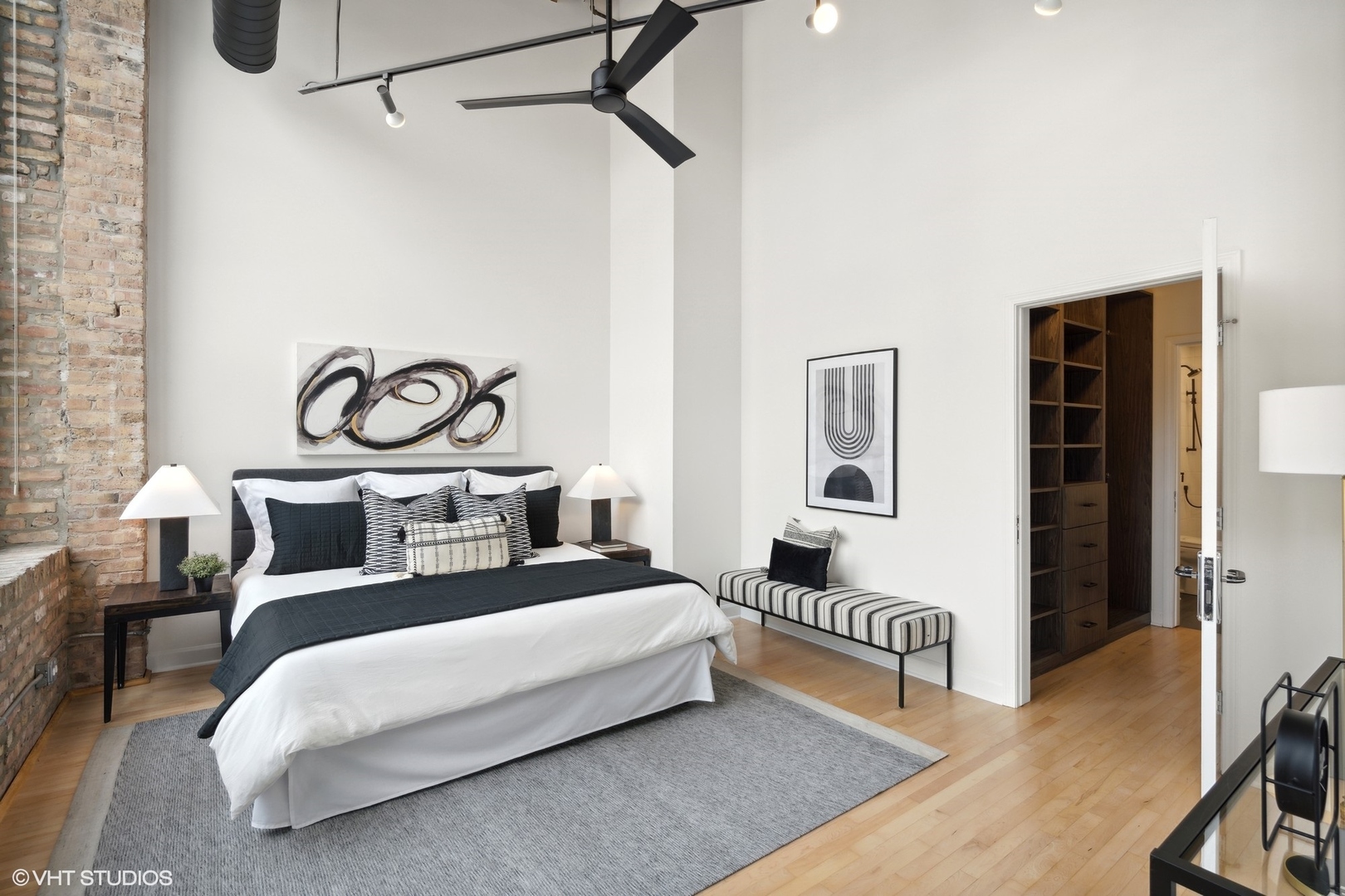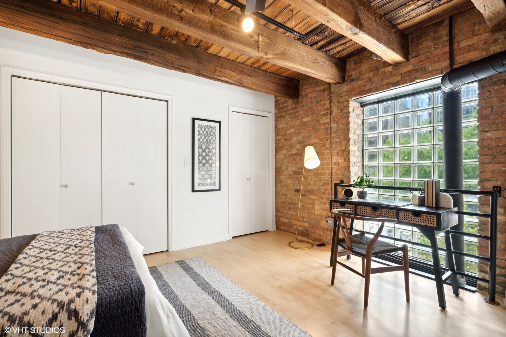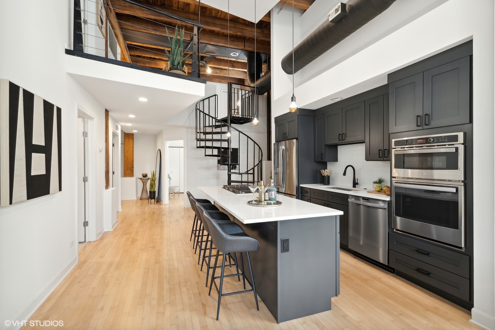Stylish 3BR/3BA loft in boutique elevator building located in the heart of West Loop and Skinner School District. This amazing 2,100sf timber loft with exposed brick was newly renovated and features two levels of living space, soaring 20 foot ceilings, near floor-to-ceiling windows with extraordinary natural sunlight throughout. Brand new kitchen features new shaker style cabinetry, matte black faucet and pulls, stainless steel appliances, and quartz countertops. Massive living/dining room with newly refinished hardwood flooring and wood burning fireplace. Huge primary bedroom with soaring ceilings, large walk-in closet with custom organizers, & en-suite fully remodeled bathroom featuring chic greige vanity and quartzite countertops. 2nd bedroom on main level with full bathroom newly remodeled just across the hall. Lofted 3rd bedroom on 2nd floor with additional full bathroom. In-unit washer/dryer, private oversized storage in basement (18’x18′), common roof top deck with shared grills, 1 attached garage parking space included in the price. Ideally located just a quick stroll to Greek Town, Randolph St, Soho House, Whole Foods, Target, Marianos etc with easy access to CTA Blue Line, Metra and all major highways. Enjoy the convenient lifestyle of this highly sought after vibrant neighborhood in the heart of the West Loop with some of the best nightlife and dining this city has to offer!
