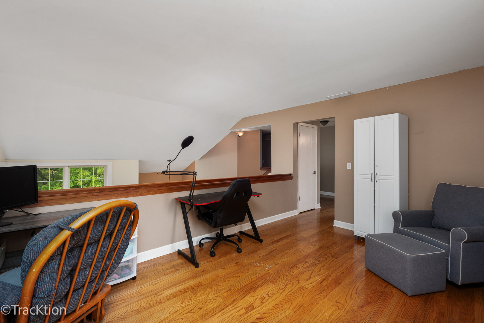 Welcome to this nice open-concept two-story home featuring a grand entryway that flows from a tiled foyer into a sun-filled living room with soaring vaulted ceilings and hardwood floors. Relax and unwind in this inviting space surrounded by architectural nooks and large windows. The formal dining room opens to a Tuscan-inspired kitchen with arched entryways, stainless steel appliances, and an eat-in area overlooking the family room through a beautiful arched pass-through. Enjoy cozy evenings by the corner fireplace or step through the sliding glass doors to a three-season room that leads to a patio and fenced backyard, complete with dual side gates, a dog run, and a storage shed conveniently located off the garage. The open staircase leads to a spacious loft overlooking the main living area, perfect for an office, playroom, or potential fourth bedroom. The primary suite features a vaulted ceiling with fan, walk-in closet, and dual vanity bath. Two additional bedrooms, each with ceiling fans, share a full hall bath. The finished basement offers wide-open bonus space and ample storage, boosting total living area to over 2,500 sq. ft.! Convenient first-floor laundry/mudroom and attached two-car garage complete this spacious home, ideally located near parks, shopping, and commuter routes. Live here and make it a wonderful life!