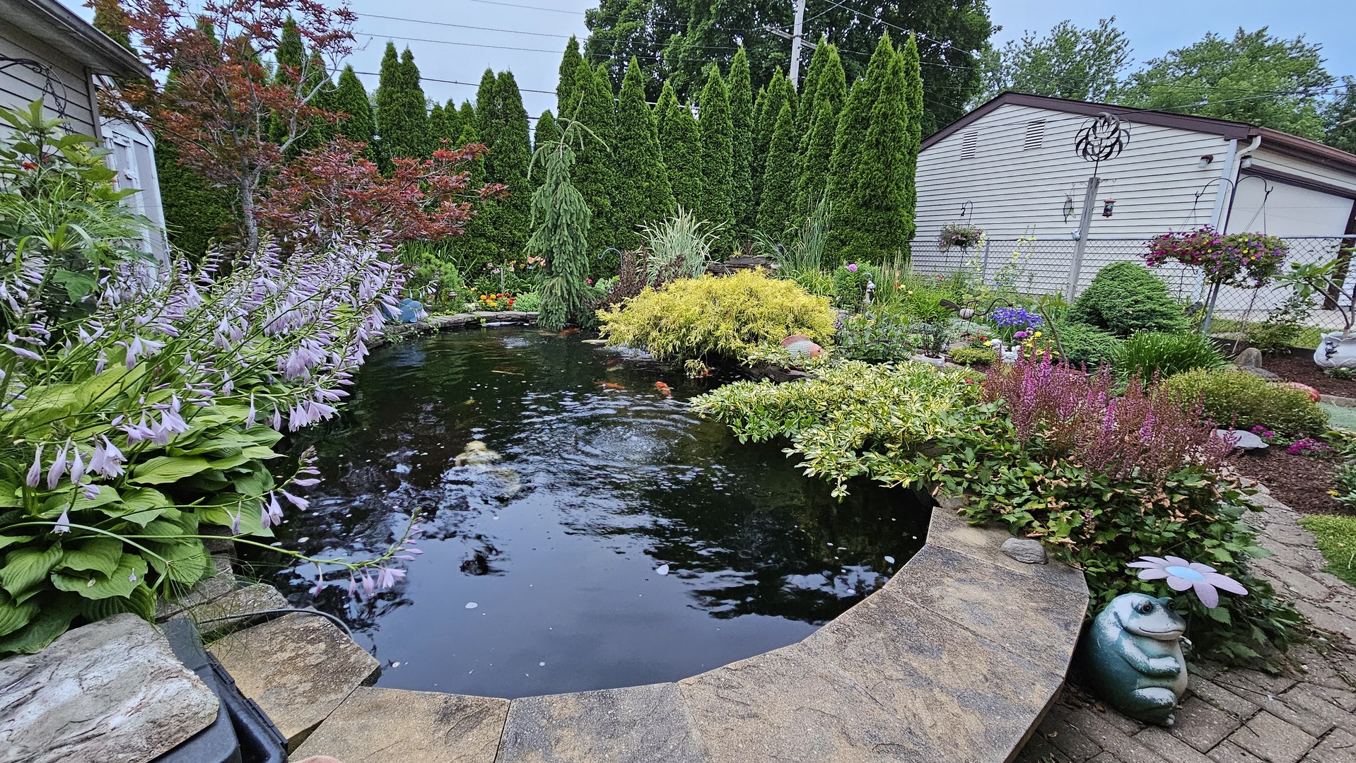 110 Elm offers easy everyday living AND a backyard sanctuary you won’t want anyone to talk about until after you’ve seen it. Inside, the home welcomes you with a sun-filled living room, a large picture window, and a wood-burning stove that adds warmth and charm. The kitchen provides abundant cherry-stained cabinets, full appliances, and a spacious dining area perfect for real gatherings. Three comfortable bedrooms with generous closets sit just steps from the hall bath, with convenient in-home laundry and a detached garage completing the layout. The real magic happens outside. The backyard unfolds into a serene retreat featuring a one-of-a-kind, professionally designed Koi pond system-truly unlike anything else in the area. Surrounded by lush plantings, a winding paver path, a greenhouse, and two pergolas set on an impressive paver patio, this space feels like a hidden getaway carved into everyday life. A charming home in front. A private escape in back. Come experience it for yourself before the secret gets out!