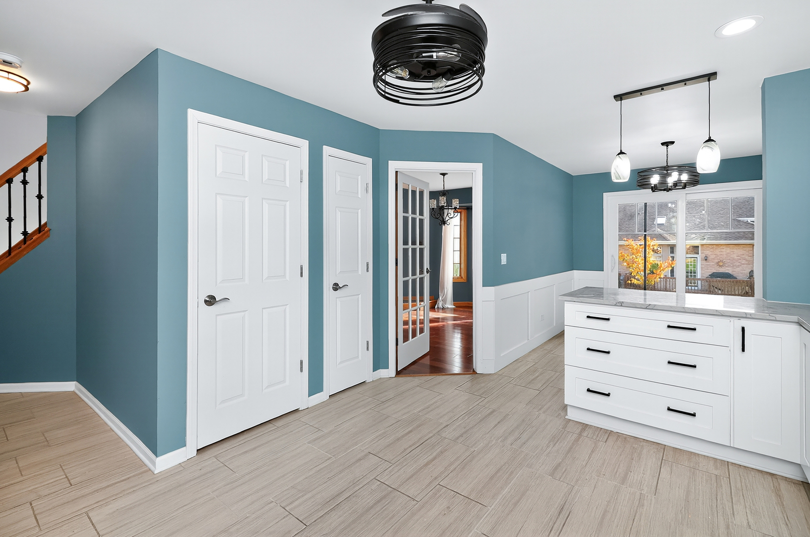 Exceptional 3-bedroom townhome with versatile loft, 3.5 baths, finished lower level, and attached 2-car garage in sought-after Lemont! This meticulously cared-for home welcomes you with dramatic high ceilings and gleaming hardwood floors throughout the main living area. Freshly painted interiors complement the inviting living room, anchored by a gas fireplace framed with a custom-crafted wood mantel. The adjacent dining space is filled with natural light, creating the perfect gathering spot. The 2023 renovated kitchen is a chef’s dream, ceramic tile floors, stunning quartzite countertops, and stainless steel appliances paired with modern conveniences including a garbage disposal. Storage is abundant with an oversized walk-in pantry plus an additional pantry closet. Enjoy casual meals in the eat-in area before stepping out to your private concrete patio through a brand new sliding door installed in 2024. The main level also offers an updated powder room (2023) and convenient direct access to the garage. The upper level showcases a flexible loft space ideal for a home office, playroom, or lounge, along with three generous bedrooms. The primary retreat boasts a custom-designed walk-in closet and a 2022-renovated en-suite bath featuring designer tile work in a luxurious shower and an elegant quartz double-sink vanity. A second full bathroom serves the additional bedrooms. The 2023 finished basement elevates your entertaining options with a stylish custom wet bar, sleek epoxy flooring, and a fully updated 2022 bathroom. Practical features include ample storage space and a convenient laundry area with utility sink. Prime location offers easy access to major expressways, vibrant downtown Lemont, shopping centers, Metra train station, beautiful parks, diverse dining options, and excellent schools!