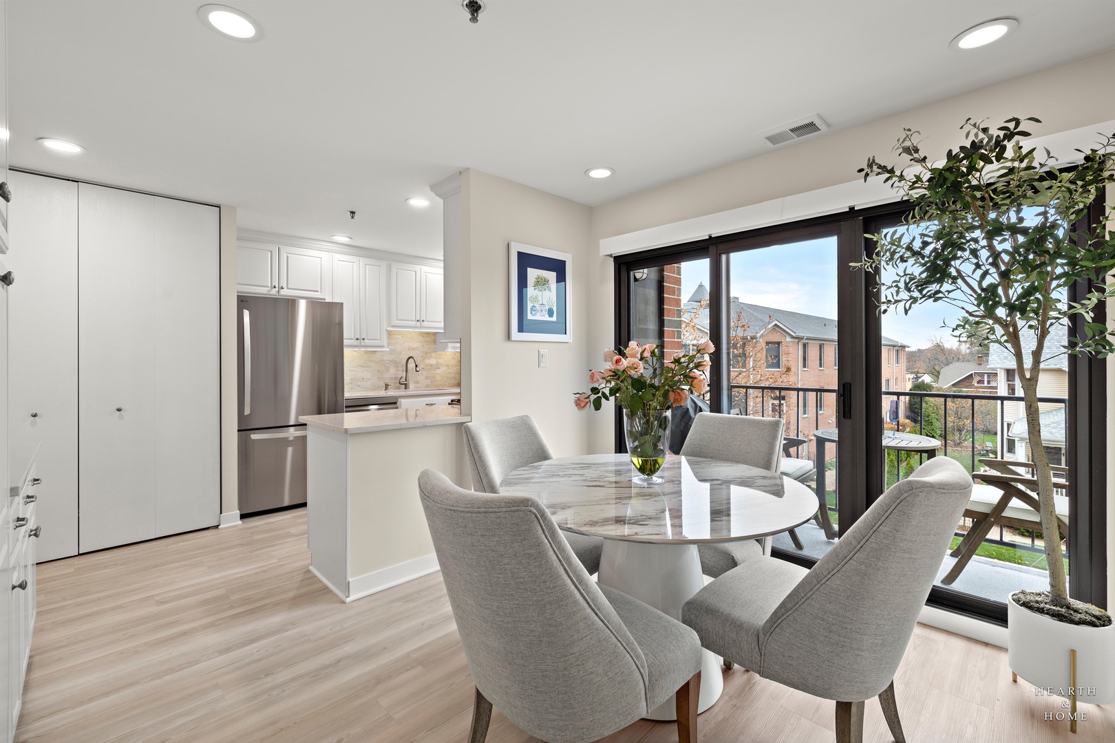 Welcome to our one-of-a-kind home at 110 S. Evergreen! A contemporary, light-filled condominium in the heart of Downtown Arlington Heights, IL – the perfect place to experience suburban convenience with urban flair. This condominium has been remodeled from top to bottom! We cannot wait for you to experience to Luxury you have been looking for! This spacious unit offers a Gorgeous open floor plan with large windows that flood the space with natural light, and 2 balconies to enjoy outdoor living! The wonderfully updated Kitchen features Beautiful modern finishes, sleek cabinetry, and quality appliances make it a delight for cooking and entertaining with its separate dining area with walk out alfresco dining too! The inviting living/dining space provides warmth and comfort for relaxing or hosting guests on the balcony or by the modern glass lit fireplace. The master bath and guest bath are spa like and rival any end high end hotel. The bedroom is a peaceful retreat tucked in the back corner, away from any street noise. The storage for a condominium 2nd to none! Not only does it have 2 coat closets, but a 3rd storage closet, a huge walk-in pantry, large California closets in both bedrooms, as well as 2 well-appointed linen closets too! Plenty of storage to keep your home organized and clutter-free. the unit has 1 great parking space right by the entrance to the building and the exit. Additional spots can be found in visitor parking. Enjoy the ease of building access, well-maintained common areas, and the sense of community that comes with downtown living. Nestled in Downtown Arlington Heights, this condo places you steps from an energetic and walkable neighborhood full of boutique shops, local restaurants, and cafes. Downtown is served by the Metra, giving you convenient, car-free access into Chicago. Arlington Heights is well-known for its strong community vibe, pedestrian-friendly streets, and award-winning schools. Don’t miss this rare opportunity to own in one of Arlington Heights’ most desirable downtown addresses at 110 S. Evergreen. Love where you live!