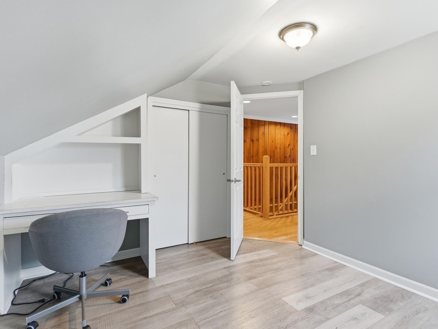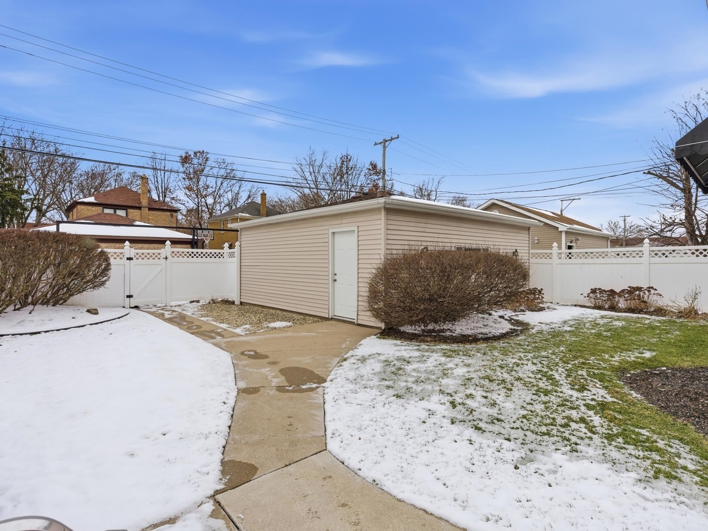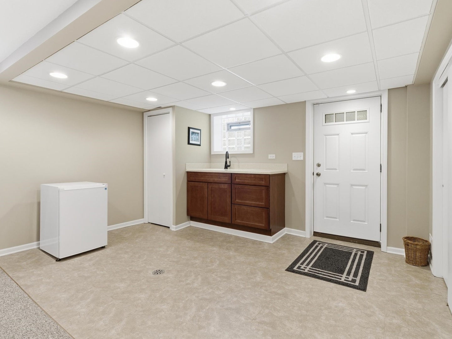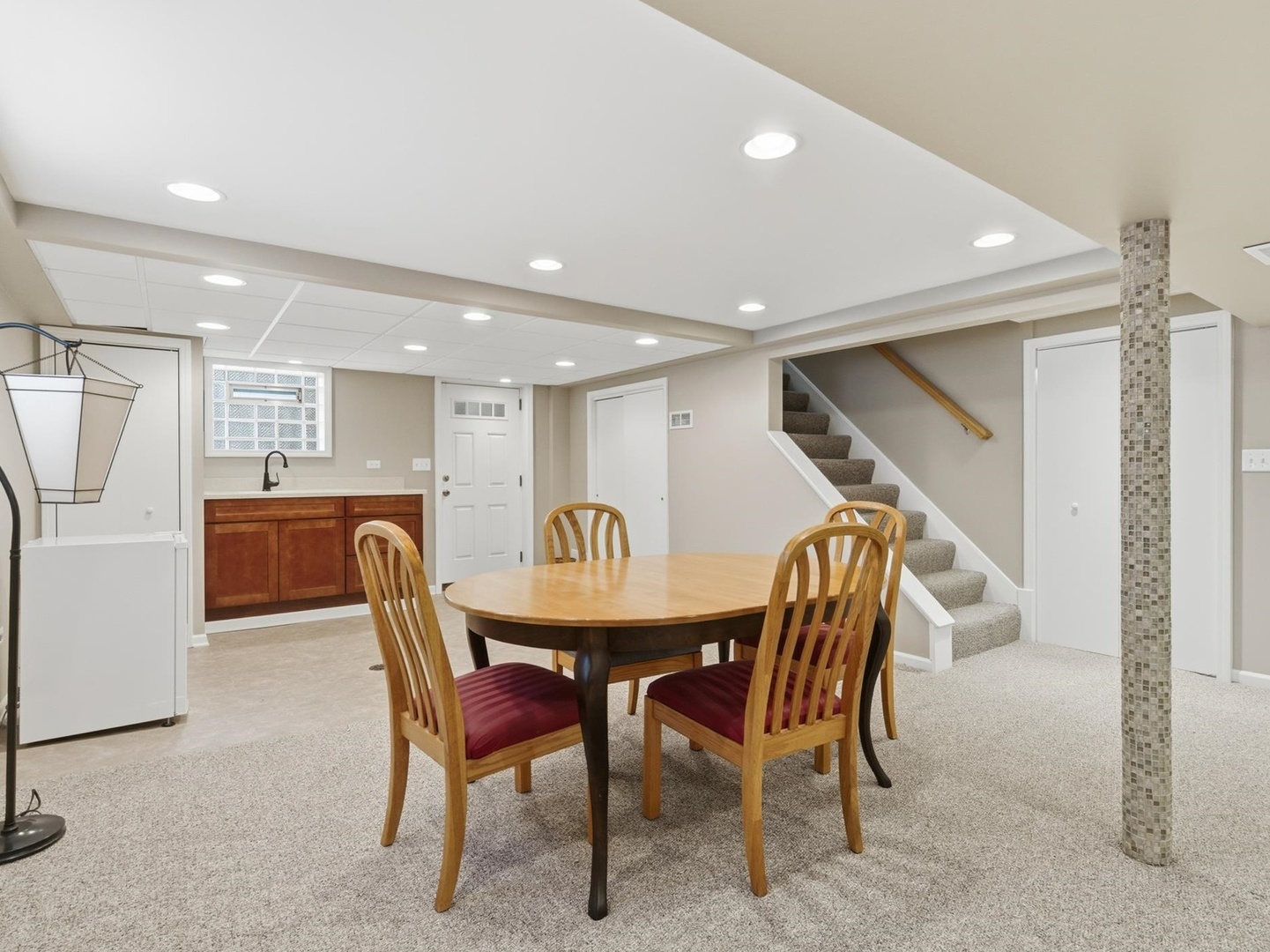Discover timeless charm paired with modern luxury in this spacious, impeccably maintained 3-bedroom, 3-bathroom brick home-plus a versatile flex space that can easily serve as a home office or potential fourth bedroom-offering over 2,400 square feet of thoughtfully designed living space. The sun-filled living and dining rooms showcase refinished, gleaming hardwood floors, creating a warm and inviting atmosphere. The main level features a bedroom, a flexible bonus space ideal for a home office or guest room, and a beautifully renovated luxury bathroom. The stunning remodeled kitchen is a true showstopper, featuring custom cabinetry with crown molding, gleaming granite countertops, coordinating backsplash, and stainless steel appliances. A large family room provides exceptional versatility for everyday living and entertaining. The main-level primary bedroom offers hardwood flooring and comfortable living space, with an additional fully updated luxury bath completing the main level. The second floor includes two additional bedrooms with ample closet space and a full bathroom. The walk-out basement offers endless possibilities, highlighted by a spacious recreation room with a custom built-in wet bar, convenient half bath, dedicated laundry room, and abundant storage-ideal for entertaining or extended living. Outside, enjoy a fully fenced backyard perfect for family gatherings, complemented by a two-car garage, in-ground sprinkler system, and durable brick exterior. Additional highlights include a newer roof, spray foam insulation, updated appliances, washer and dryer, hardwood flooring throughout the main level, and well-maintained mechanicals. This exceptional home is a rare opportunity-schedule your private showing today!