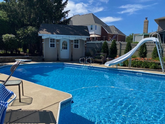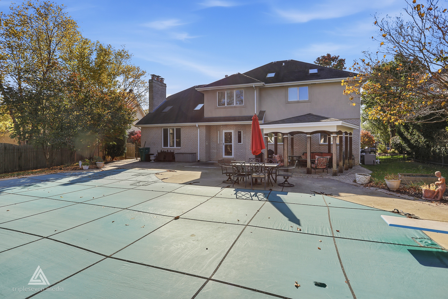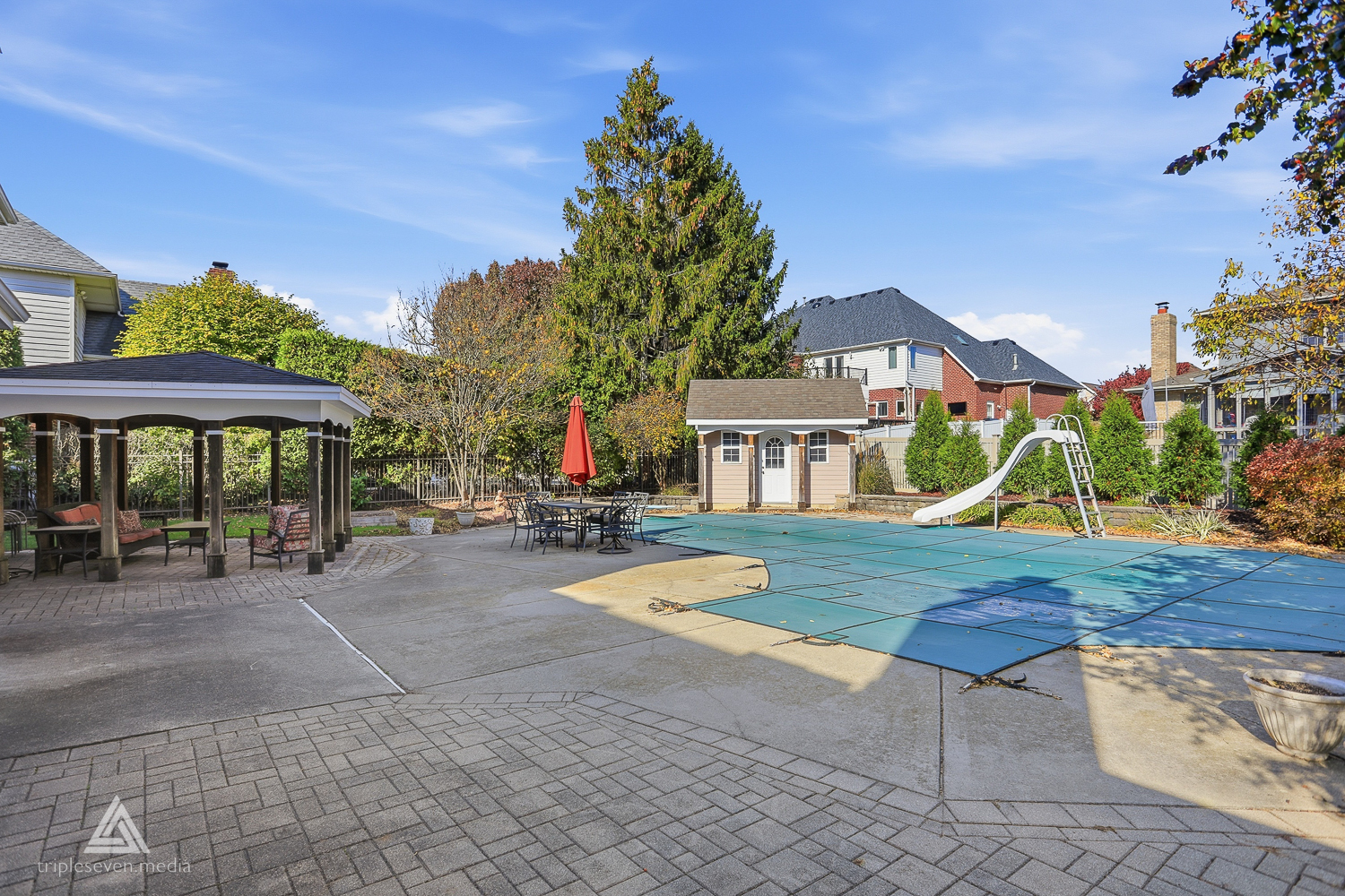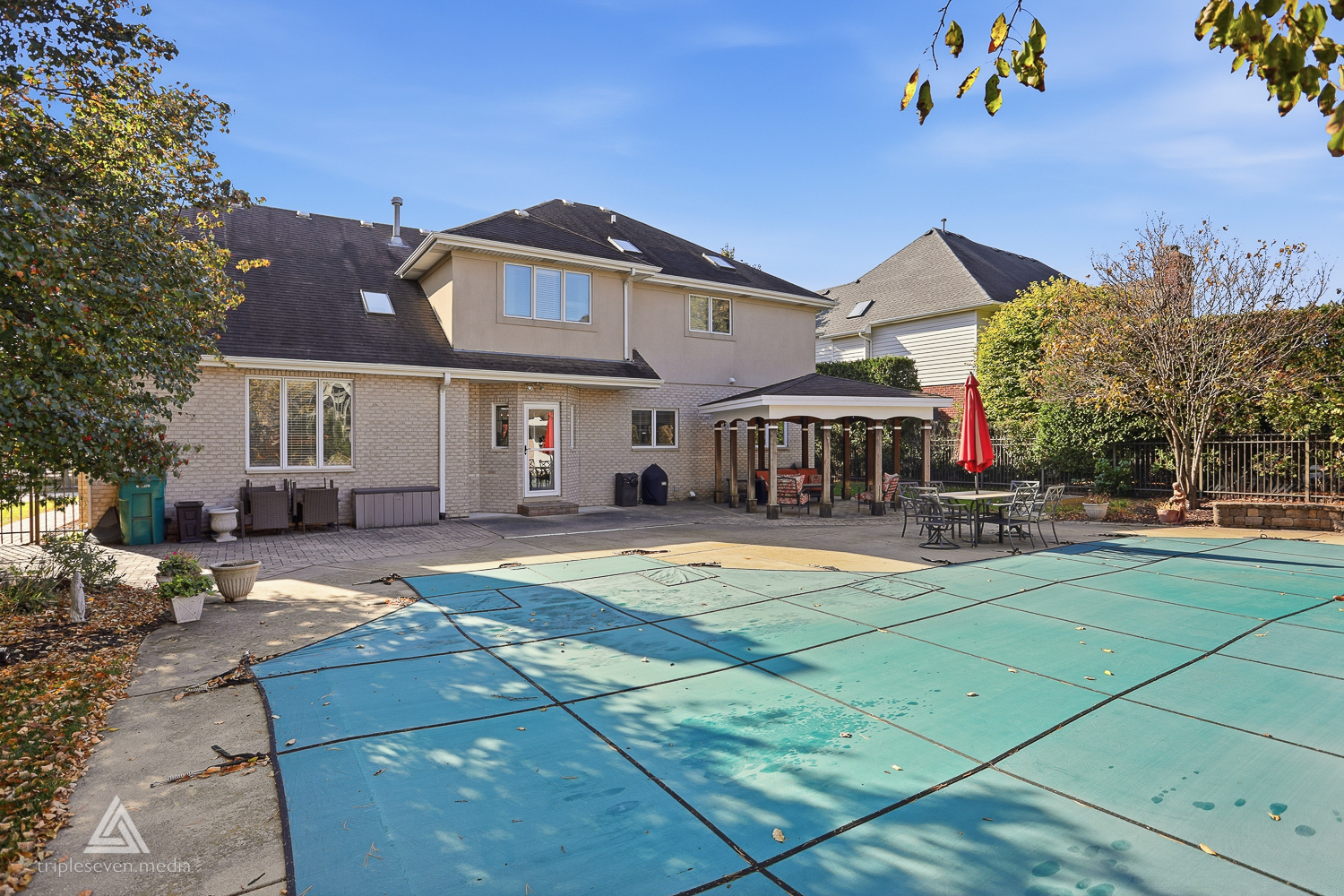 Welcome to this stunning home with 4/5 spacious bedrooms and 3.5 bathrooms. This beautiful home features a newly refinished primary bath in the primary suite and an expansive finished basement with a theatre room, kitchenette, fireplace, 2nd family room, and large bar area. This home boasts a full in ground pool, pool house, gazebo, and beautiful outdoor views ideal for entertaining. The cozy 2 story family room includes vaulted ceilings with 2 skylights and a fireplace. A 5th bedroom on the main floor can also be used as an office space. Light and bright open kitchen with formal living room and dining room areas.