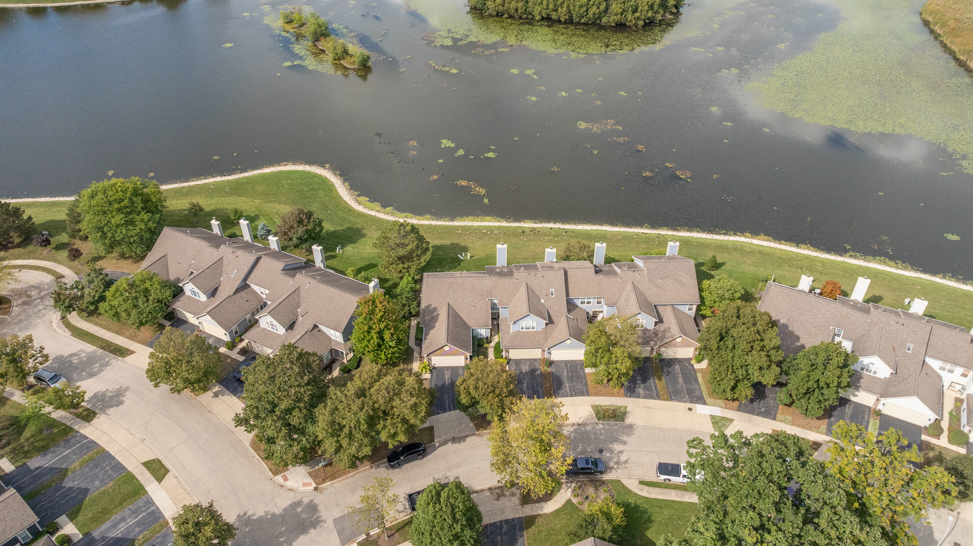 Welcome to this beautifully updated 3-bedroom, 2.1-bath townhome in highly sought-after Cobblers Crossing-perfectly situated on a serene pond with peaceful views year-round. Step inside to an inviting family room with soaring vaulted ceilings, a cozy fireplace, and updated vinyl flooring that flows throughout the main level. The bright and modern kitchen features stainless steel appliances, quartz countertops, a tile backsplash, a breakfast bar, and a spacious pantry. Enjoy your morning coffee or unwind in the evening on the private patio just off the kitchen, overlooking the tranquil pond. Convenience is key with a main-level laundry room located right off the garage. Upstairs, the primary suite offers dual sinks, a stand-up shower, and a separate soaking tub-ideal for relaxing after a long day. Two additional bedrooms and a full hall bath complete the second floor. Peace of mind comes with major components already updated: water heater (less than 1 month old), furnace and A/C (1 year old), and roof (8 years old). The attached 2-car garage provides ample storage and parking. The HOA covers exterior maintenance, landscaping, and snow removal, allowing you to enjoy low-maintenance living. Located close to shopping, dining, and conveniences, this home blends comfort, style, and an unbeatable setting. Don’t miss this opportunity to own a stunning pond-side townhome in Cobblers Crossing!