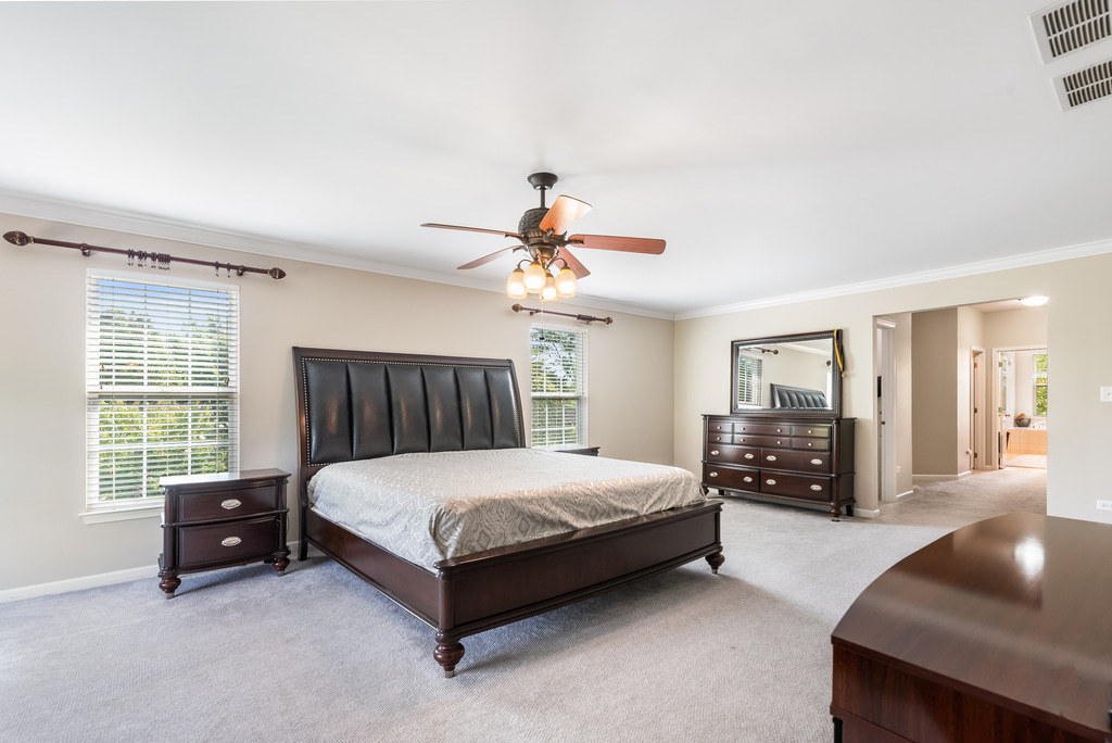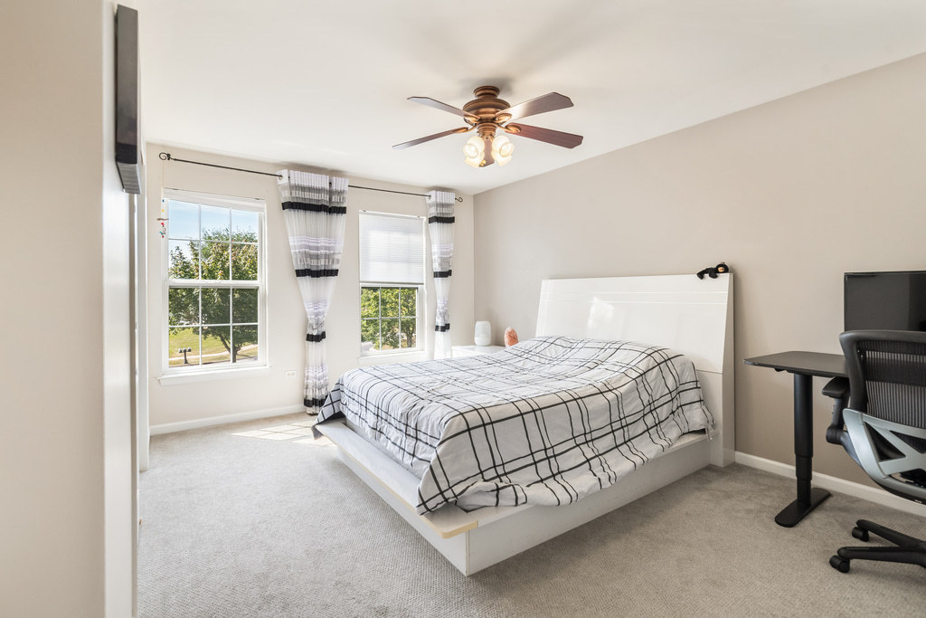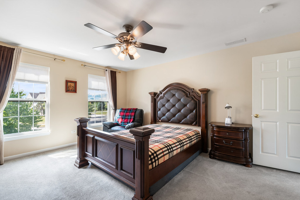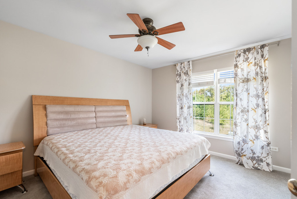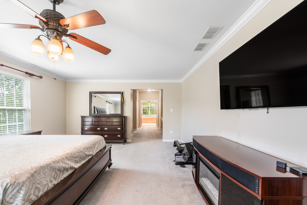 One of the largest Carmel Federal models in the Masters Collection at Bowes Creek, this home combines space, comfort, and thoughtful updates. The main floor offers a private office, dining room, and a bright living area with fireplace and a wall of windows. The kitchen features granite countertops, stainless appliances, and plenty of cabinet space. Upstairs, the master suite includes a sitting area, spa-like bath, and four walk-in closets. Recent upgrades include a roof (2024), front entry door (2022), water heater (2022), partial hardwood floors (2020), and carpet (2023). Additional highlights: a heated 3 car garage, built-in water filtration faucet in the kitchen, and an expansive unfinished basement with potential for additional living space. Set on a quiet cul-de-sac in the Bowes Creek Country Club community, residents also enjoy access to the neighborhood’s golf course and amenities. Exclusions: Kitchen refrigerator (to be replaced with another unit currently in the garage), washer & dryer, large wall-mounted entertainment unit in family room, and large mirror in entrance hallway. Listing agent has ownership interest in the property!