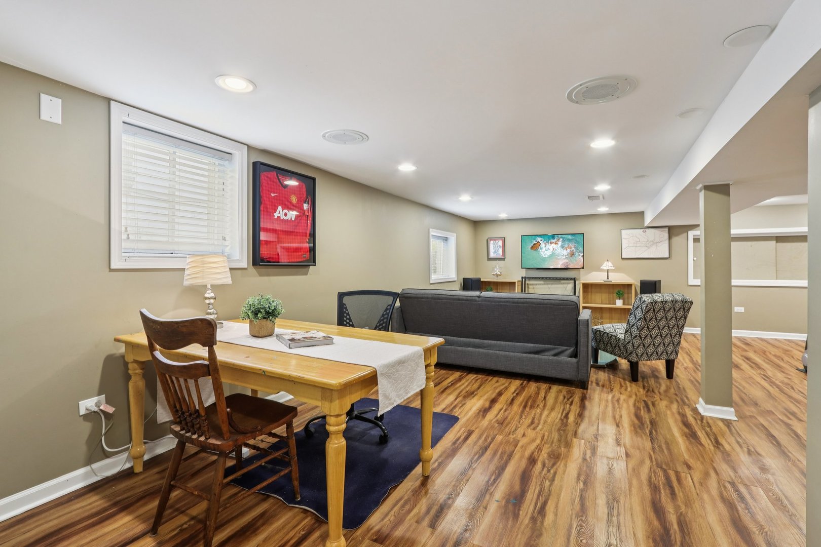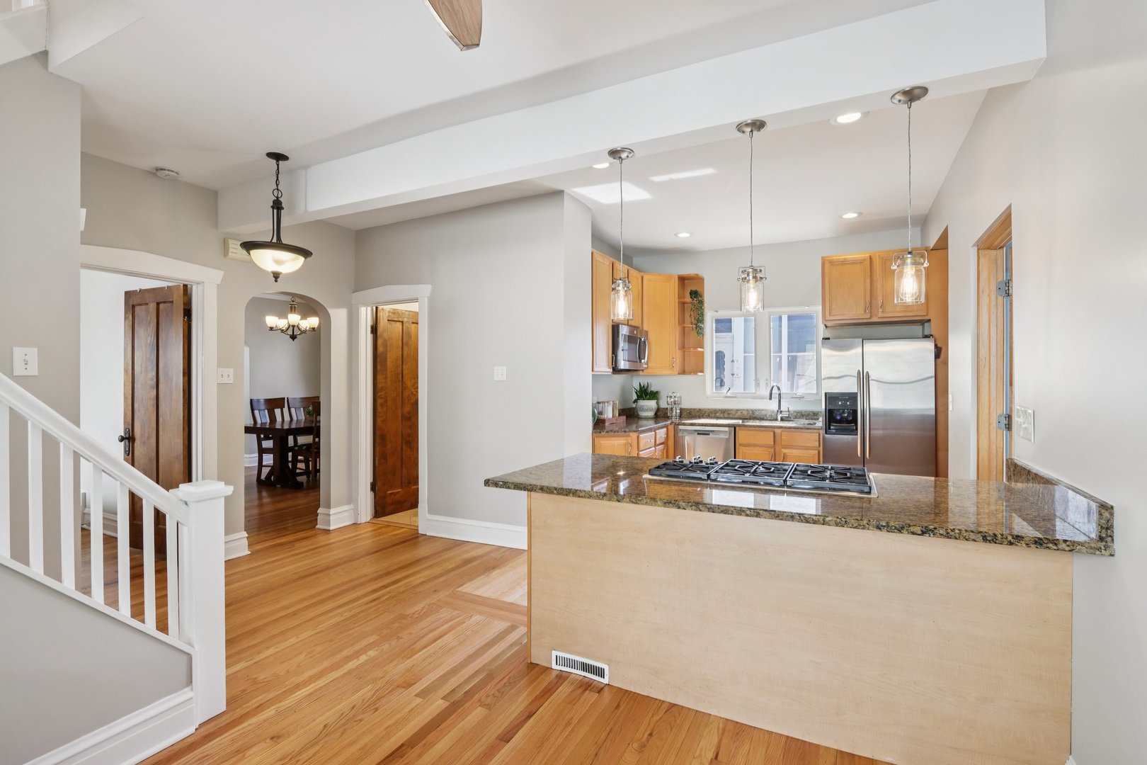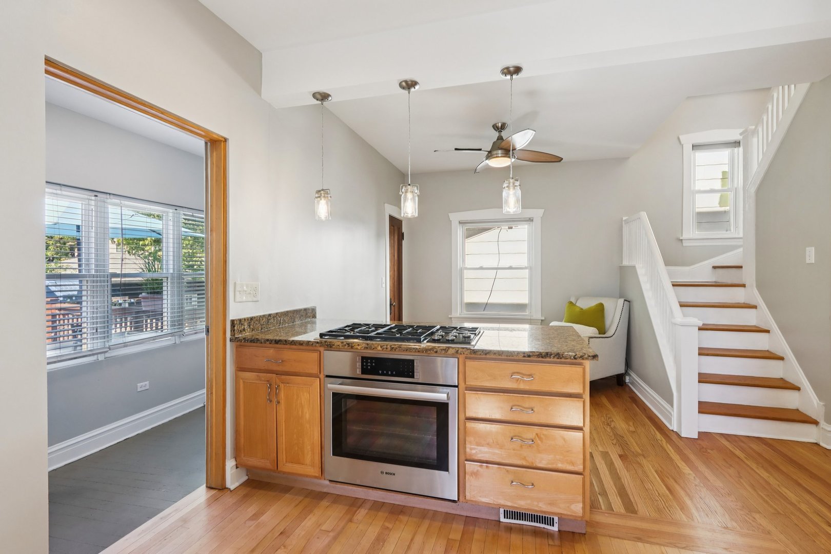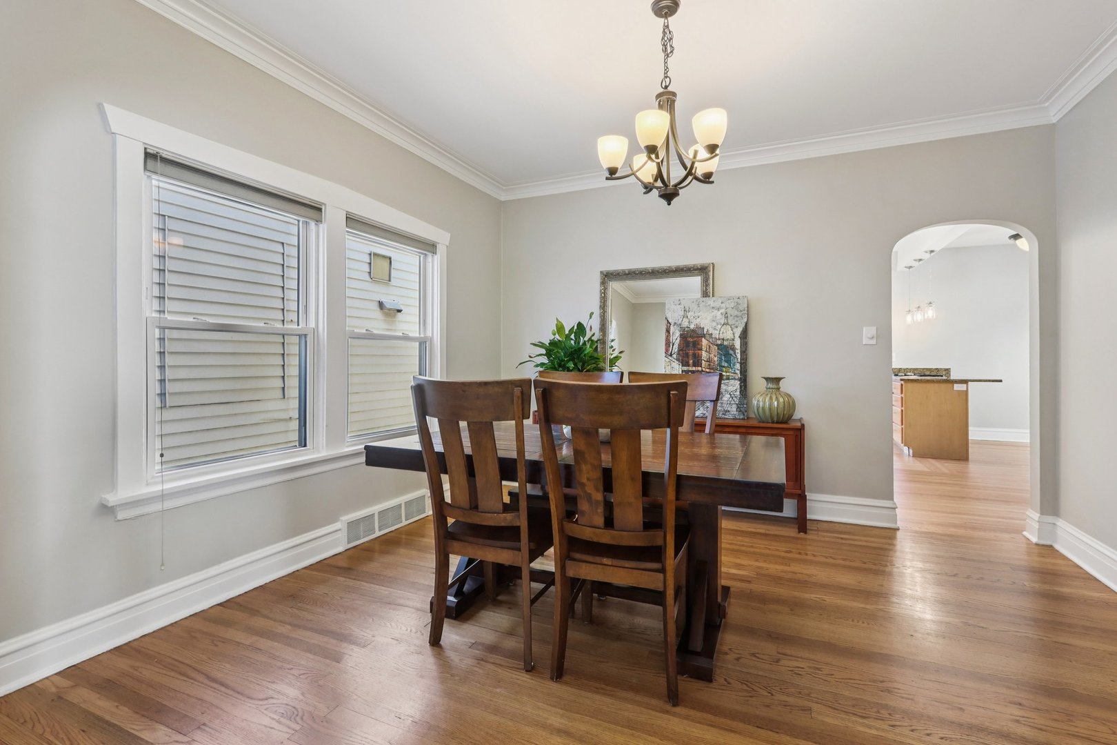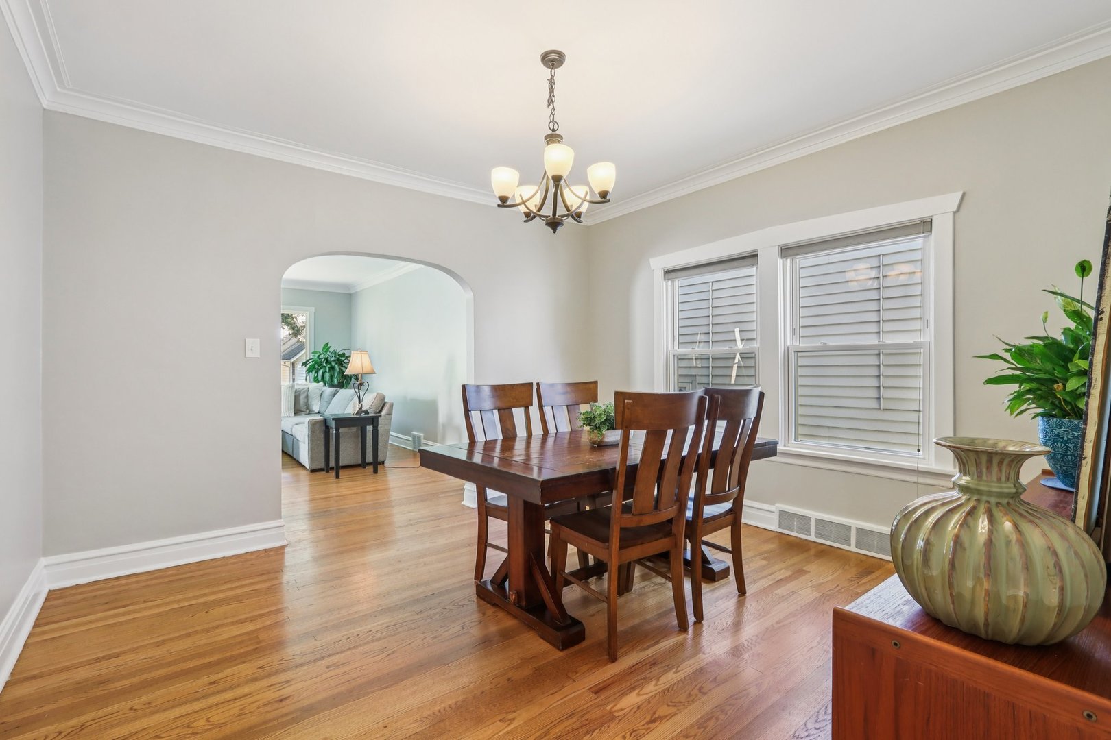 Welcome to 1103 Clinton Avenue, where charm meets thoughtful updates and everyday comfort meets style. This beautifully maintained bungalow sits on a quiet, tree-lined street just a block from Lincoln Elementary School and offers a flexible layout, upgraded finishes, and inviting outdoor space. Enjoy the sun-filled living room with a large picture window and elegant archways that lead to a spacious formal dining room-ideal for gatherings or quiet evenings at home. The kitchen is a standout feature, outfitted with high-end appliances, including a Wolf range, Bosch wall oven, and Bosch dishwasher, all complemented by granite counters and abundant cabinetry. The finished lower level, gut-renovated in 2014, provides expansive additional living space with endless potential-use it as a rec room, home gym, media lounge, or guest suite. Upstairs, enjoy flexible finished space for work, rest, or play. Outdoor living is just as inviting, with two decks-one off the main level and one off the upper level-plus a beautifully landscaped yard with room to garden, relax, enjoy numerous butterflies, or entertain under the stars. Major improvements include a full tear-off roof in 2024, new furnace in 2022, fresh paint, new pendants in the kitchen and a refinished kitchen floor. Enjoy easy access to nearby parks, dining, shops, and public transit, all while living in a home that offers comfort, convenience, and space to grow.