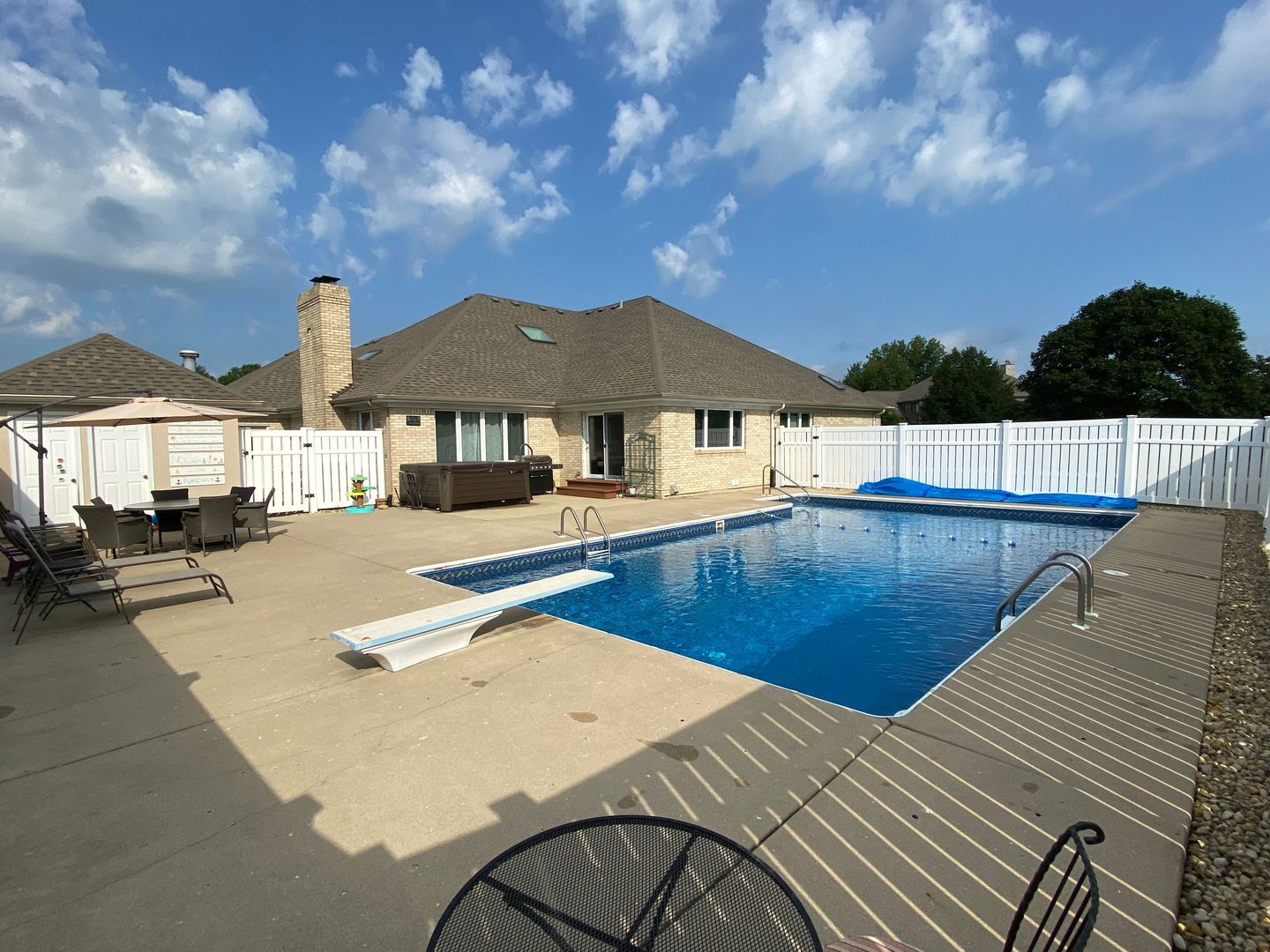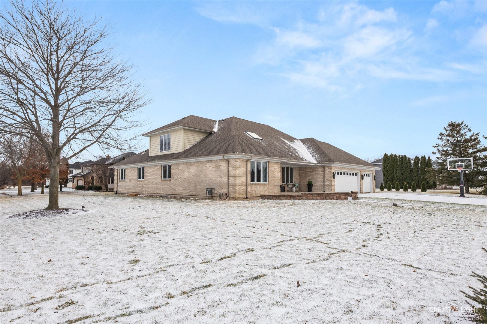 Discover the perfect blend of space, style, and comfort in this stunning all-brick home, nestled on a nearly one-acre corner lot in the beautiful Tamarack Fairways Subdivision. Featuring 5 spacious bedrooms with the potential for 2 additional bedrooms in the basement and 4 full bathrooms, this home offers exceptional flexibility for living, entertaining, and growing. Rich hardwood floors and custom trim work flow throughout the main level, creating a warm and welcoming atmosphere. Step into the updated kitchen, highlighted by professional-grade stainless steel appliances, upscale finishes, and a large skylight that fills the space with natural light. The kitchen opens directly to a bright sunroom, creating the perfect flow for everyday living and entertaining. Three spacious bedrooms, including one of the home’s two primary suites, are conveniently located on the main level. An optional second primary suite, featuring a newly renovated private ensuite, offers a peaceful second-floor retreat-ideal for added privacy or multigenerational living. The inviting family room features a vaulted ceiling, an additional skylight, and a cozy fireplace, creating an open and welcoming atmosphere. The expansive full finished basement offers incredible versatility with 2 additional bedrooms, a dedicated office, and a full bathroom, along with abundant storage space-perfect for guests, extended family, or work-from-home needs. Step outside to your private backyard oasis, designed for both relaxation and entertaining. This expansive corner lot provides exceptional privacy and features a heated salt-water inground pool, a dedicated pool house ideal for storage and pool equipment, and ample space for outdoor dining, gatherings, and summer celebrations. Whether hosting large events or enjoying quiet evenings, this outdoor setting delivers resort-style living at home. With its solid brick construction, thoughtful modern updates, generous layout, and impressive indoor-outdoor living, this home is a rare find. Move-in ready and built to impress, it’s a must-see opportunity in a highly desirable neighborhood.