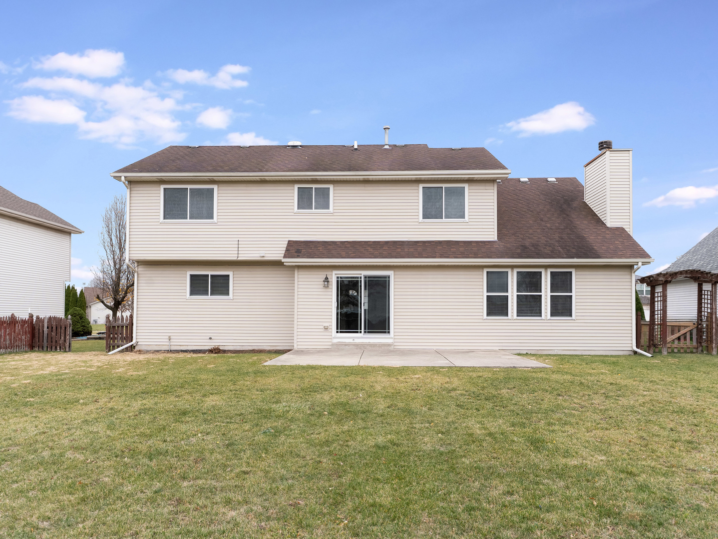 Massive 4 bedroom w/loft 2-story home in Huntington Village (no HOA) subdivision in Shorewood is now ready for new owners. Warm and inviting curb appeal home has a front porch, fully fenced yard and a shed. The interior is modern and move-in with updates that include new flooring and carpeting/lighting/granite countertops & more. Over 2,400sf includes all bedrooms on the 2nd floor with 16×14 primary bedroom that includes a vaulted ceiling/wall to wall closet and it’s own private bathroom w/separate shower/tub. 2nd floor laundry closet. The first floor offers a formal living room, and a 2-story family room with a brick fireplace and is overlooked by the 2nd floor loft. OMG what a kitchen. Oak cabinetry/granite countertops/ceramic backsplash/gooseneck faucet/pendant lighting/canned lighting and pantry…..as well as a separate eating area. The basement is unfinished and is ready to be finished to your liking. Good sized backyard and is perfect for entertaining with a concrete patio off the breakfast nook.
