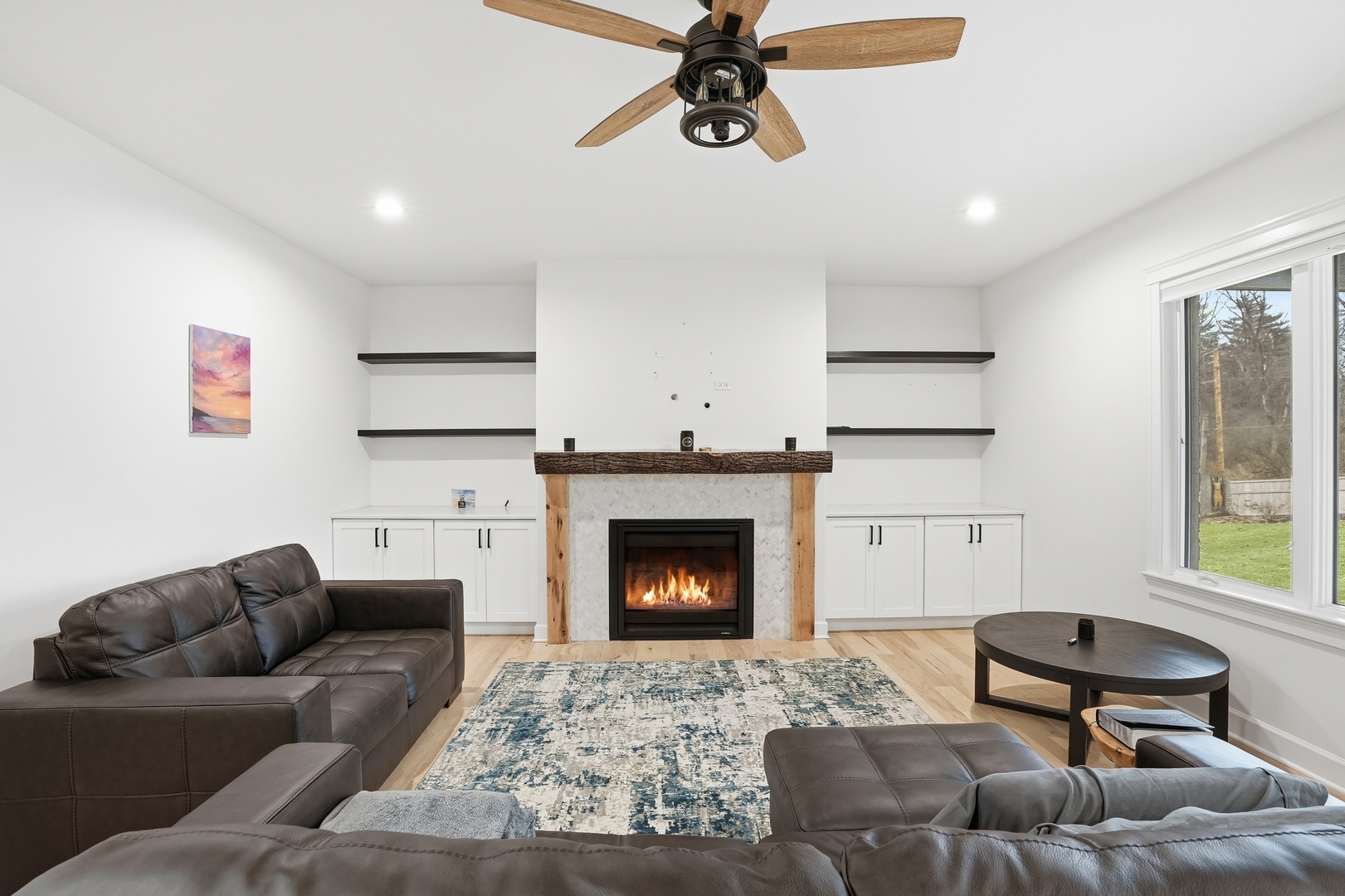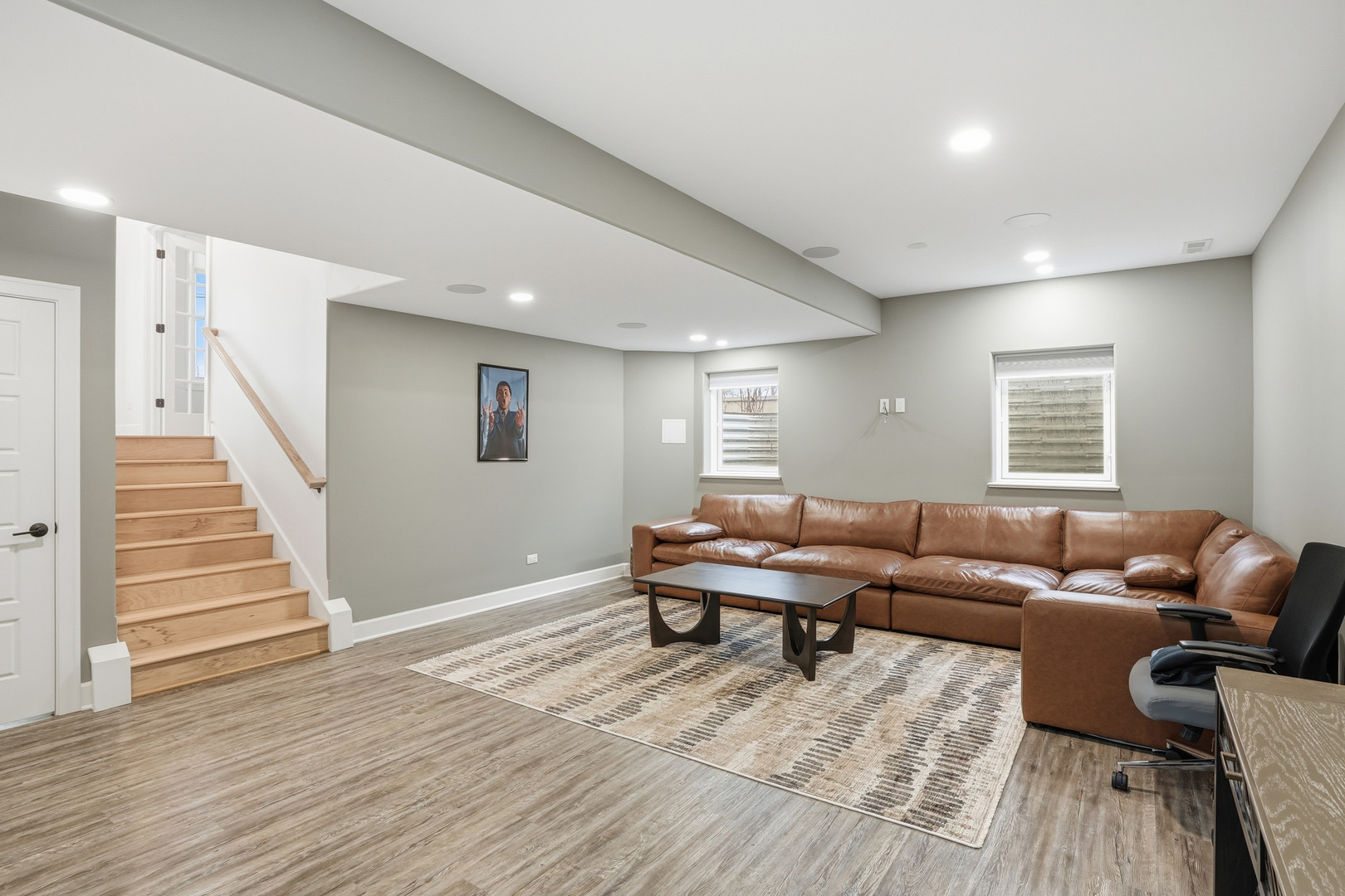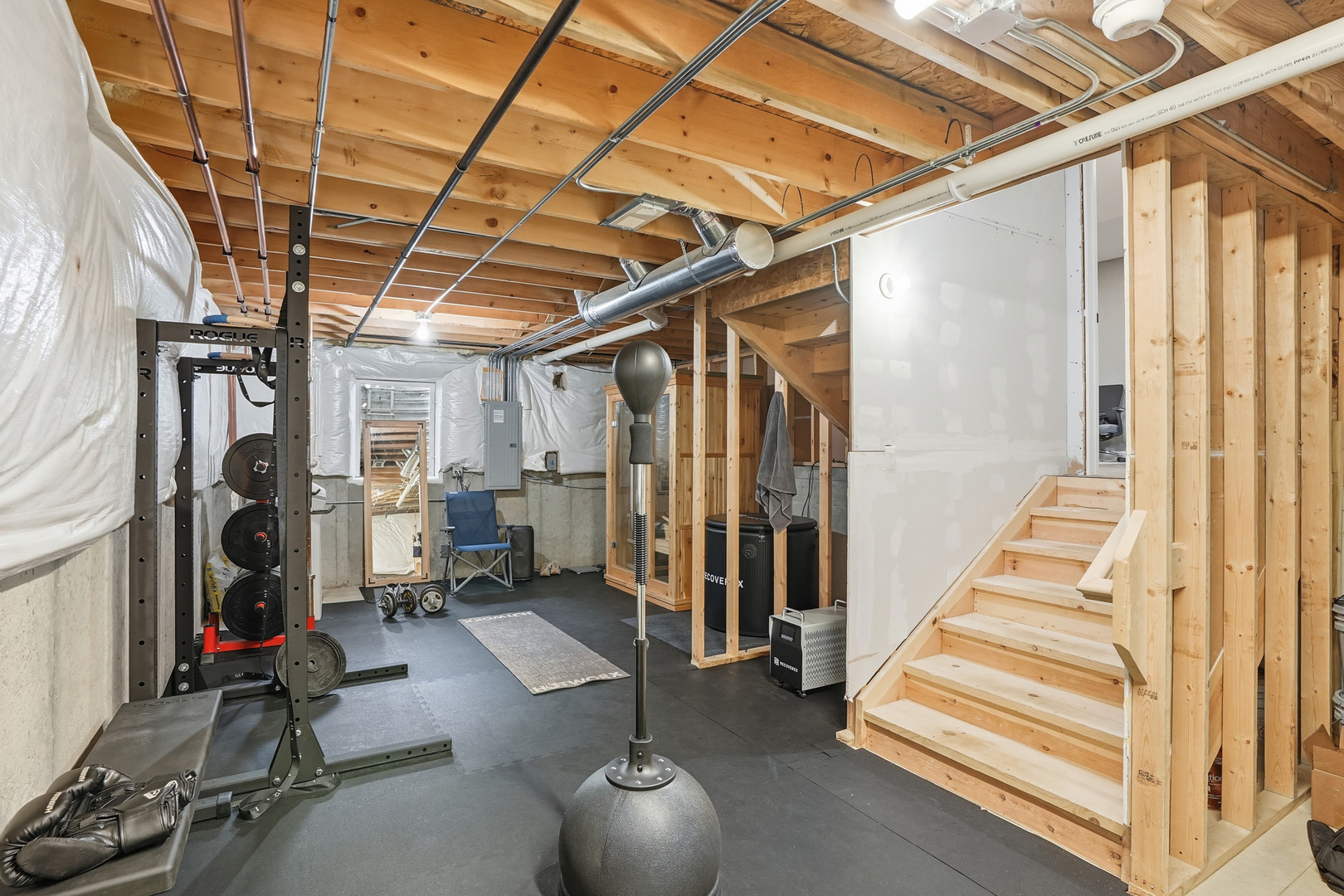 Beautiful newer-construction home in Unincorporated New Lenox featuring 4 bedrooms, 3 full bathrooms, and a dedicated office. The main level offers an open-concept layout with modern finishes, a bright kitchen with Granite Counter tops, and a spacious living area centered around a stylish fireplace. The finished basement adds exceptional versatility with a second kitchen, large living space, and a built-in home gym area. The garage includes a professional epoxy floor coating, and a new privacy fence has been installed. The backyard is a standout, offering a custom outdoor fireplace with a wooden deer sculpture, creating a unique and memorable setting for relaxation or entertaining. Property has new AvertX Security Cameras! Furniture may be purchased separately. Sauna and cold plunge are excluded from the sale. A move-in-ready home with thoughtful upgrades and strong curb appeal in a great New Lenox location.