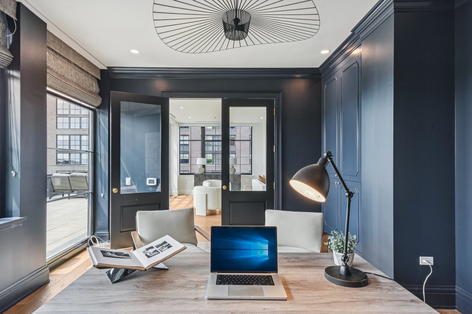 Experience elevated city living in this spectacular, rarely available 2-story penthouse at The Hayden-an ultra-exclusive residence designed by renowned Booth Hansen Architects and developed by Sulo Development. Located in the heart of the vibrant West Loop, this stunning home offers the privacy and feel of a single-family residence with the sophistication of high-end urban design. Spanning two expansive levels, this 4-bedroom, 4.5-bathroom home boasts soaring 10-foot ceilings and a show-stopping 850 sq. ft. wraparound terrace with panoramic skyline views, a fully equipped outdoor kitchen, and 20′ retractable NanaWall glass doors-perfect for seamless indoor-outdoor entertaining. The gourmet kitchen features elegant quartzite countertops, Sub-Zero and Wolf appliances, and a large walk-through pantry complete with a wine fridge, built-in coffee station, secondary dishwasher, sink, and generous storage. The open-concept living area centers around a custom honed marble fireplace and tailored built-ins. Additional highlights include a dedicated office with custom millwork, and a versatile bonus room currently outfitted with a golf simulator-ideal as a home gym or media lounge. Upstairs, the luxurious primary suite features a serene sitting area, dual custom walk-in closets, and a spa-caliber bath with heated floors, a large steam shower, soaking tub, and dual vanities. Three additional en-suite bedrooms provide comfort and privacy for family or guests. Thoughtfully designed with laundry rooms on both levels. Enjoy an elevated lifestyle with a curated selection of premium building amenities designed for comfort, convenience, and sophistication. A 24-hour door staff providing seamless service and security around the clock, private elevator access to both floors for ultimate privacy, Lutron automated shades creating an effortless ambiance control at your fingertips, additional storage to keep your home clutter-free, dog wash station, bike room, and two deeded garage parking spaces reserved for peace of mind and easy access. Experience five star living here at The Hayden in one of Chicago’s most sought-after neighborhoods.
