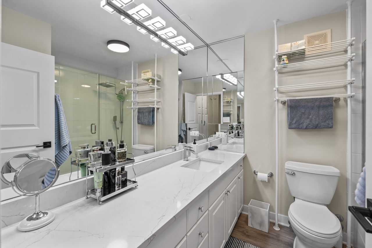 Experience refined city living in this premier Gold Coast building, offering breathtaking western skyline views. This beautifully renovated 1-bedroom, 1-bath condo features luxurious LVP flooring throughout and an expansive, sun-filled living room framed by floor-to-ceiling windows-enhanced with custom Levolor Cellular Smart Shades for light filtering and effortless comfort. The sleek, modern kitchen impresses with abundant white shaker cabinets accented by bold black hardware, Quartz countertops, a dove gray subway tile backsplash, and high-end stainless steel appliances. Enjoy the convenience of a new full-size LG Smart Washer and Dryer located in-unit. The spacious bedroom includes a generous closet outfitted with a custom California Closet system with dedicated shoe storage, along with motorized top-down/bottom-up blackout shades. The refreshed bathroom offers a wide vanity with gleaming Quartz countertop space, a wall-to-wall mirror, and a tub/shower combo. Additional peace of mind comes from the replacement of both PTAC systems in 2023. Residents of 111 E. Chestnut enjoy a full suite of amenities, including 24-hour door staff, an outdoor heated pool and sundeck with 10 grilling stations, a fitness center, a business center, and a banquet/party room available for private events. A private storage locker is conveniently located on the 9th floor. Perfectly positioned in the heart of the Gold Coast, this residence is just steps from Michigan Avenue, Water Tower Place, the John Hancock Building, the Museum of Contemporary Art, and the city’s finest dining and shopping. With its combination of high-floor views, timeless finishes, and full-service amenities, Unit 28J delivers a move-in-ready lifestyle in one of Chicago’s most desirable neighborhoods. Owner rents a parking spot in the garage which is transferrable to the new owner if needed. Schedule your showing today!