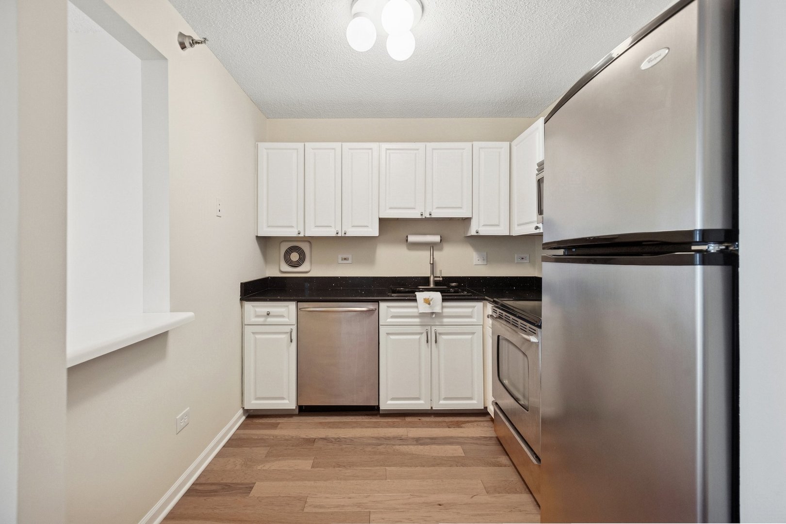 Prime Gold Coast location! Welcome to 111 W. Maple, Unit 1805, in the Gold Coast Galleria building. This fabulous large one bedroom condo is move-in ready, freshly painted and brand new flooring throughout. Light filled, with north, east, and west panoramic views from the private balcony off of the living room. Generous closet space. The building provides 24/7 door staff, on-site management, engineer, sundeck on the 8th floor, laundry room on the 7th floor. In-unit laundry is permitted. Residents can also enjoy access to FFC Health Club. Garage parking spot P465 is included in the list price. Pet friendly and investor friendly building. Approximately 1.1M in reserves, no special assessments. The best of city living right at your doorstep in this convenient location!